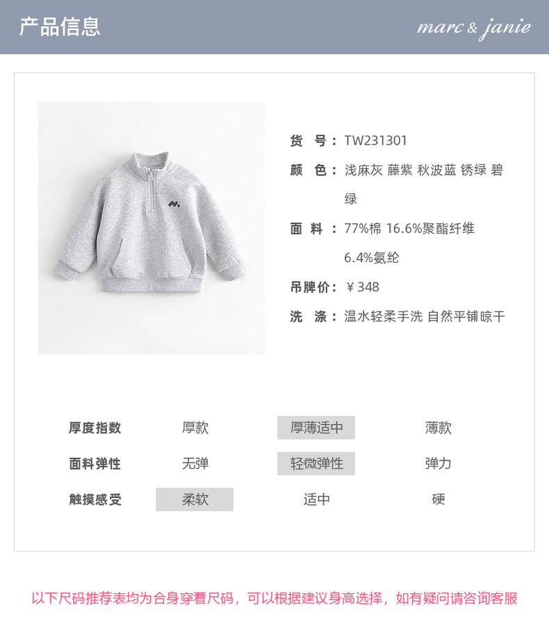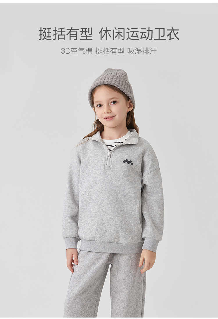 【3D空气棉】马克珍妮秋装新款 男女童立领半拉链运动卫衣231301