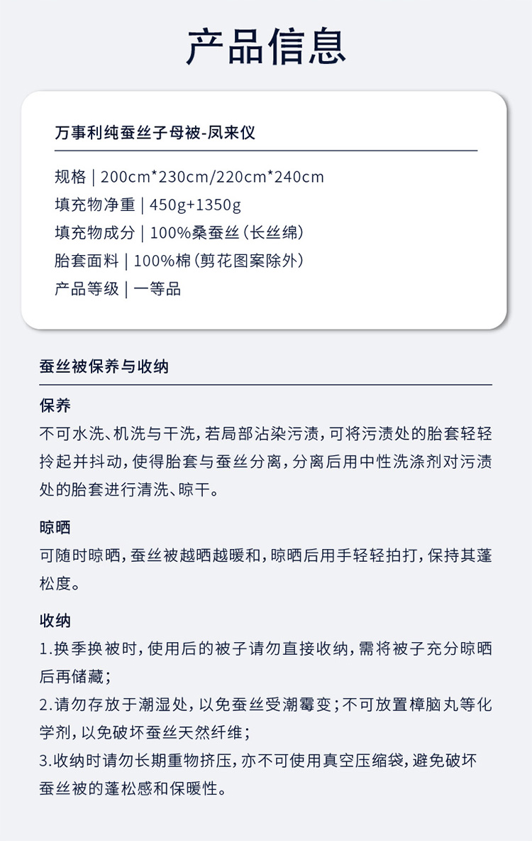 WENSLI/万事利 纯蚕丝子母被-凤来仪