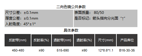 二色镜 ≥90%@450-480 Tavg≥90%@515-690 12*8.6*1.1 6081