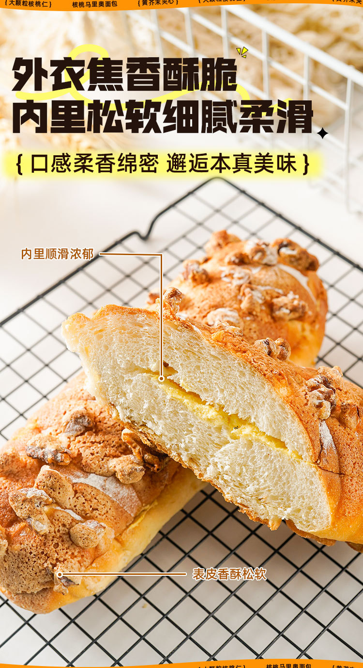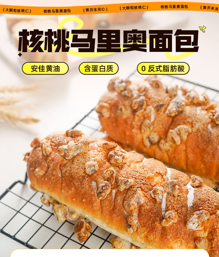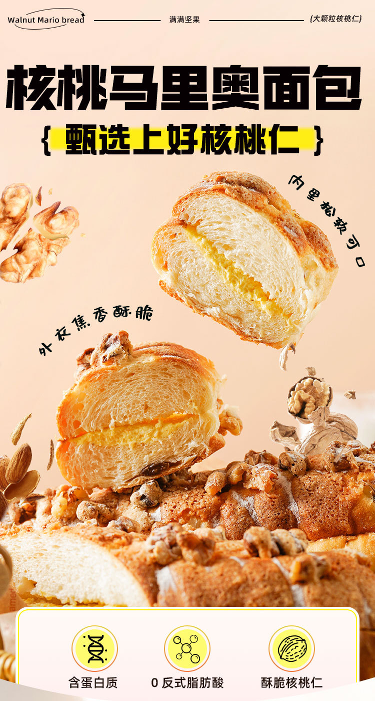 【松软可口❗️核桃马里奥夹心面包】甄选品质原料制作,甄选上好核桃仁,每一口都有料而来,美味营养两不误,芥末味即食便携早餐代餐下午茶休闲茶点L