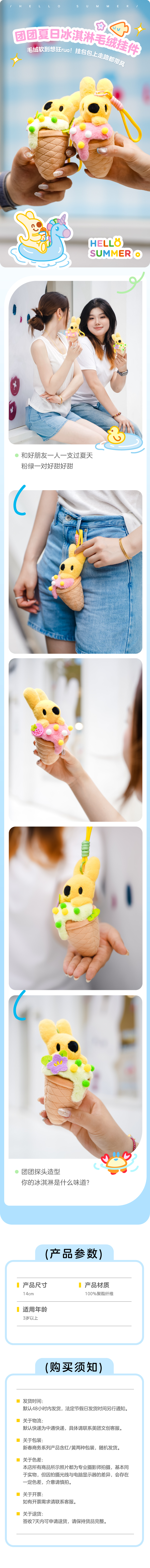 夏日系列冰淇淋袋鼠团团毛绒挂件