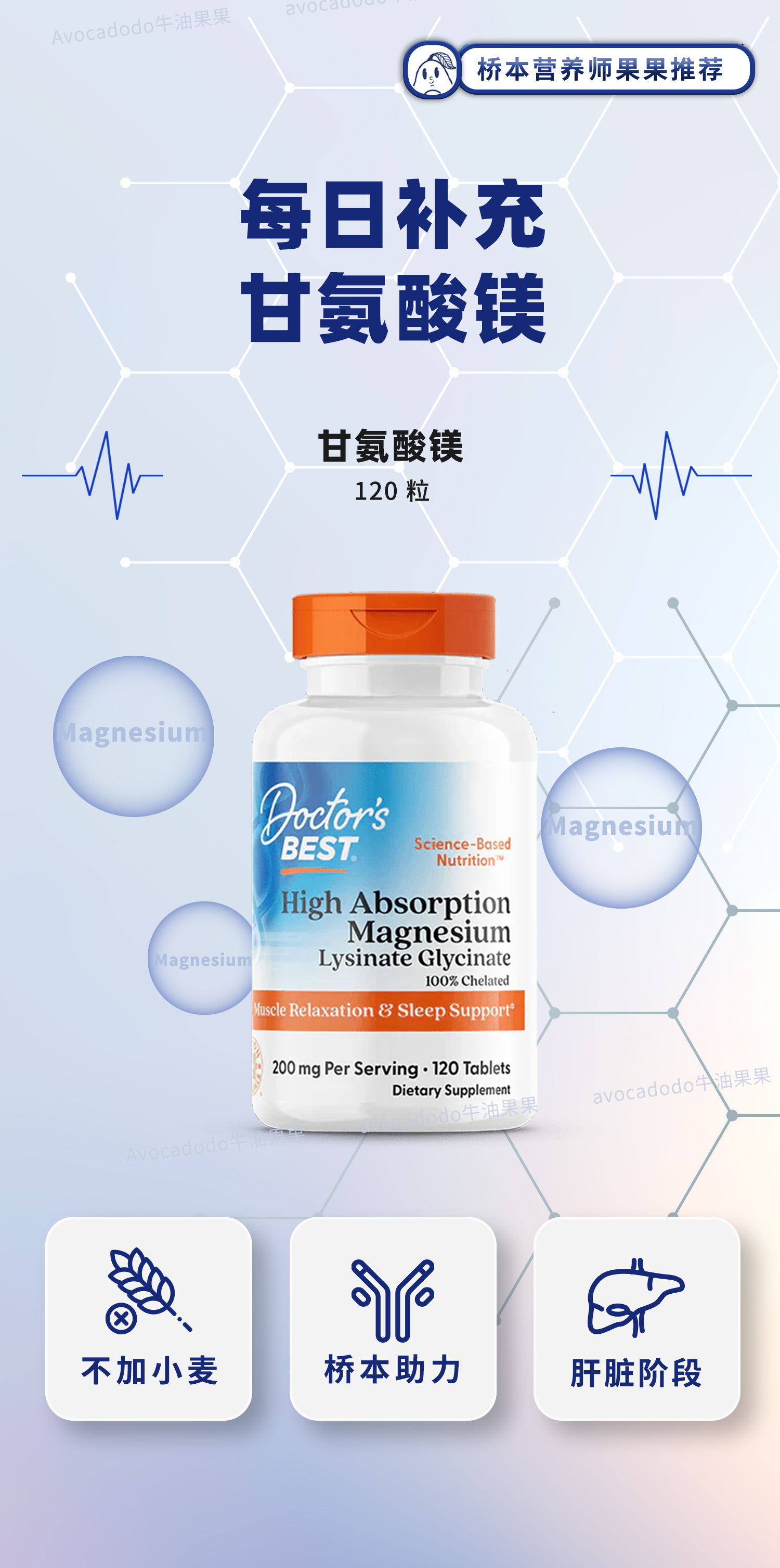 保税Doctor's best甘氨酸镁120粒ADHD多动睡觉神经肌肉情绪桥本