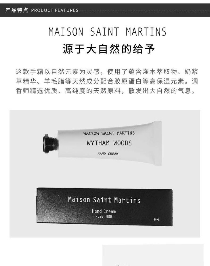 MAISON SAINT MARTINS 威萨姆森林WYTHAM WOODS真萃护手霜 30MLJPY带授权招加盟代理