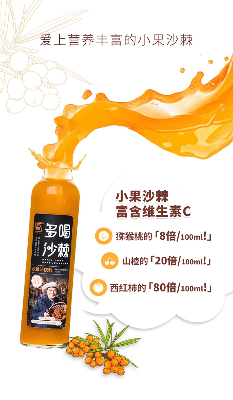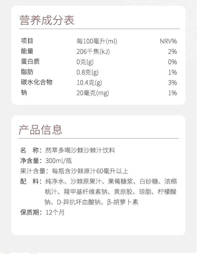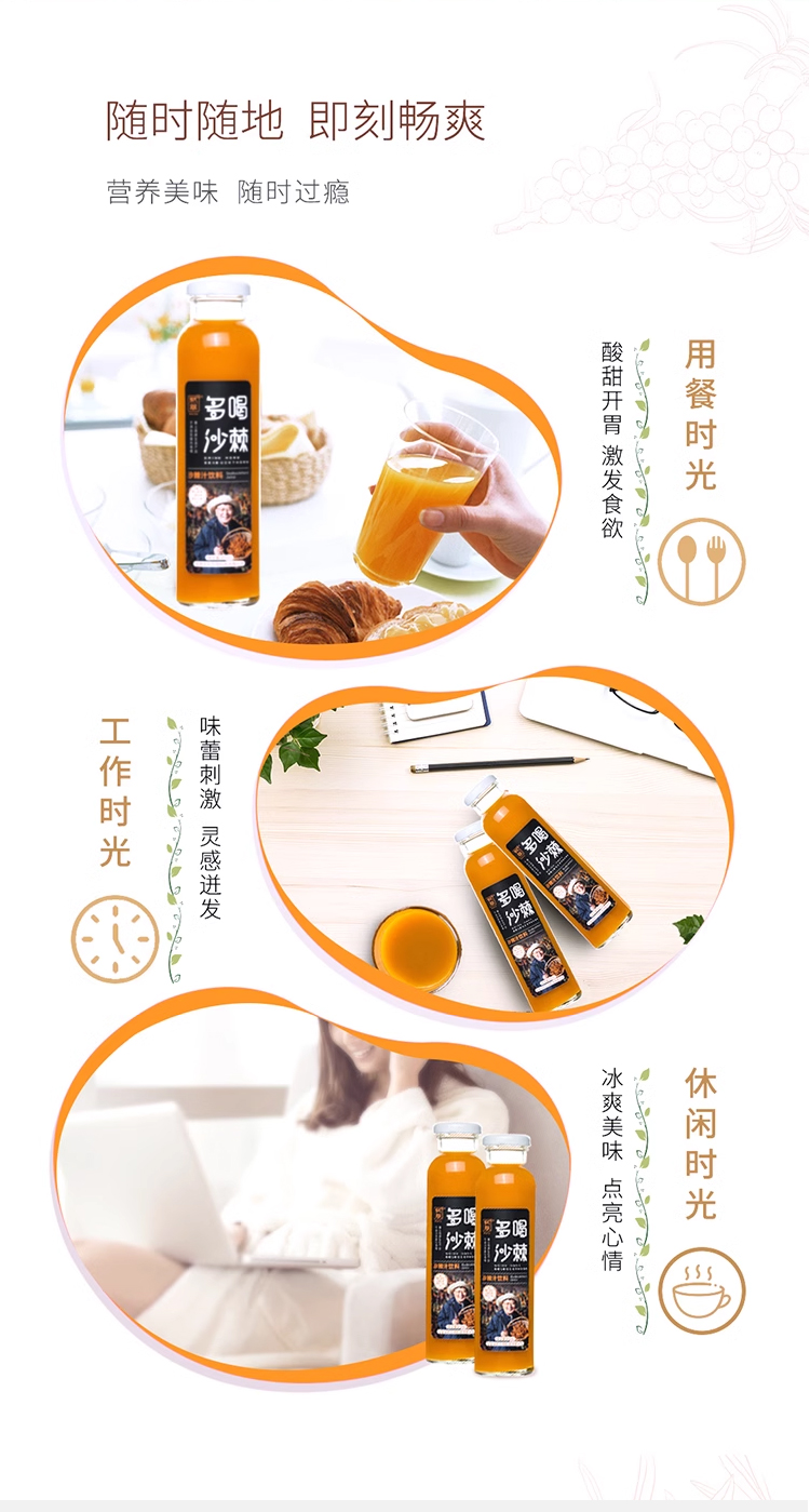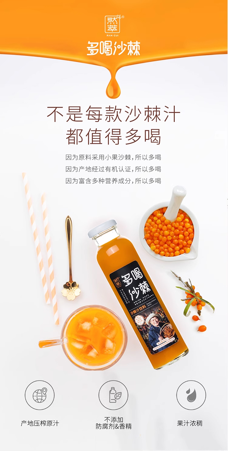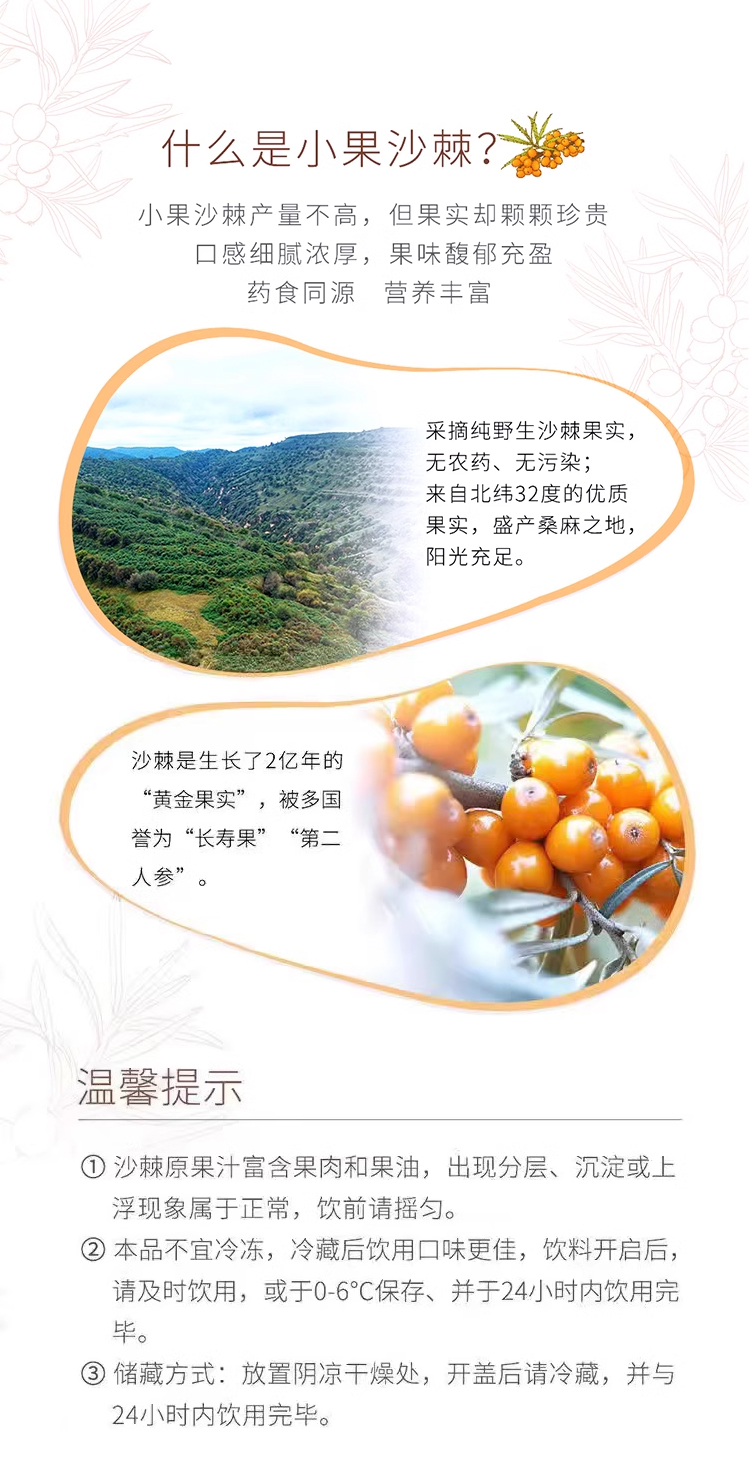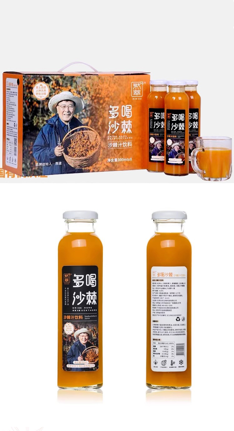 然萃多喝沙棘汁天然VC饮料西北甘肃庆阳特产小果沙棘300ml*8瓶
