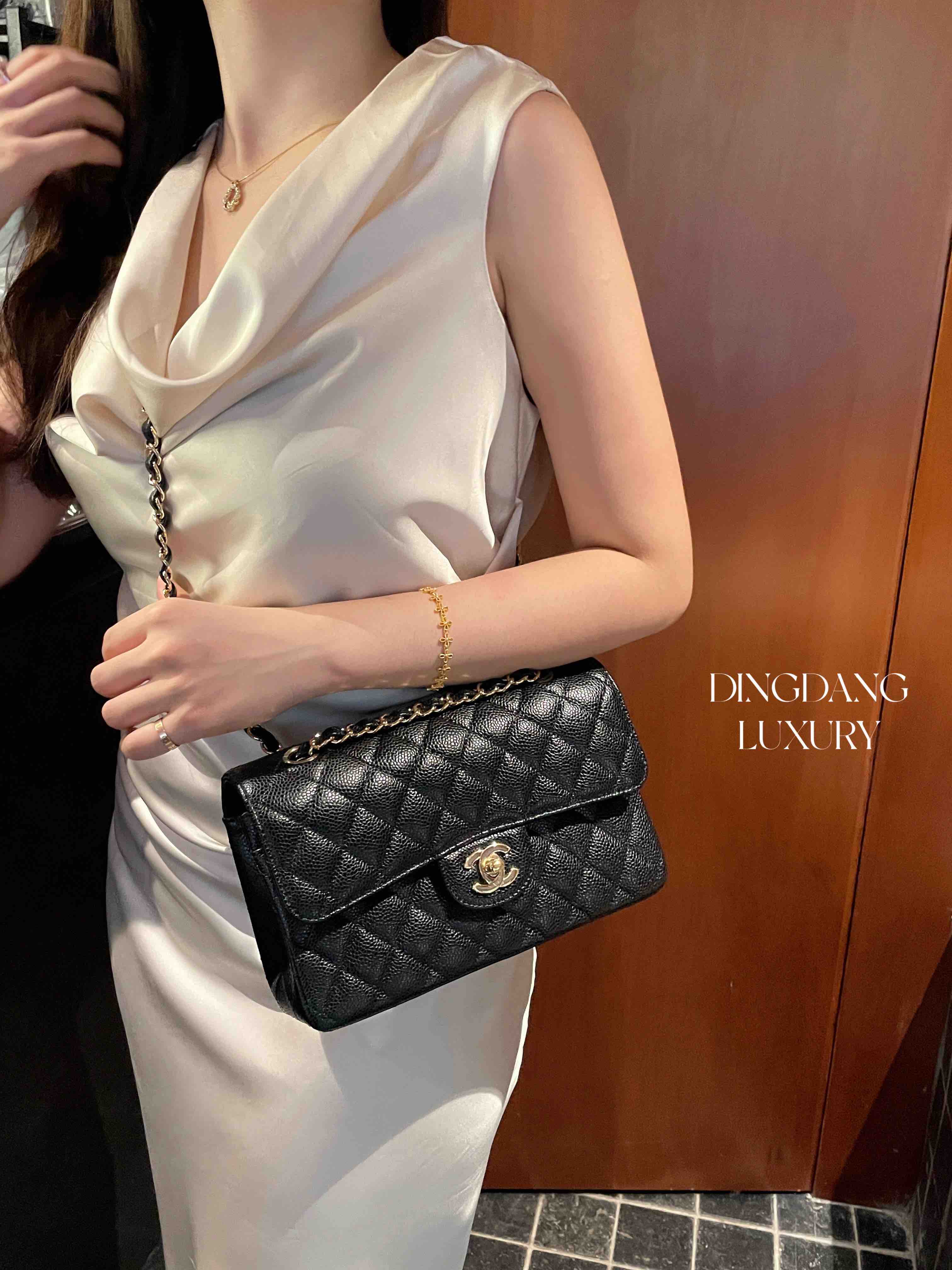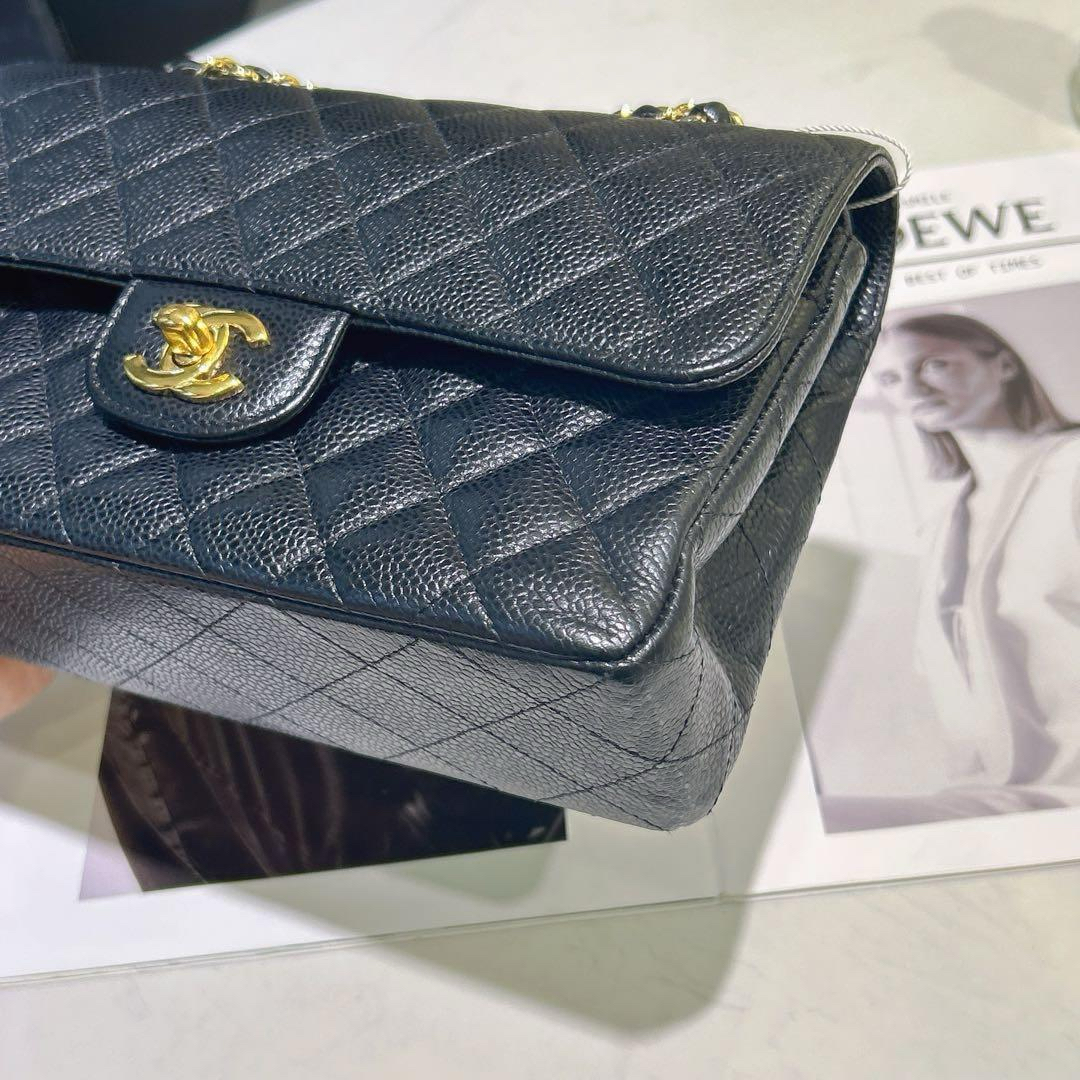 【商品详情】正品二手 CHANEL cf 小号 黑金 荔枝纹牛皮 斜挎包🐃 98新 23x15 镭射18开 配件:盒、防尘袋。整体保存很好 经典黑金🉑直接入手