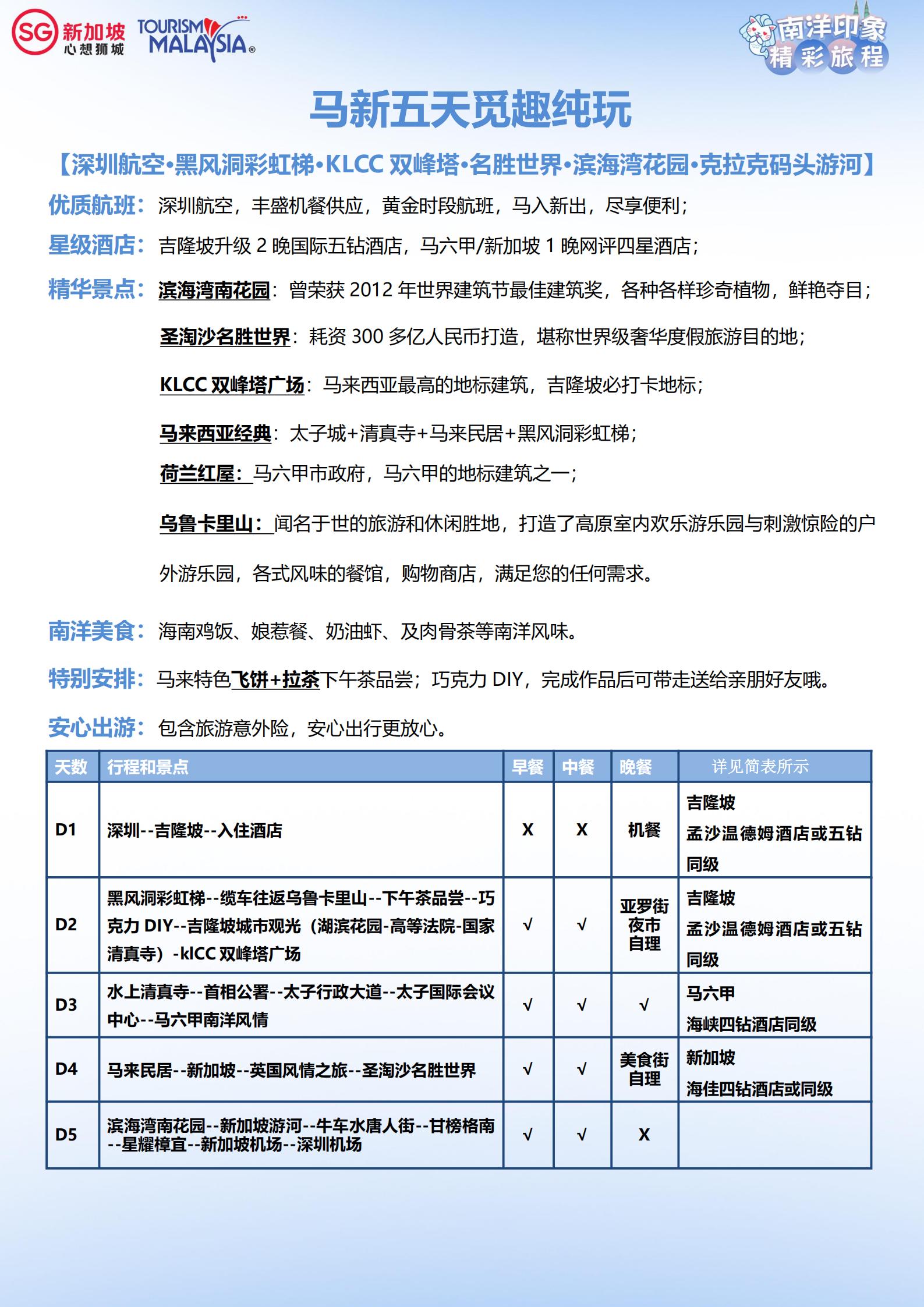 【圣诞、元旦】<新加坡+马来西亚5天纯玩团-深圳直飞往返>黑风洞彩虹梯·KLCC 双峰塔·马六甲南洋之旅·名胜世界·滨海湾花园·克拉克码头游河·吉隆坡升级2晚国际五钻酒店