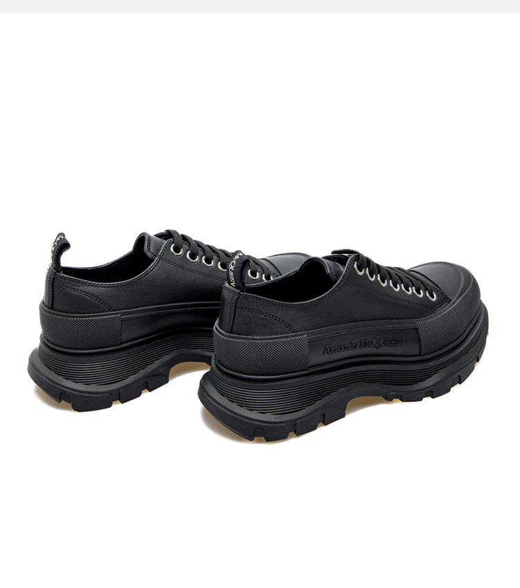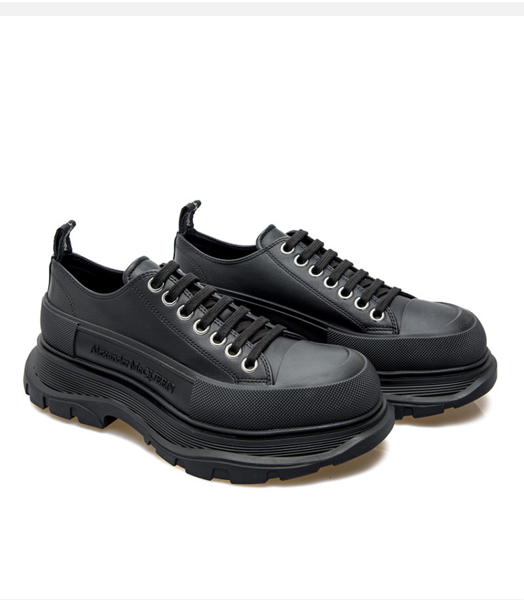 ALEXANDER MCQUEEN 亚历山大.麦昆 男士皮革 Tread Slick 系带休闲运动鞋 黑色 705662 WHZ62 1081