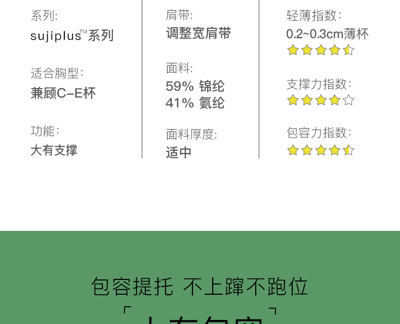 素肌良品 “大稳稳” | 大胸显小果冻条内衣防下垂收副乳舒适文胸 MX124-FX