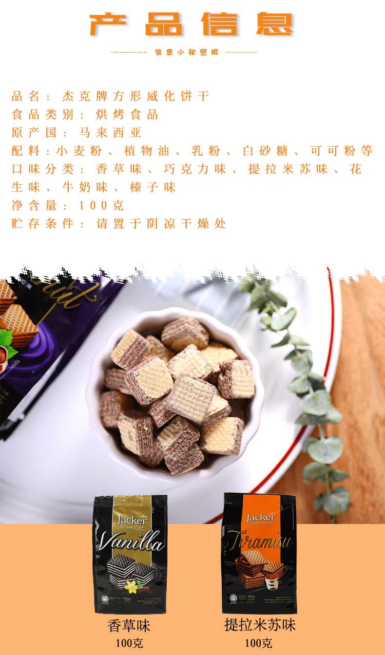 杰克方形威化饼干袋装100g