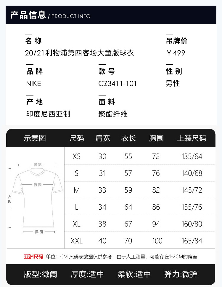 SFS耐克Nike正品大童球迷版球衣运动训练青少年足球服CZ3411-101