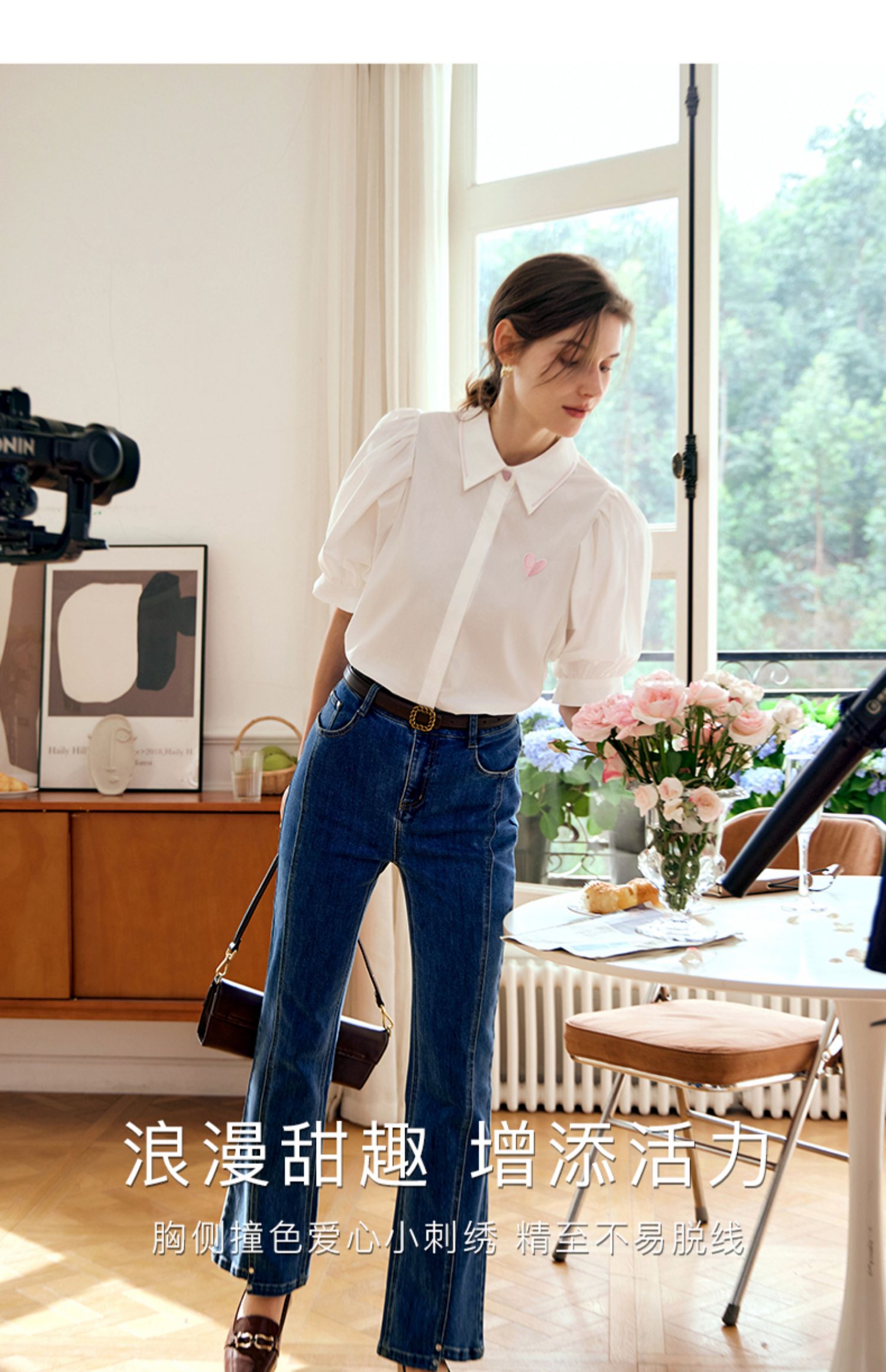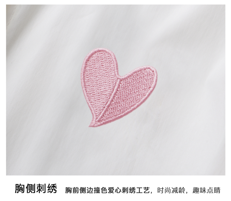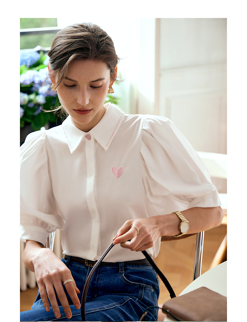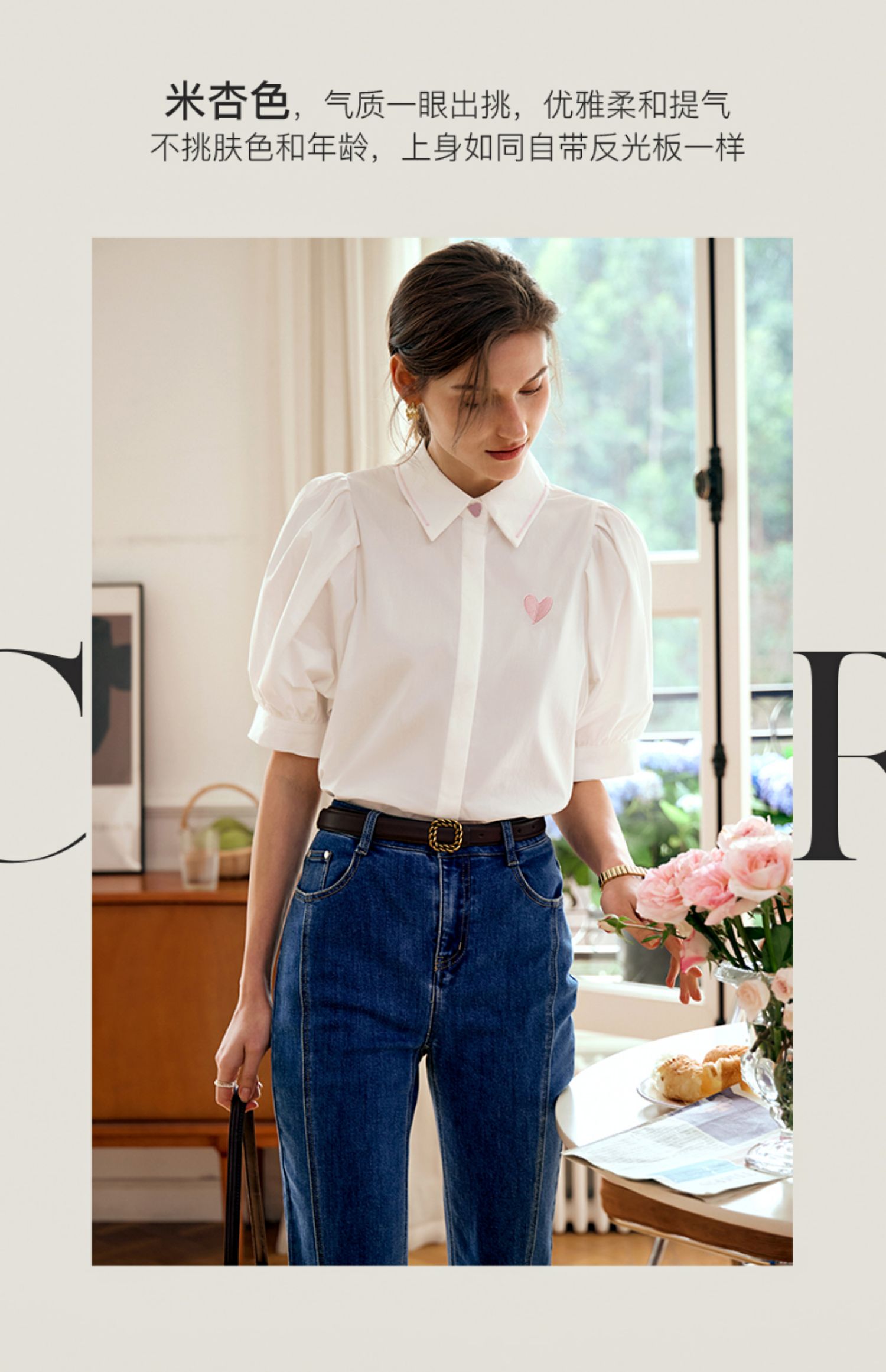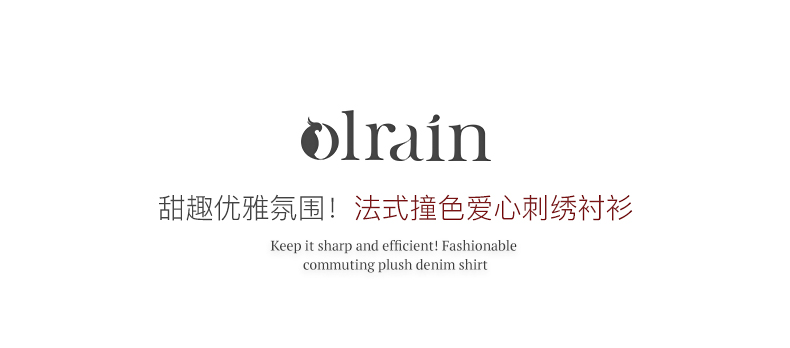 OLrain欧芮儿法式杏色衬衫女早春2024年新款撞色爱心刺绣衬衣上衣
