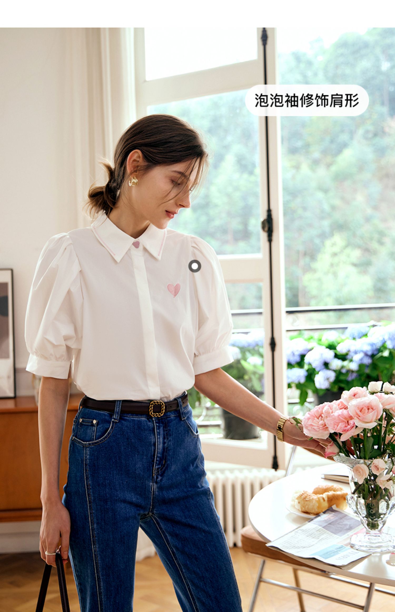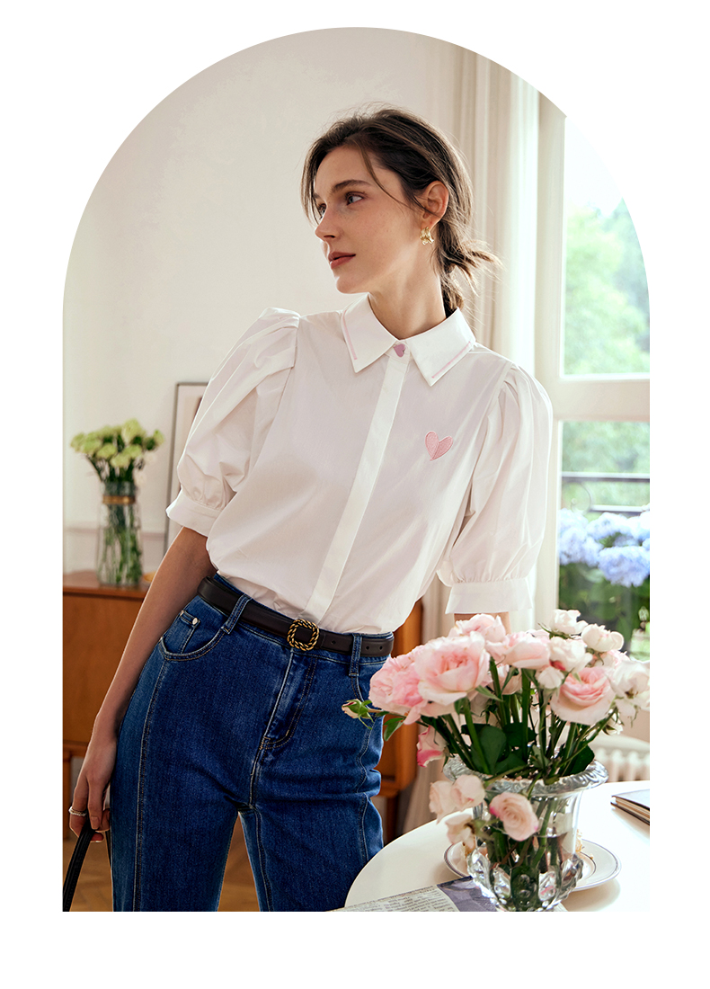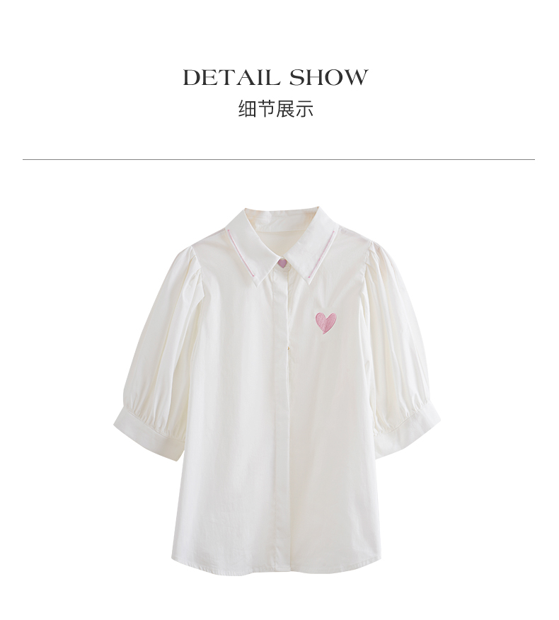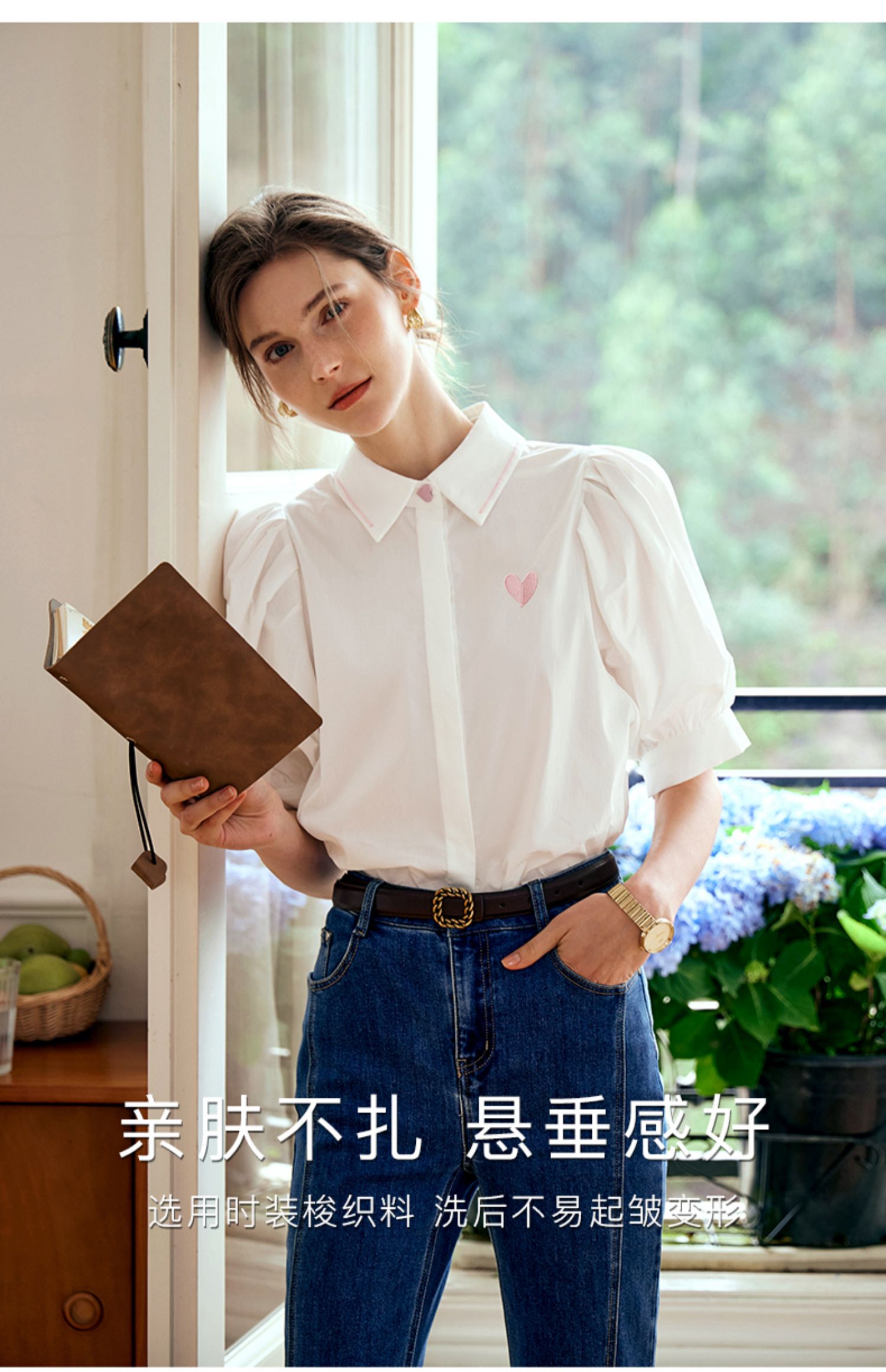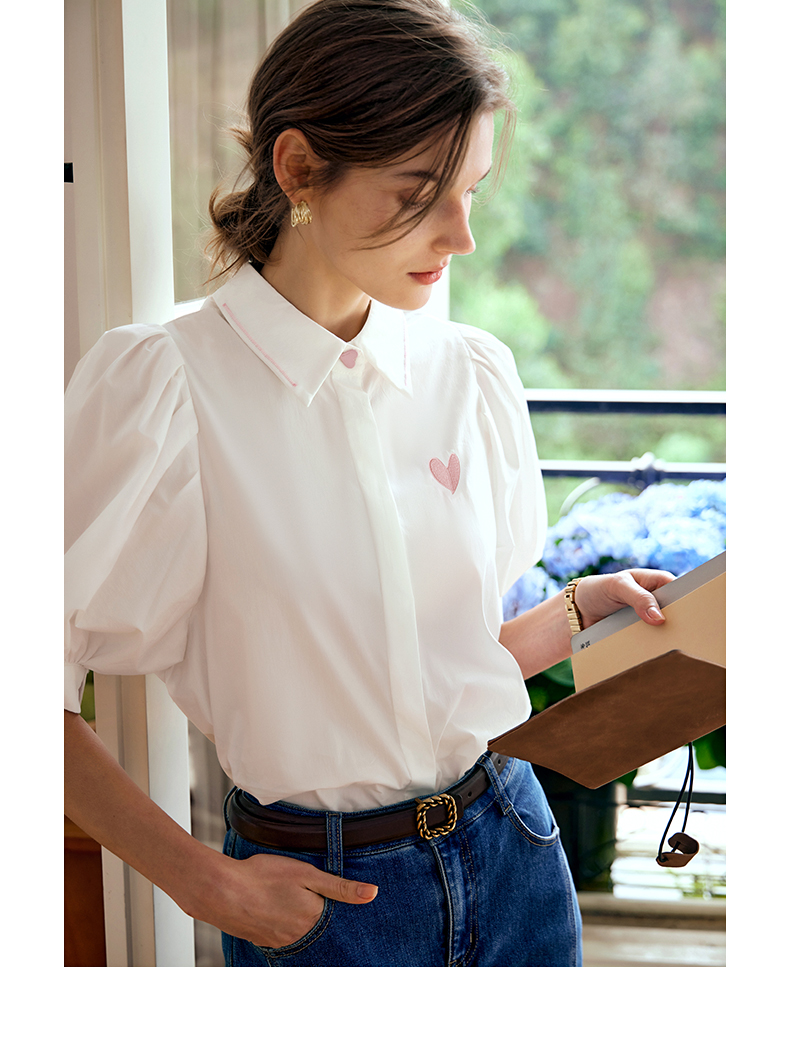 OLrain欧芮儿法式杏色衬衫女早春2024年新款撞色爱心刺绣衬衣上衣