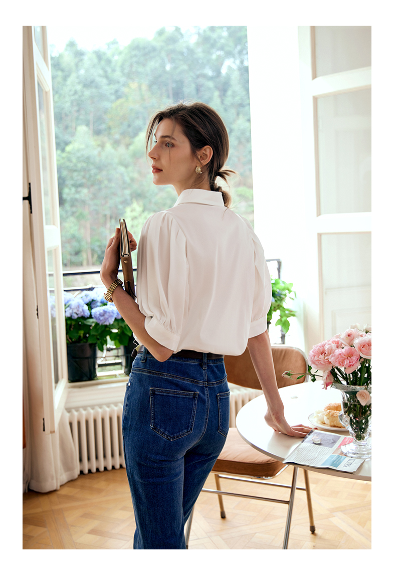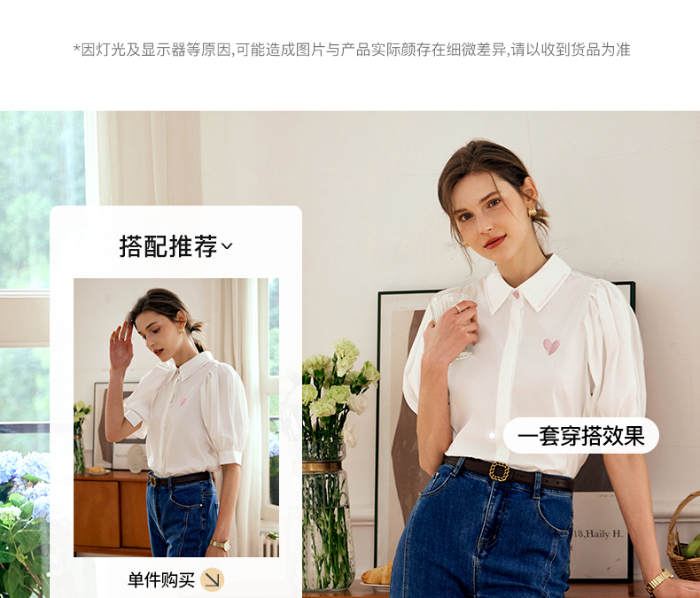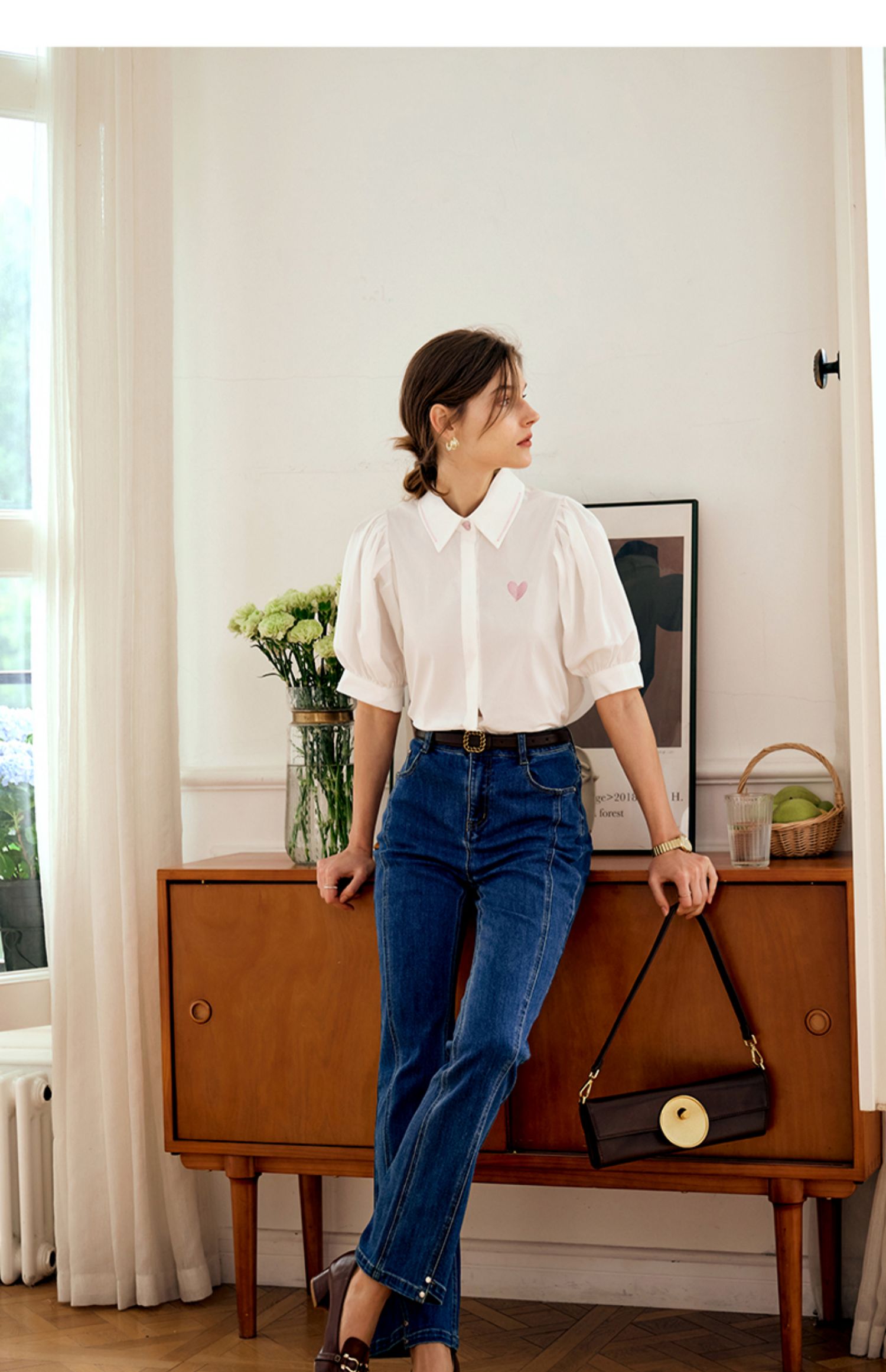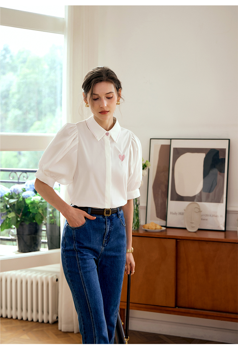 OLrain欧芮儿法式杏色衬衫女早春2024年新款撞色爱心刺绣衬衣上衣