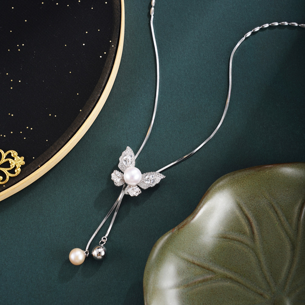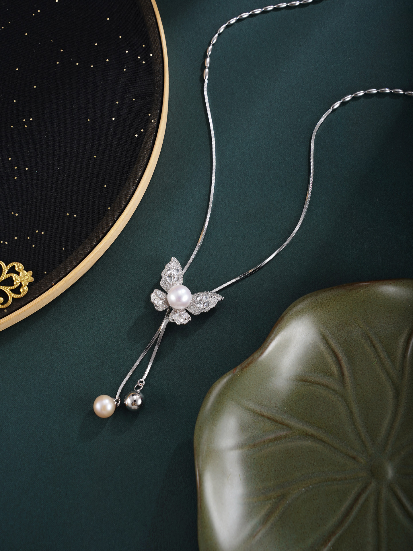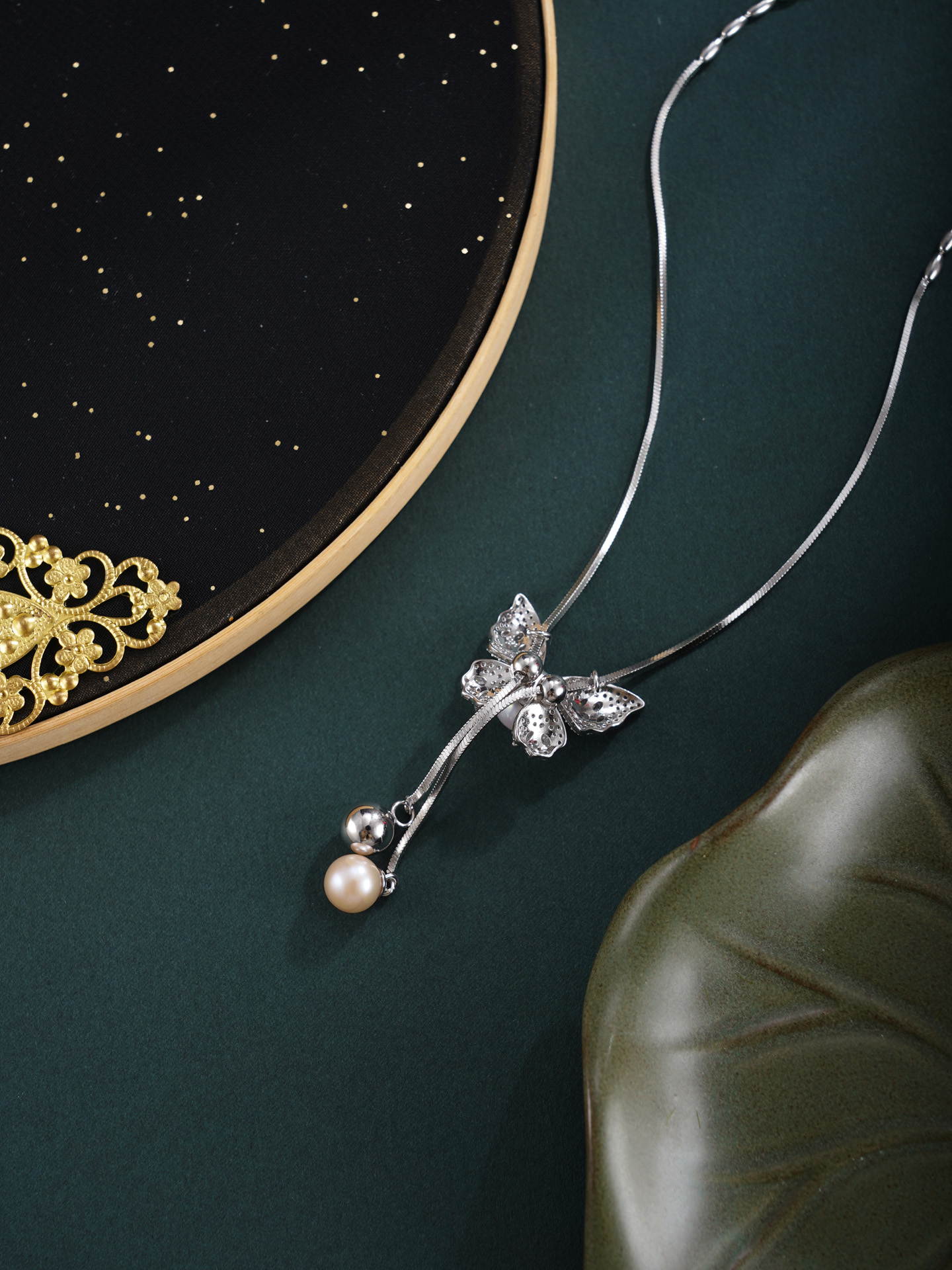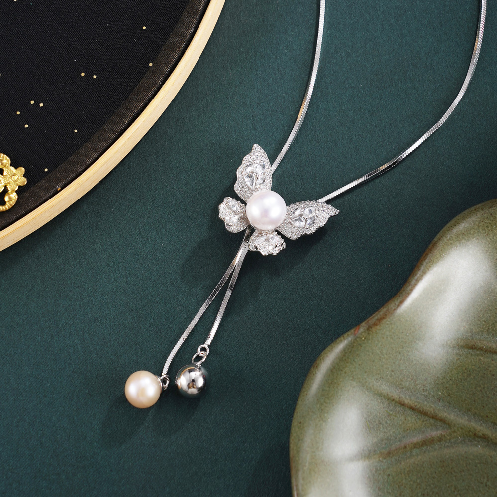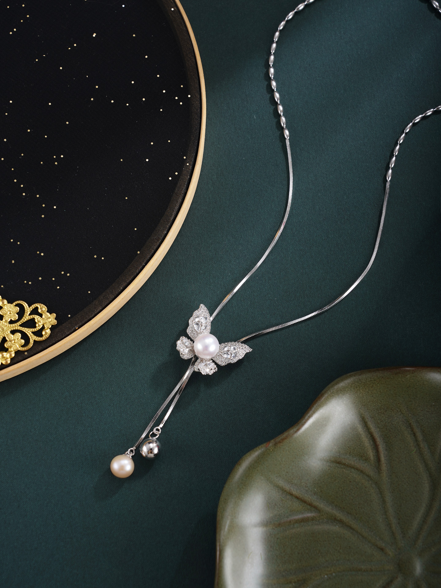 子佩集【蝶梦成真】银S925珍珠惜王妃套链项链【L9886】大蝴蝶流苏2602