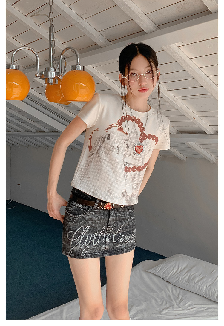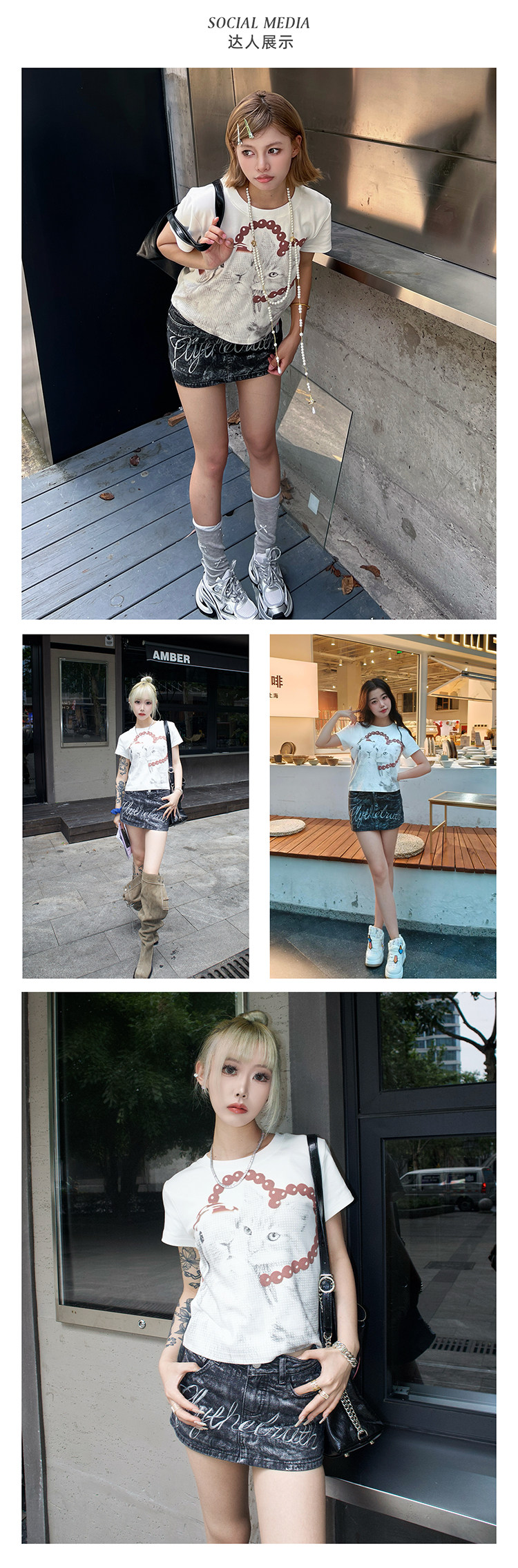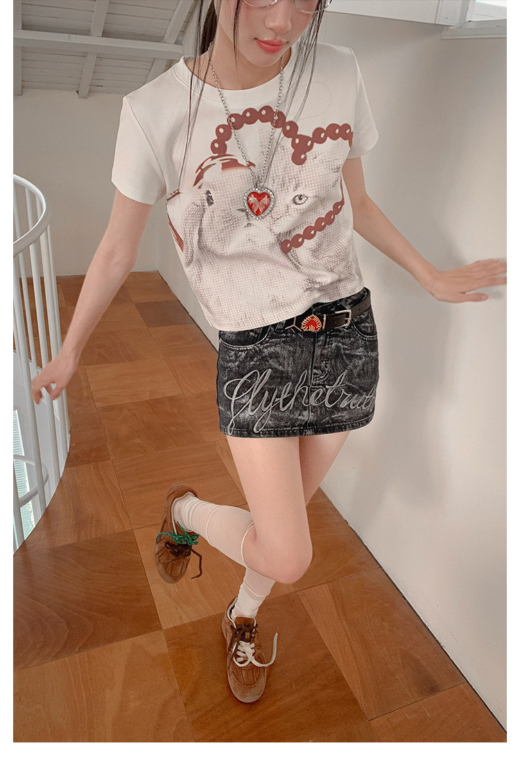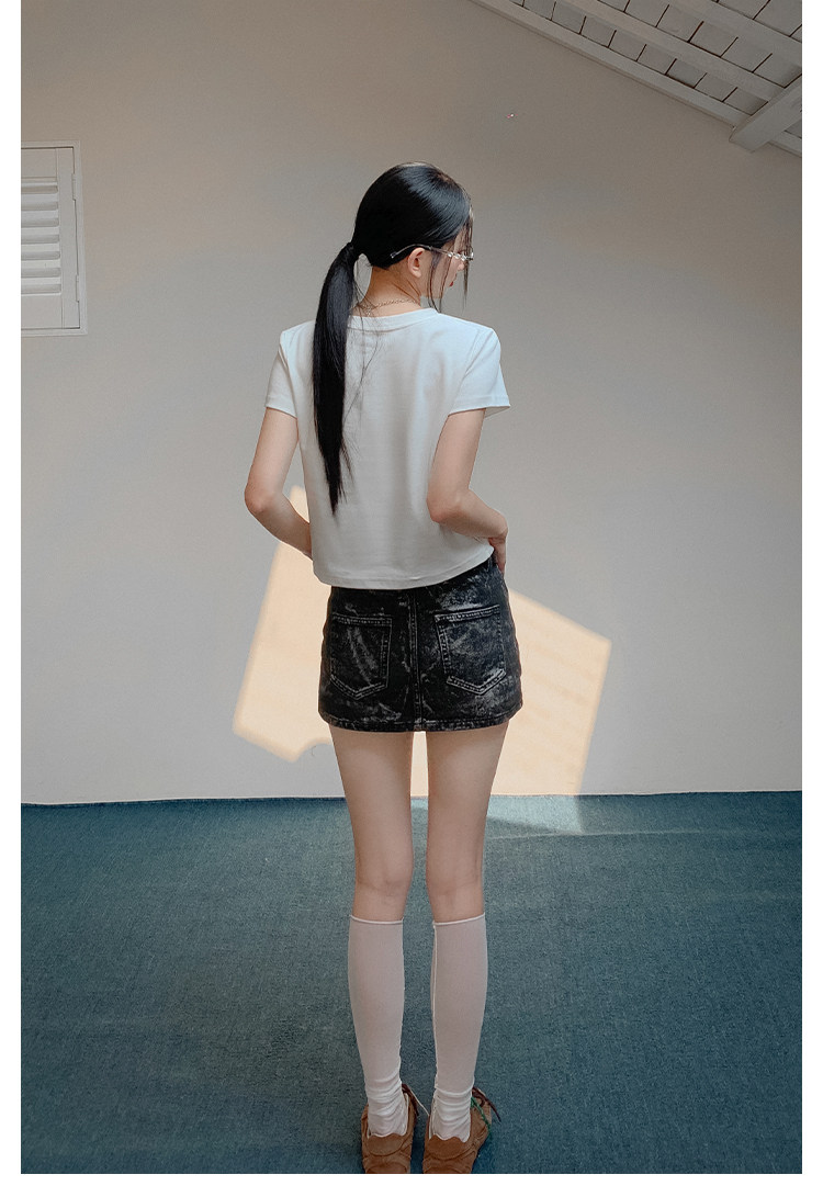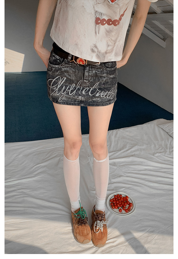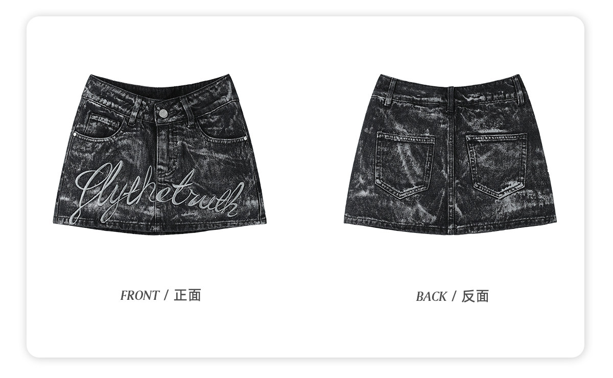 FTT FlyTheTruth『褪蓝期』 烫银字母刺绣牛仔短裙女夏美式半身裙