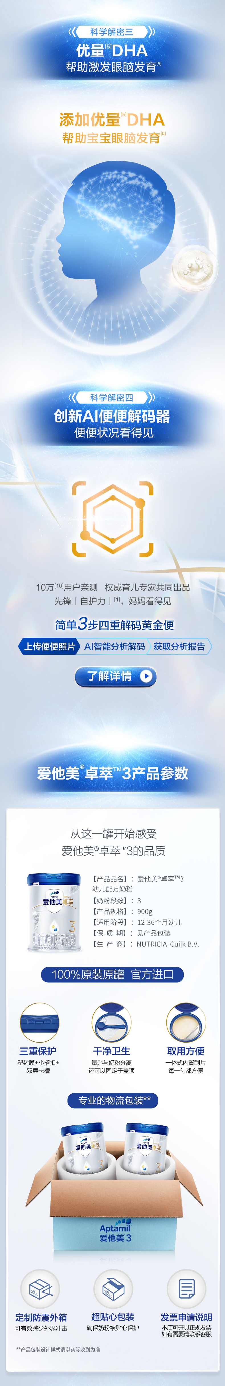 爱他美卓萃幼儿配方奶粉(12-36月龄3段)900g