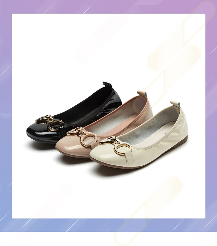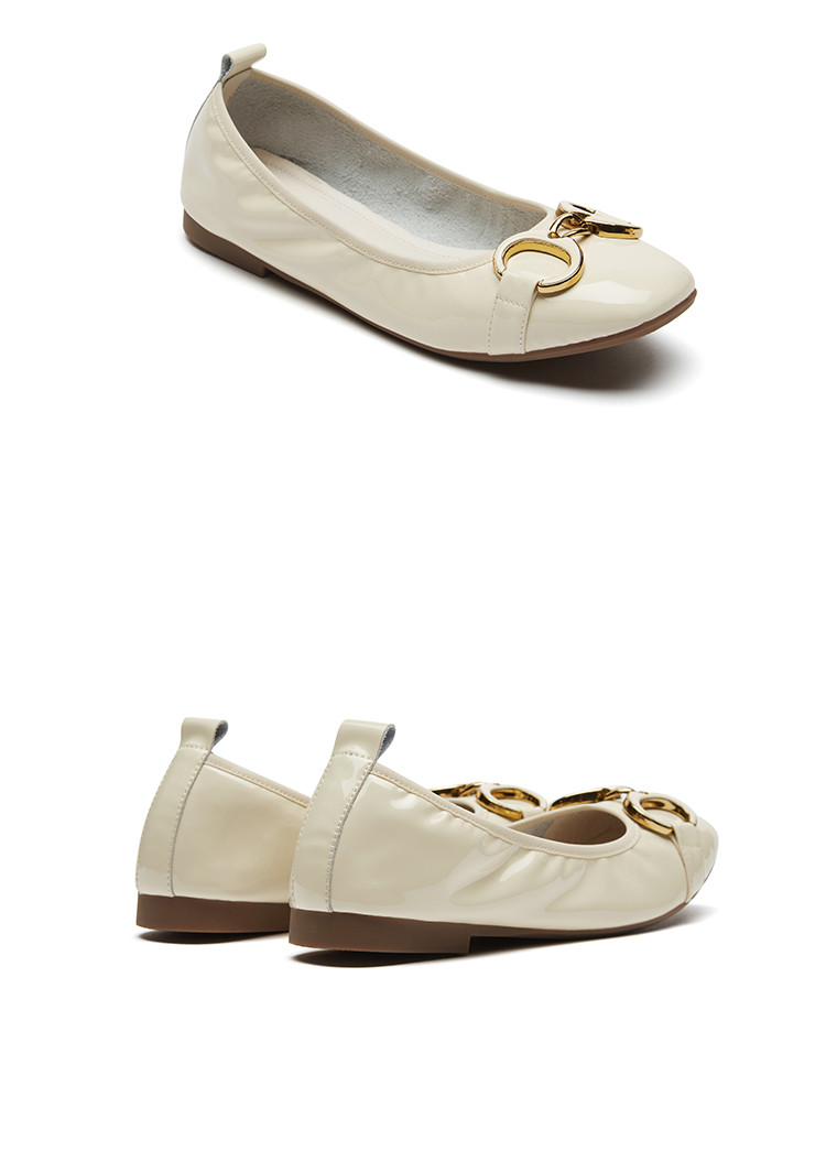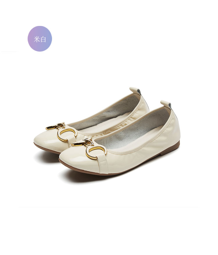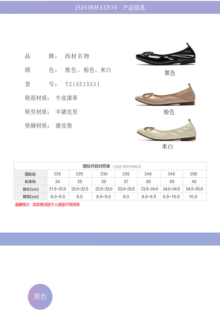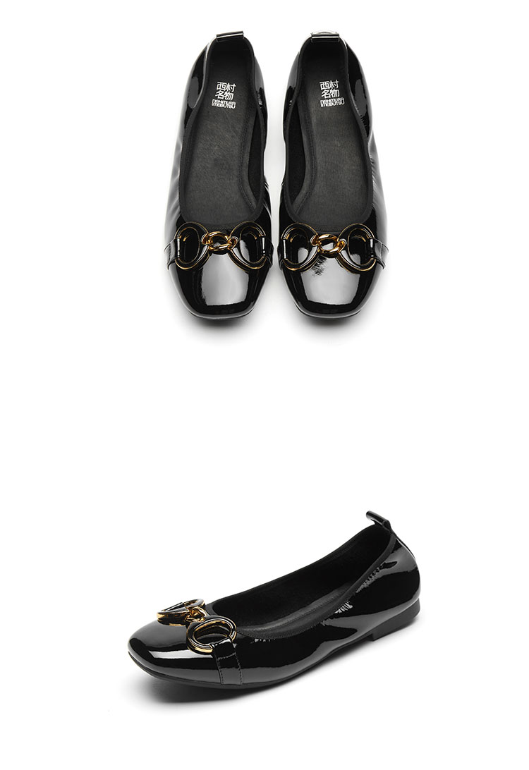 西村名物2021年新款舒软休闲平跟女单鞋浅口百搭牛漆皮圆头奶奶鞋T21AE15511