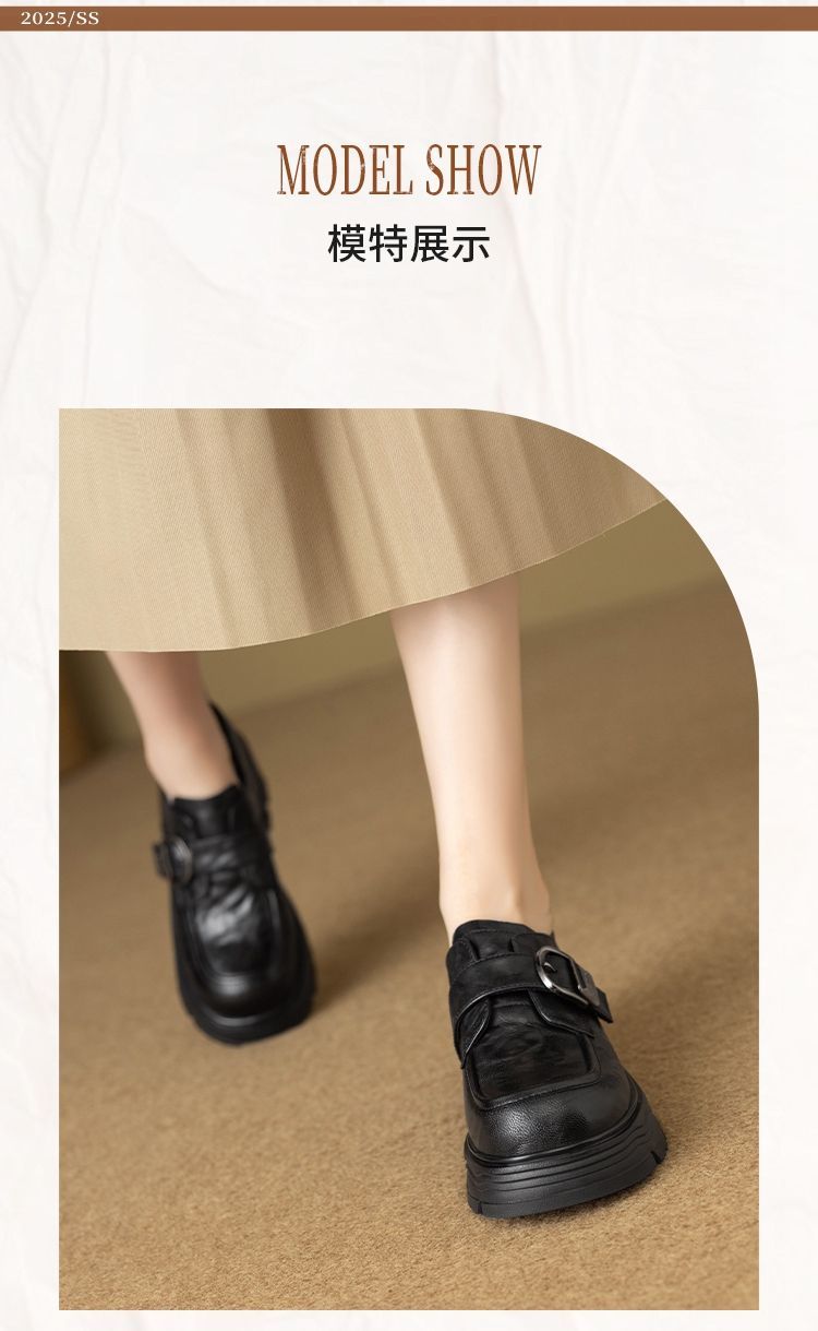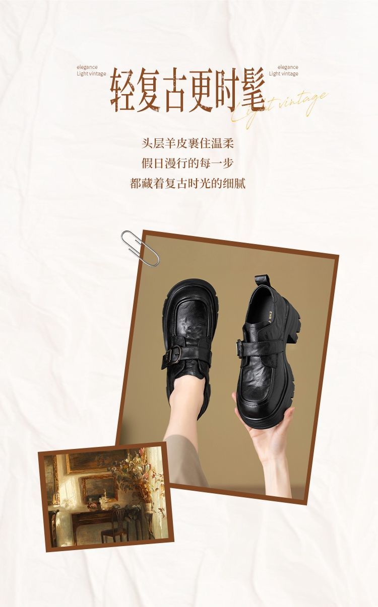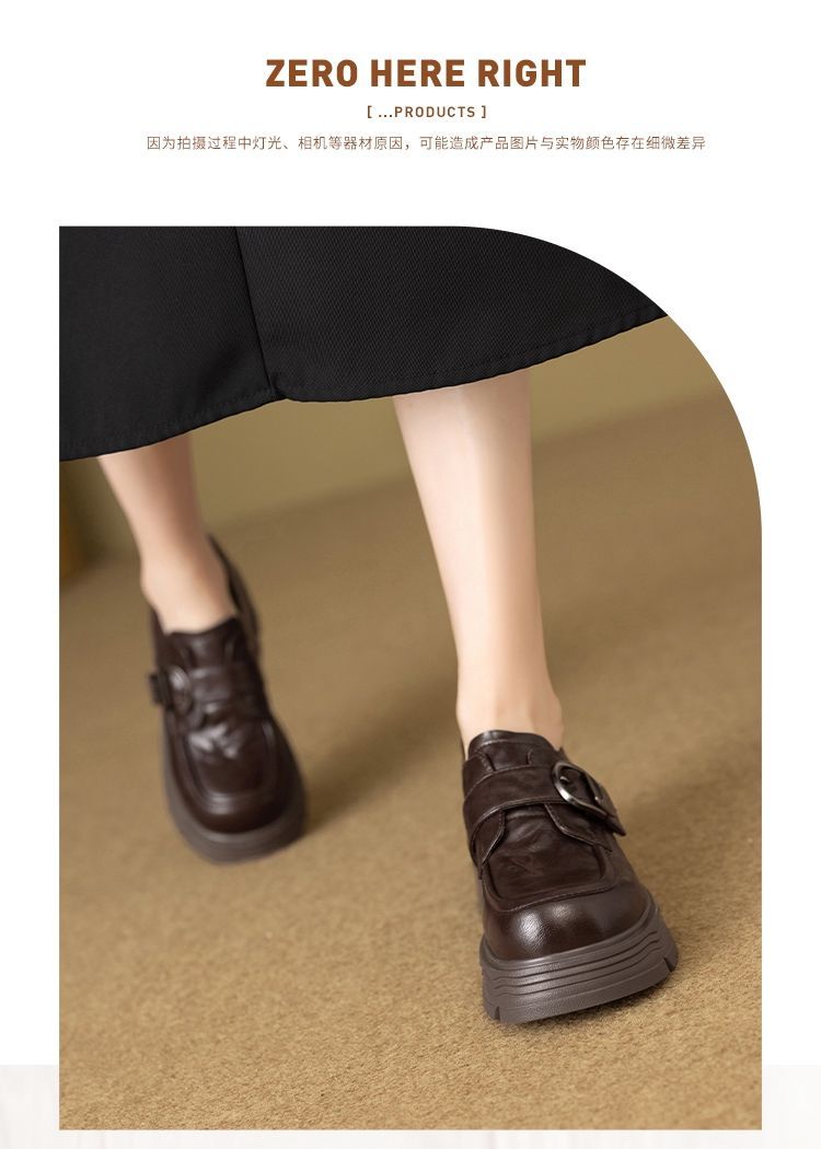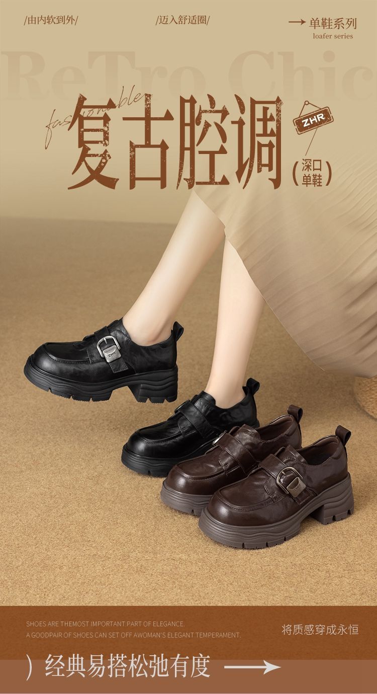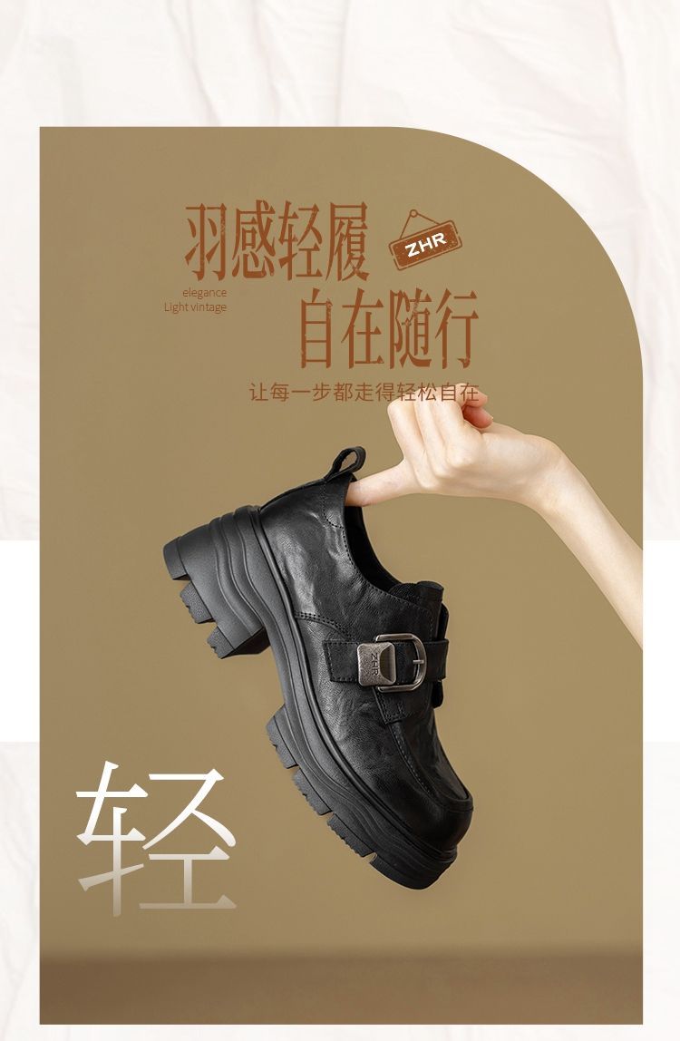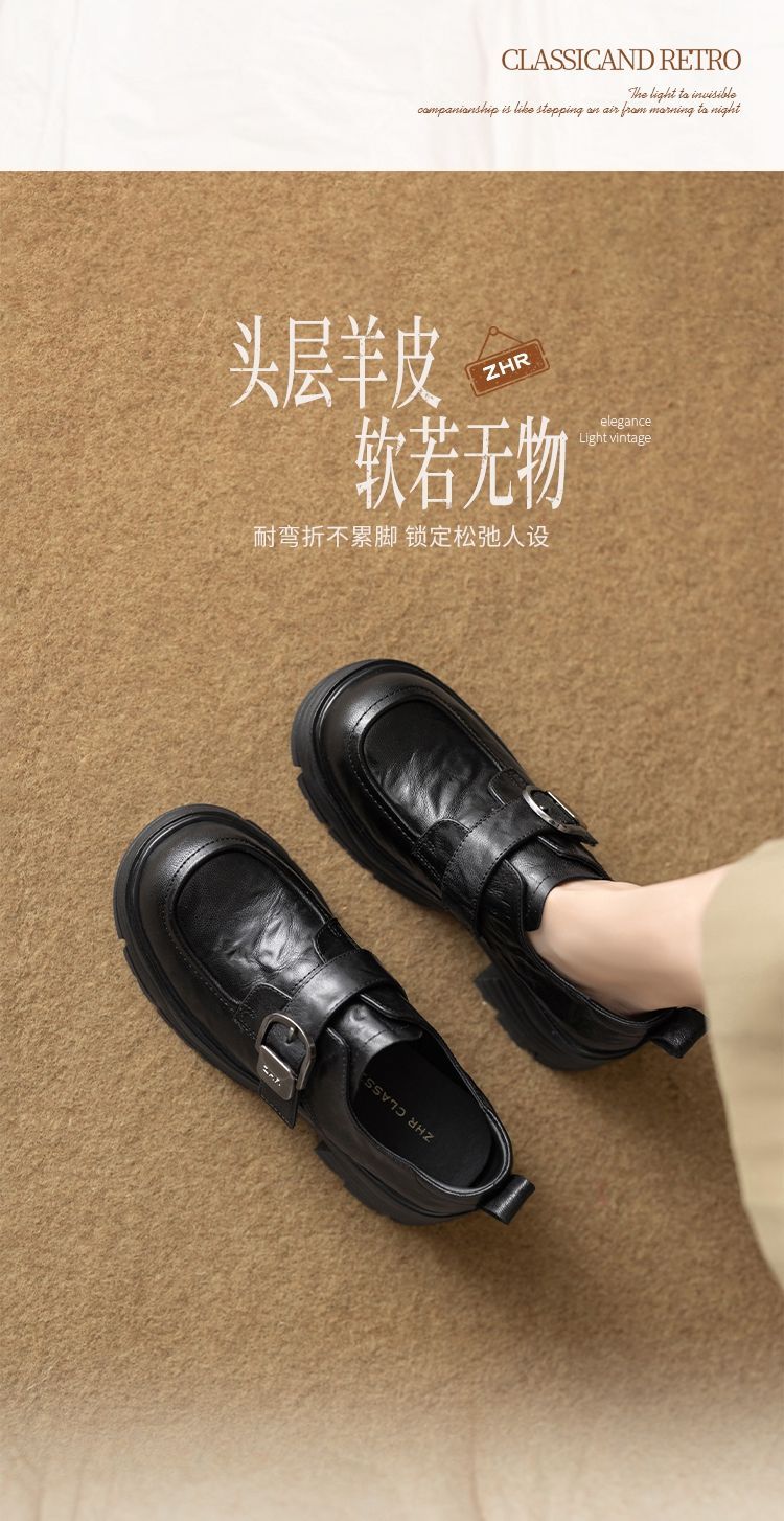 ZHR则则羊皮质感百搭乐福鞋女2026春季新款厚底增高单鞋透气皮鞋
