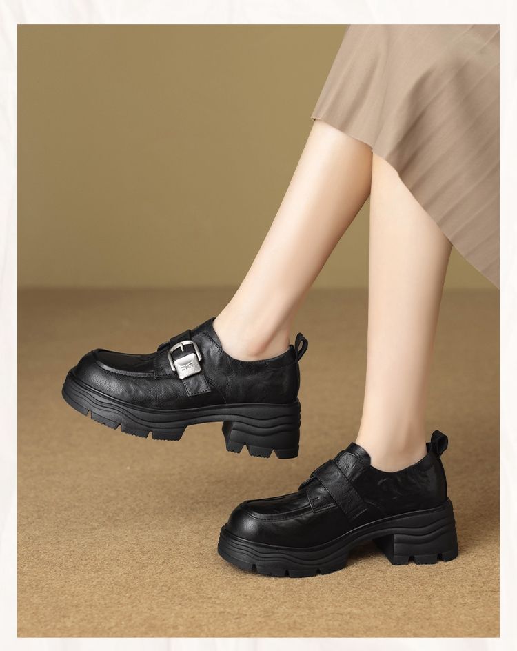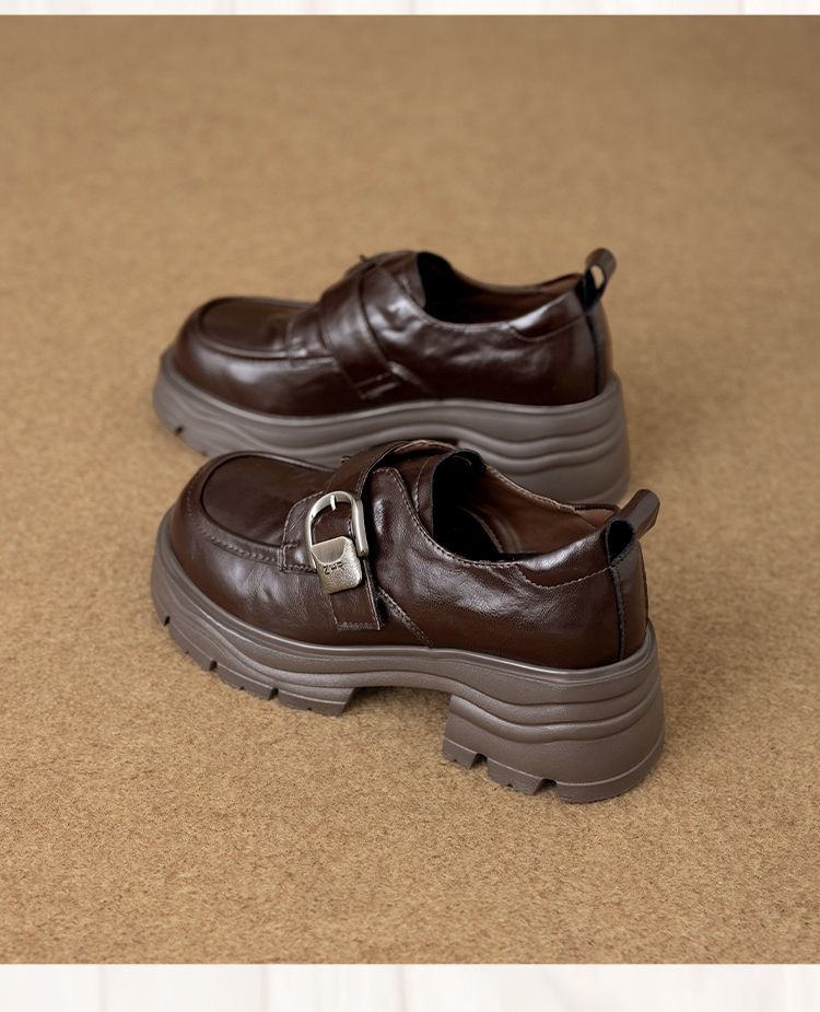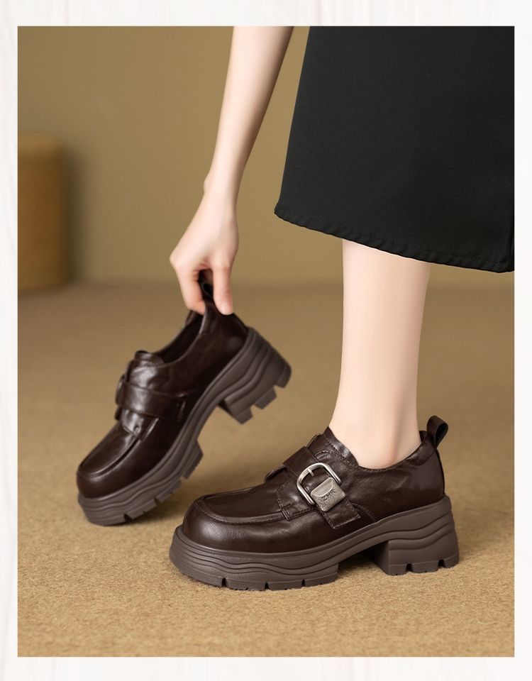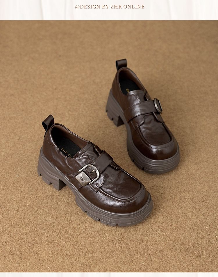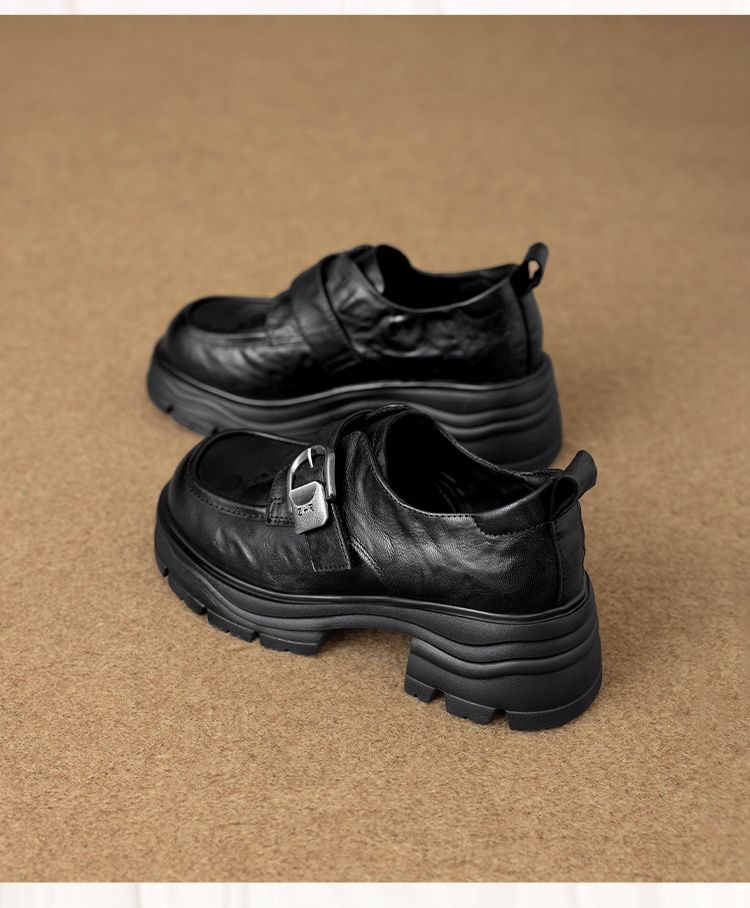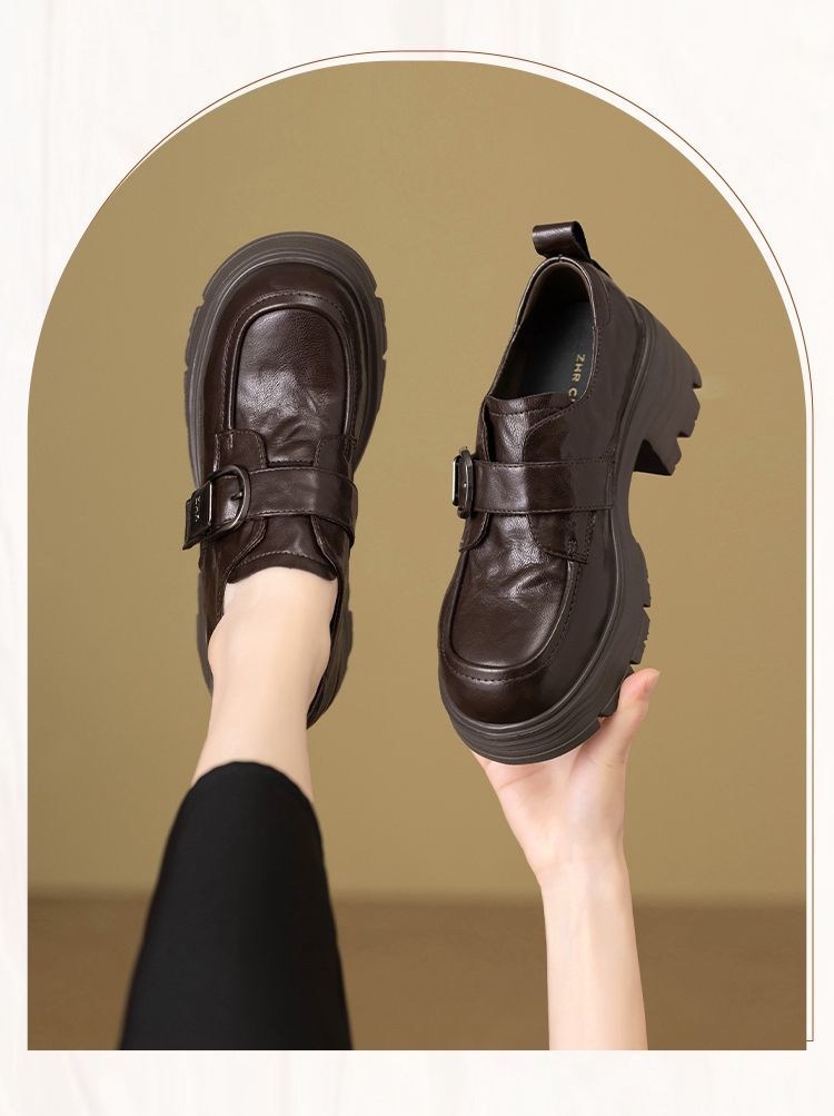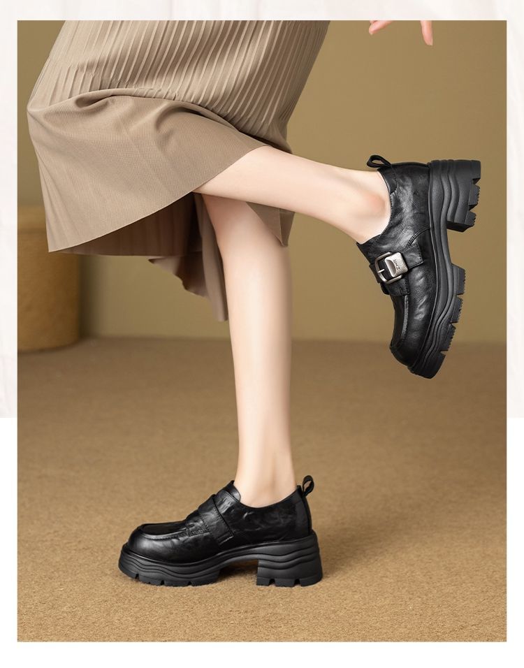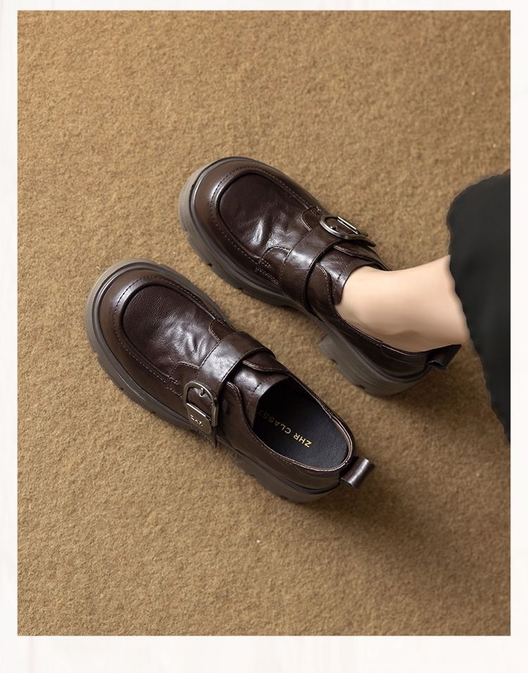 ZHR则则羊皮质感百搭乐福鞋女2026春季新款厚底增高单鞋透气皮鞋