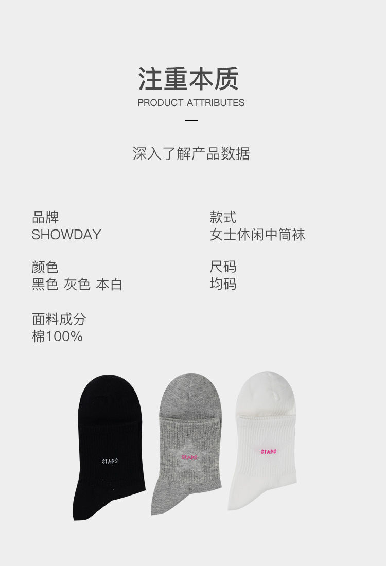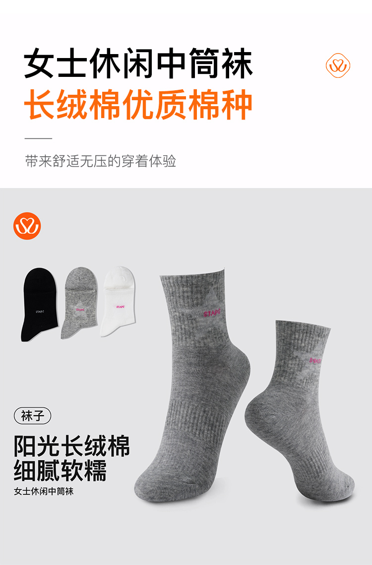 【满3双/19.9元】【秀黛】女士休闲中筒袜棉质亲肤透气手工对目无硌脚感袜子W5220001T【门店同款】