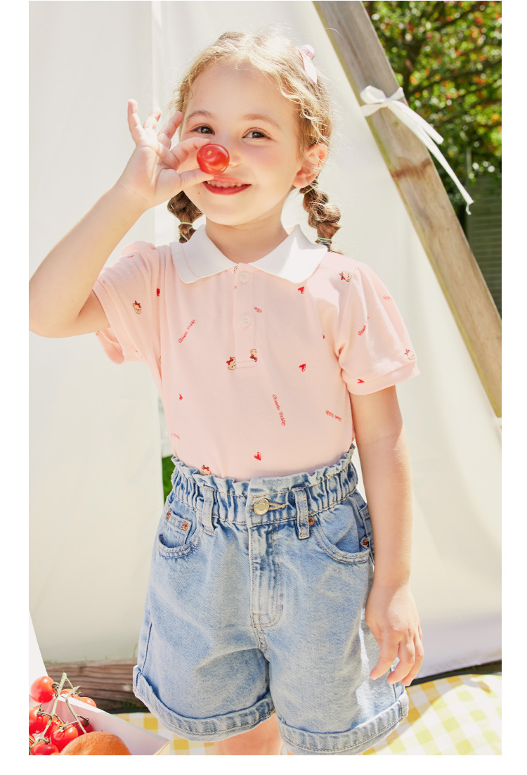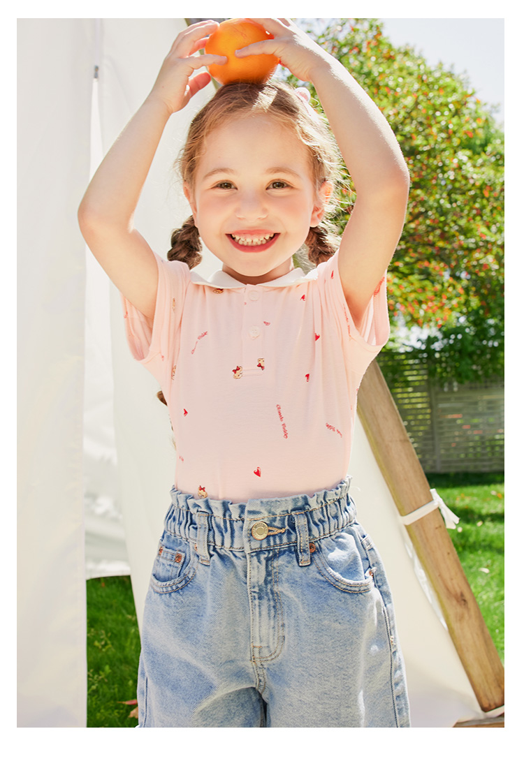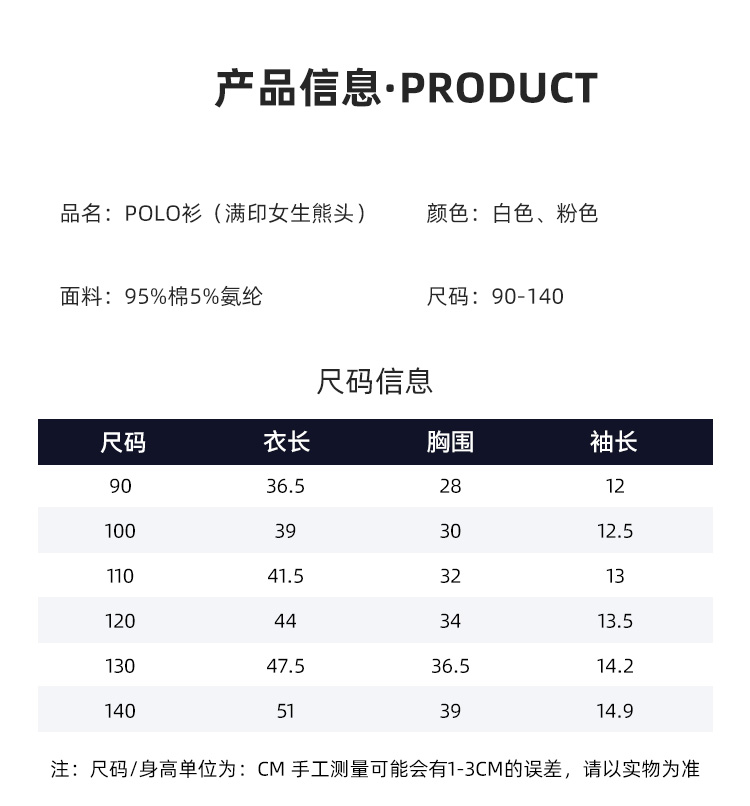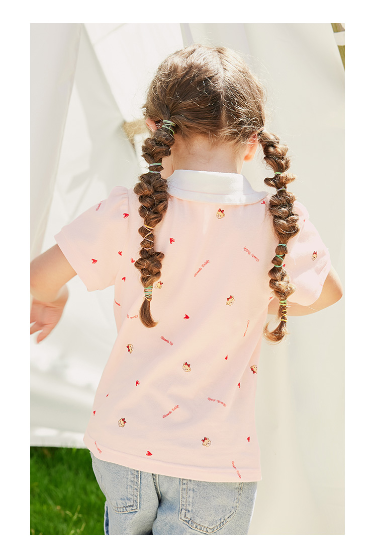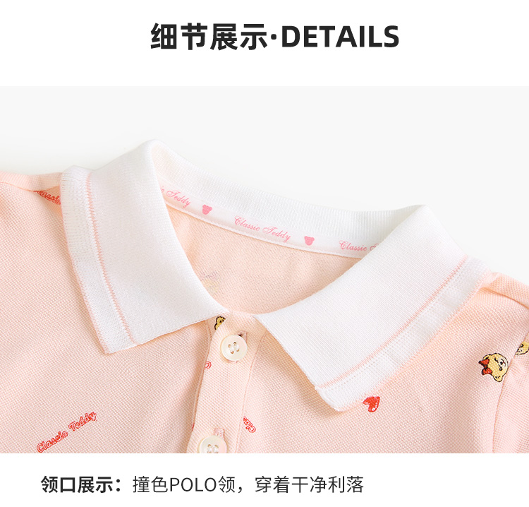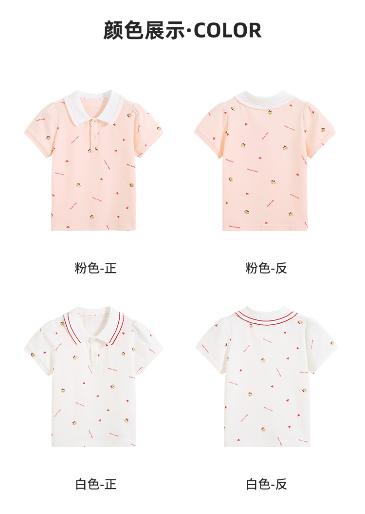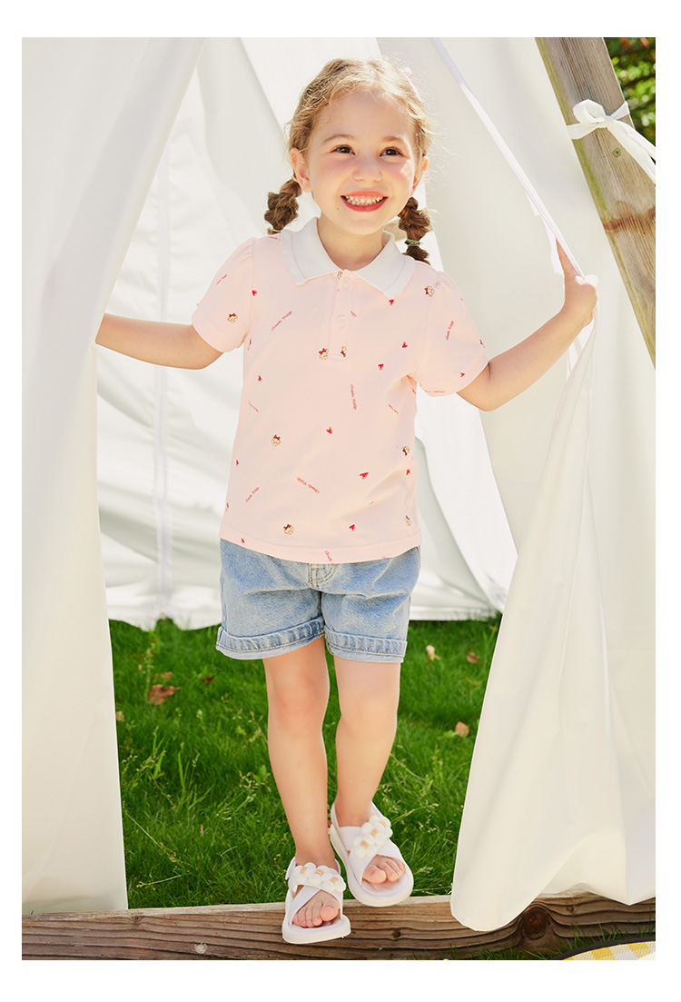 【清仓捡漏】【90-130】【精典泰迪】女童夏款满印小熊短袖POLO衫精典泰迪(95%棉5%氨纶)