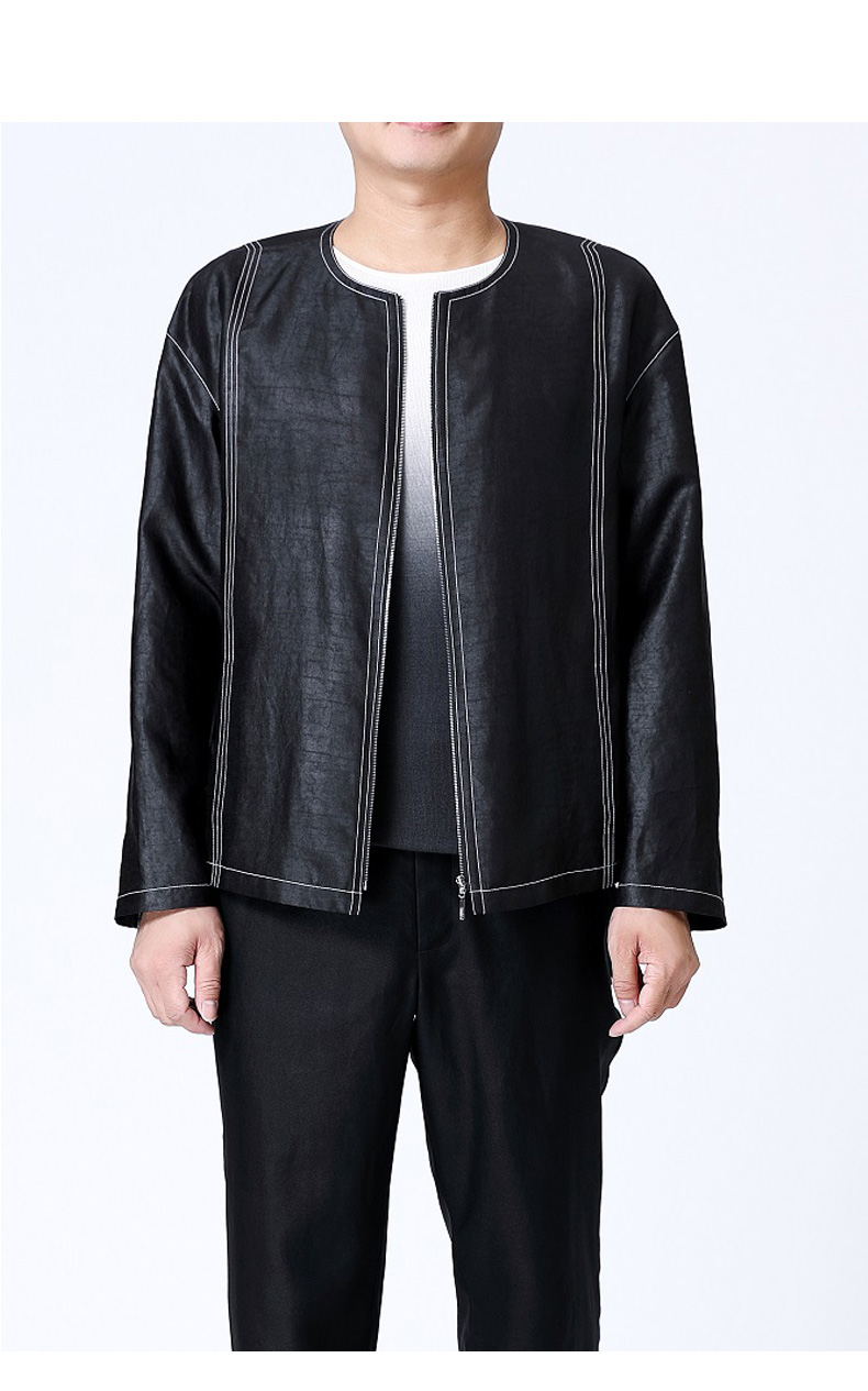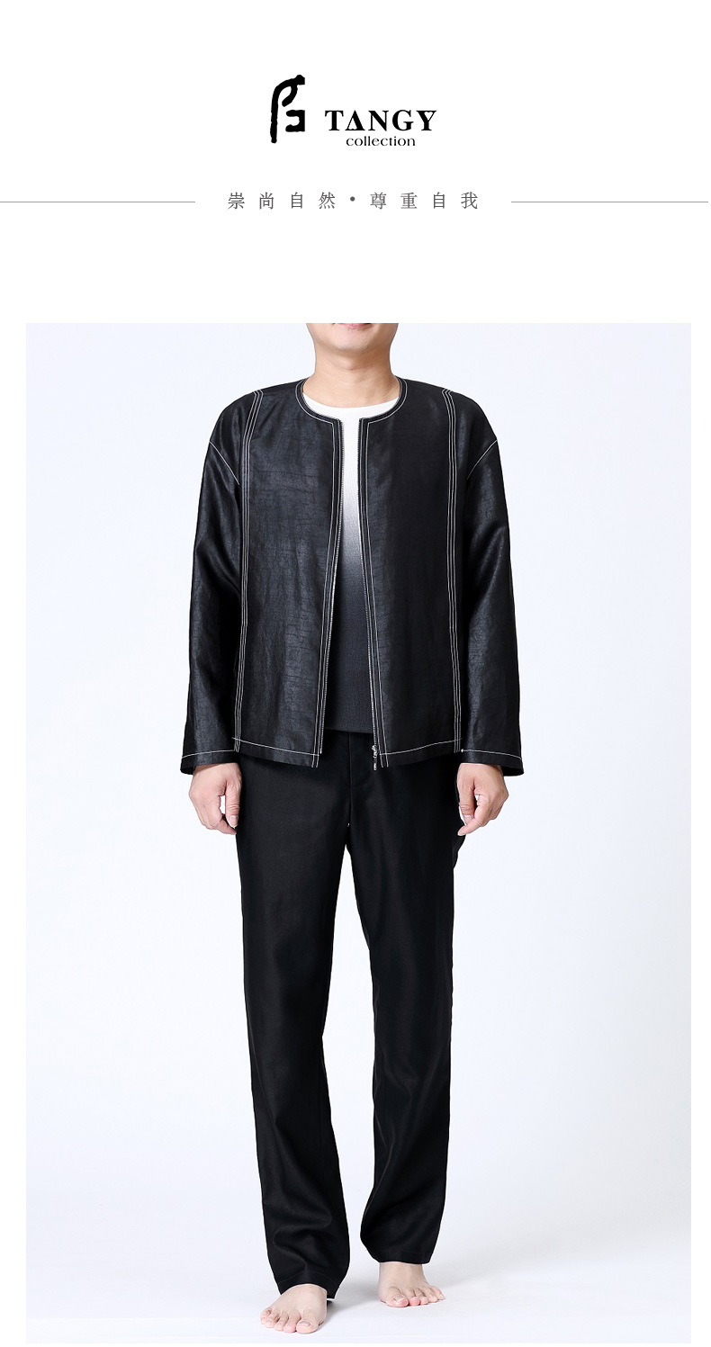 TANGY Collection/天意精品春秋新品春融系列男士线迹莨绸夹克外套