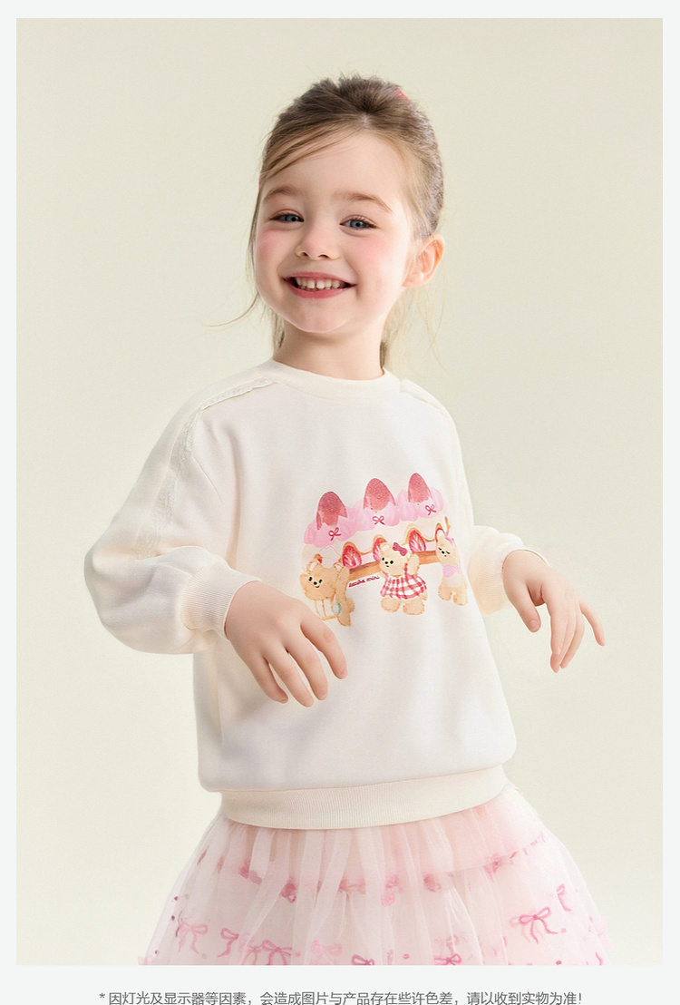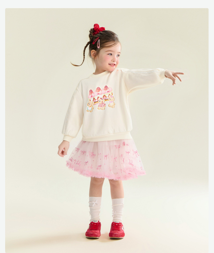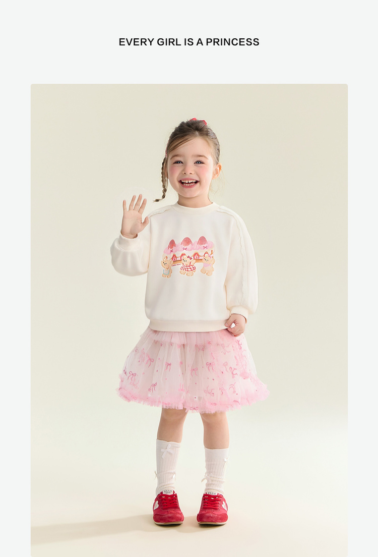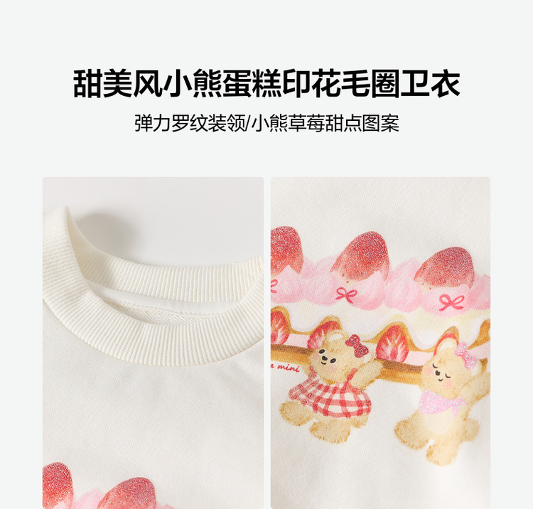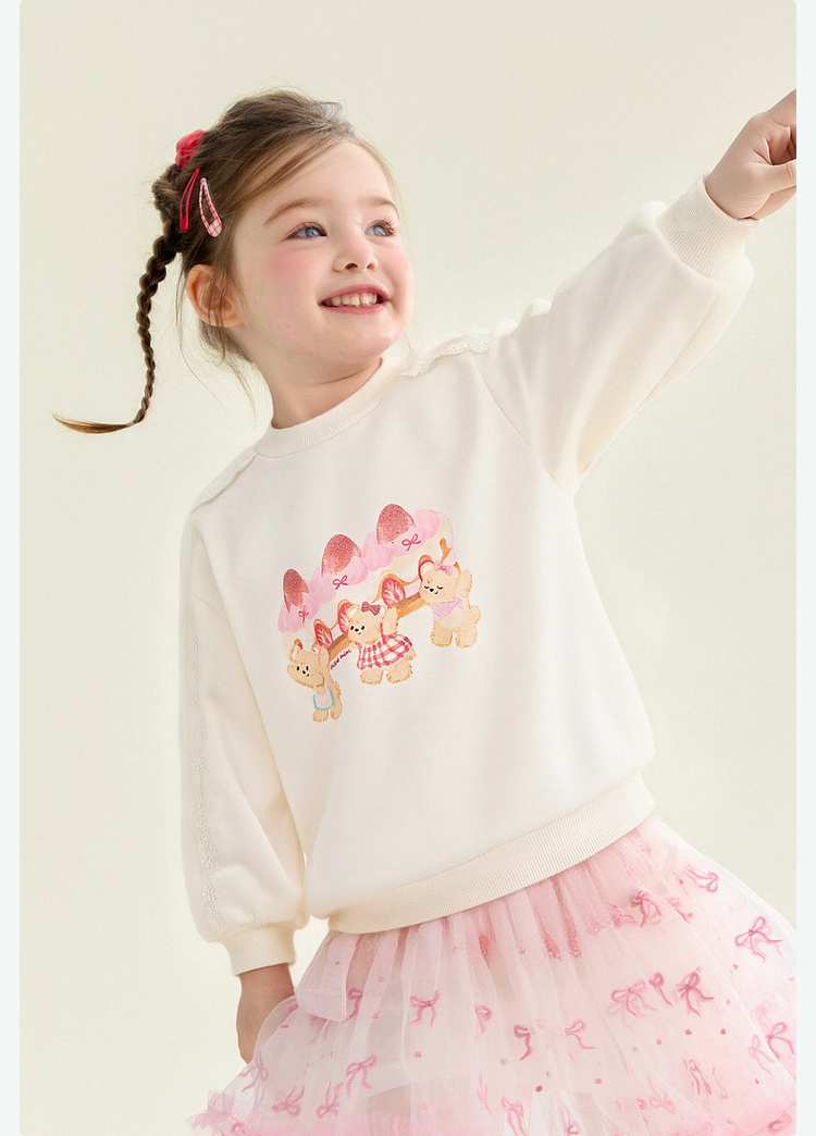 笛莎Deesha 童装女童卫衣2026春新款甜美风小熊蛋糕印花毛圈卫衣