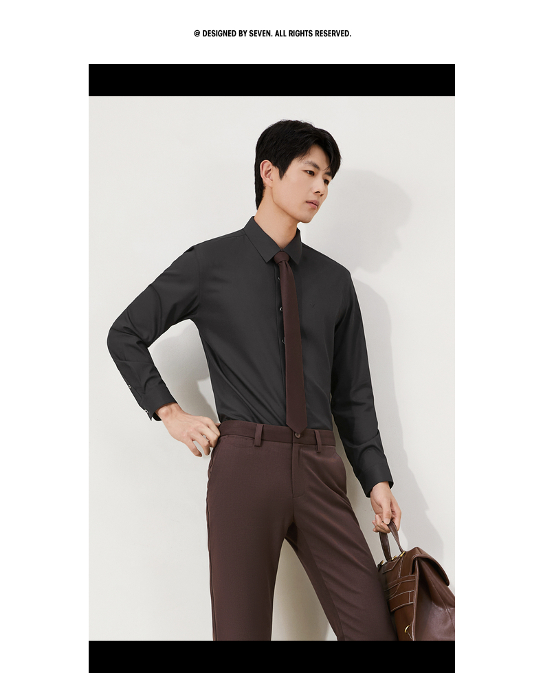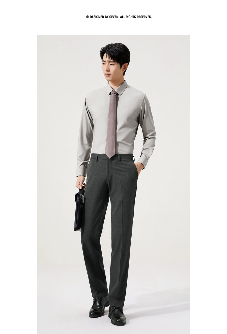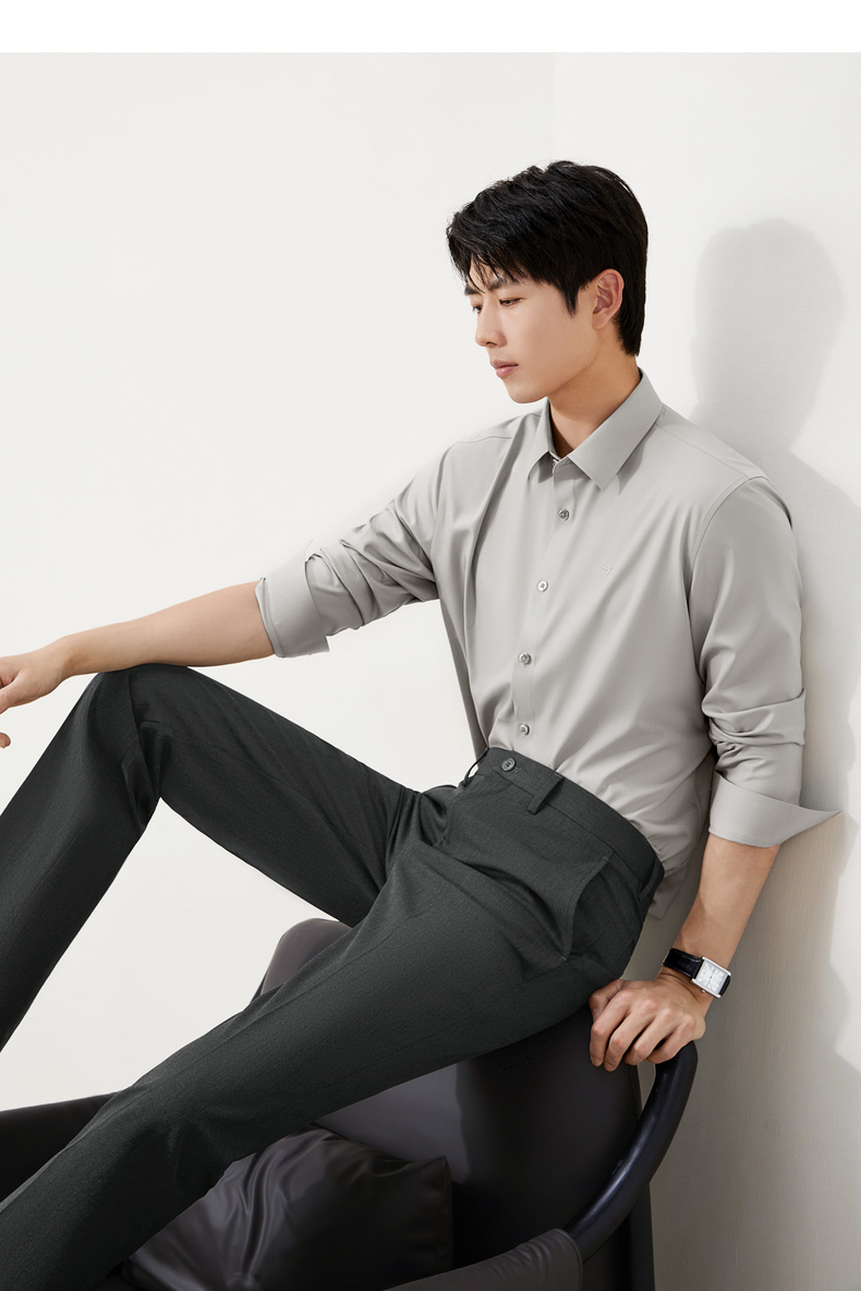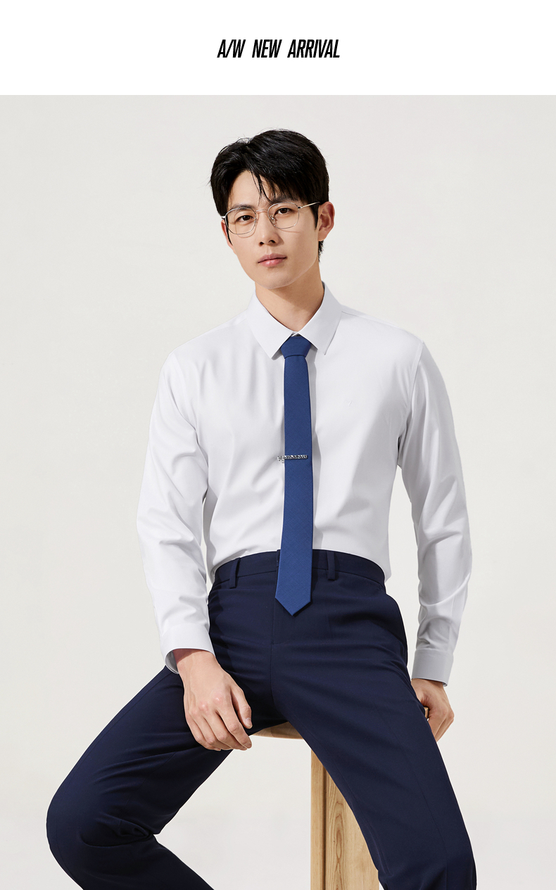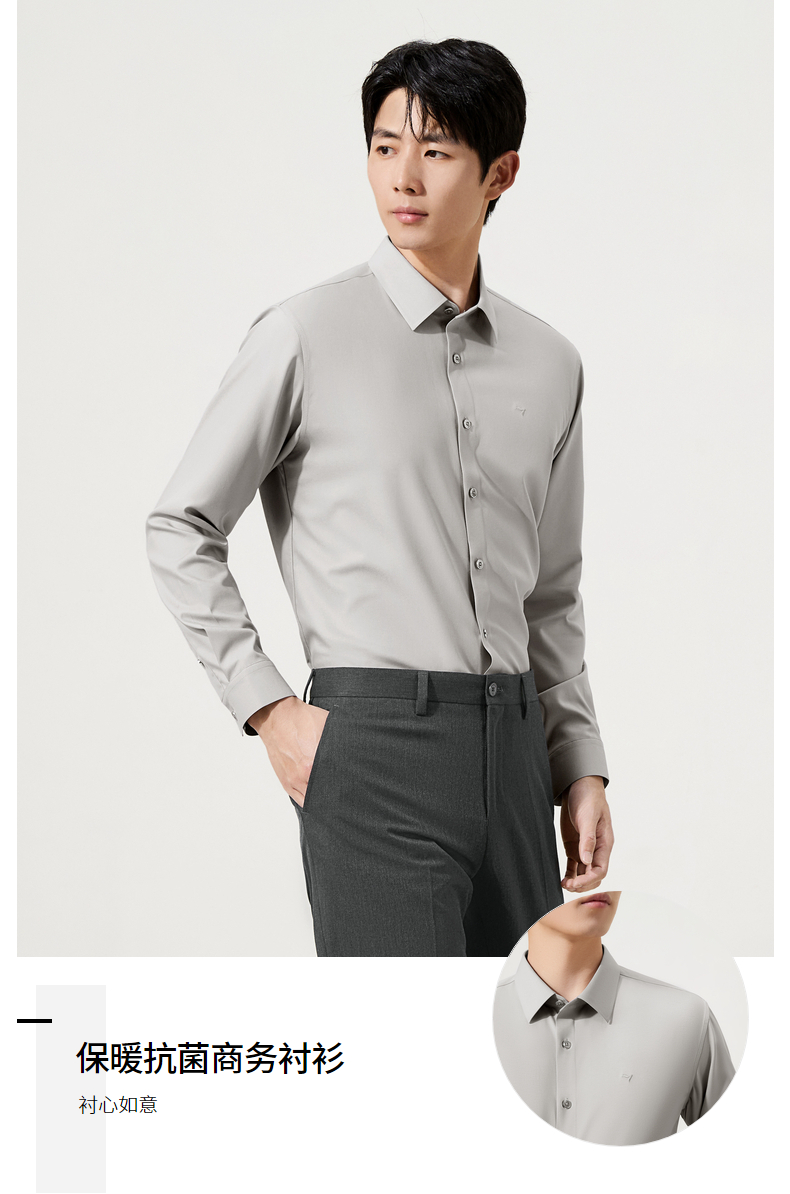 【无缝/免烫/石墨烯蓄热】柒牌抗菌易打理长袖衬衫男商务通勤衬衣129A70420