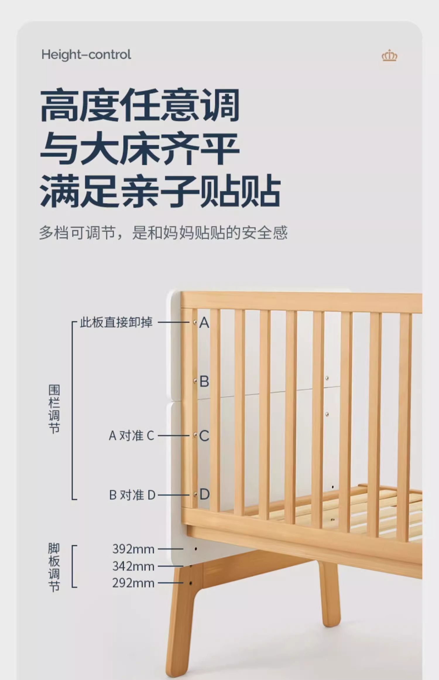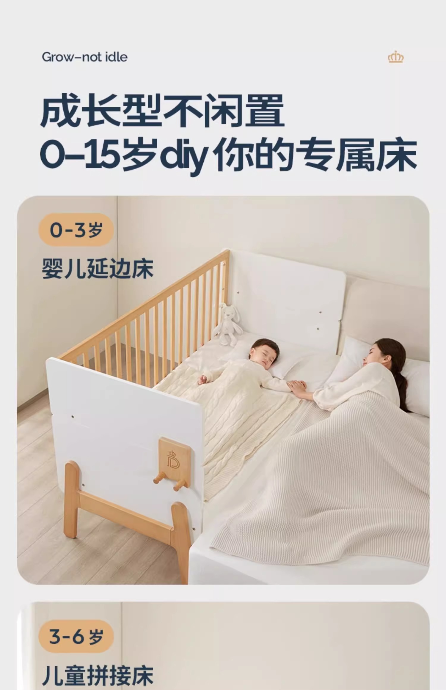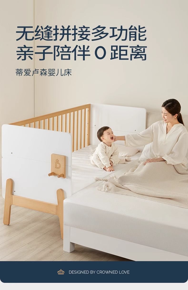 蒂爱婴儿拼接床加宽床大人可睡儿童实木延边床无缝衔接侧边床
