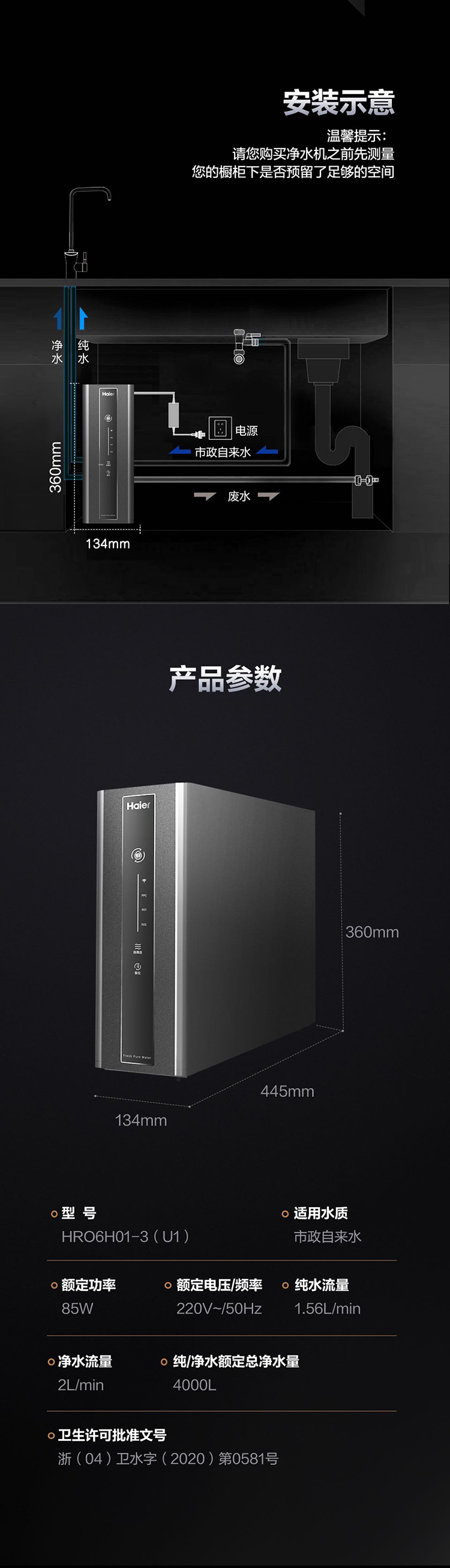 海尔(Haier)净水机HRO6H01-3(U1)