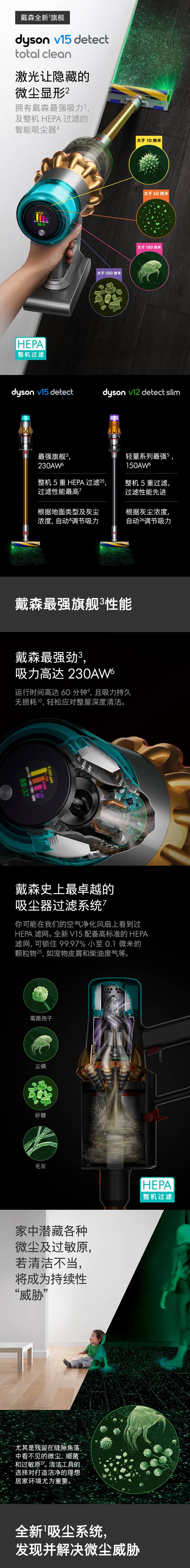 Dyson戴森V15 total clean无线吸尘器家用小型除螨仪大吸力