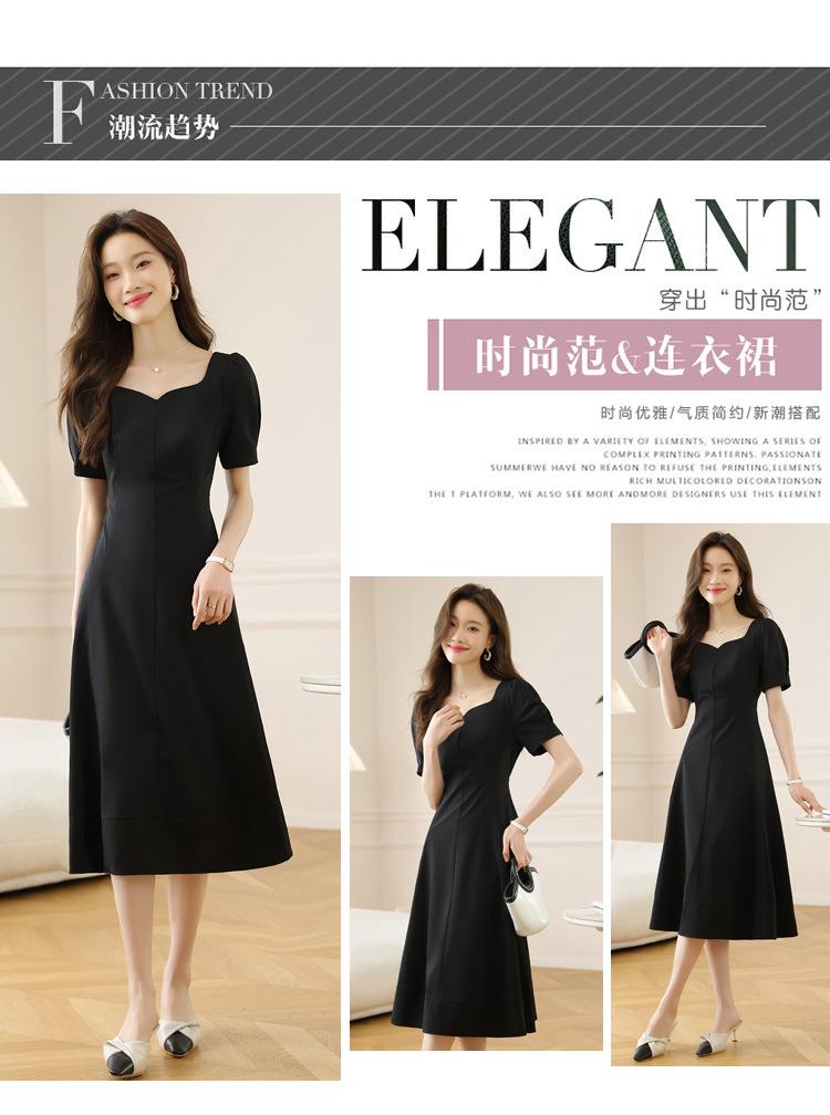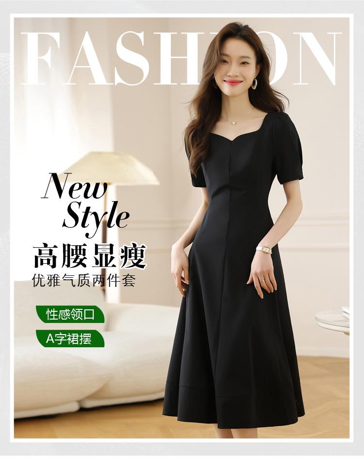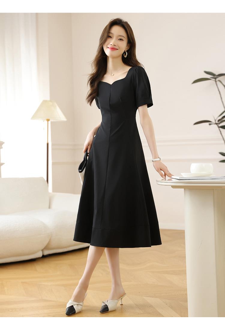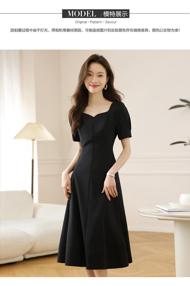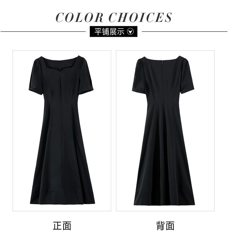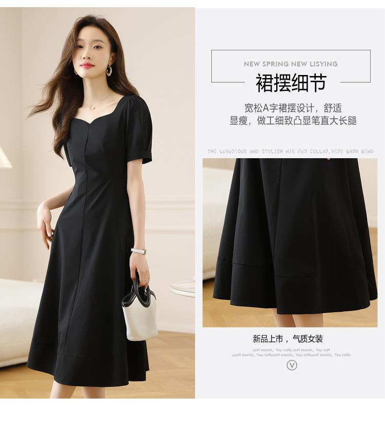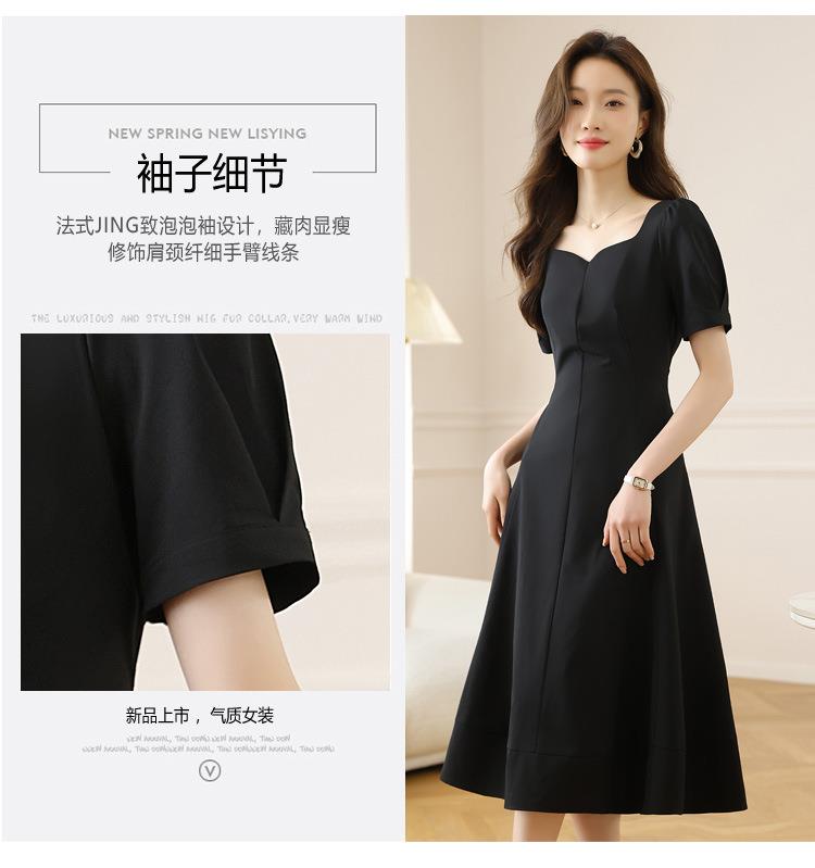 赫本风气质显瘦连衣裙女2024夏季高级感法式方领中长款短袖小黑裙