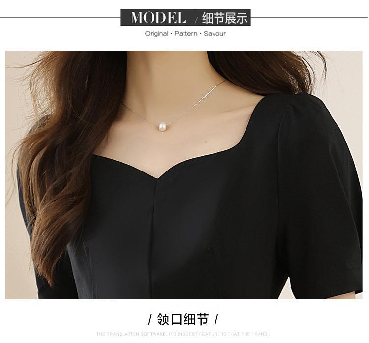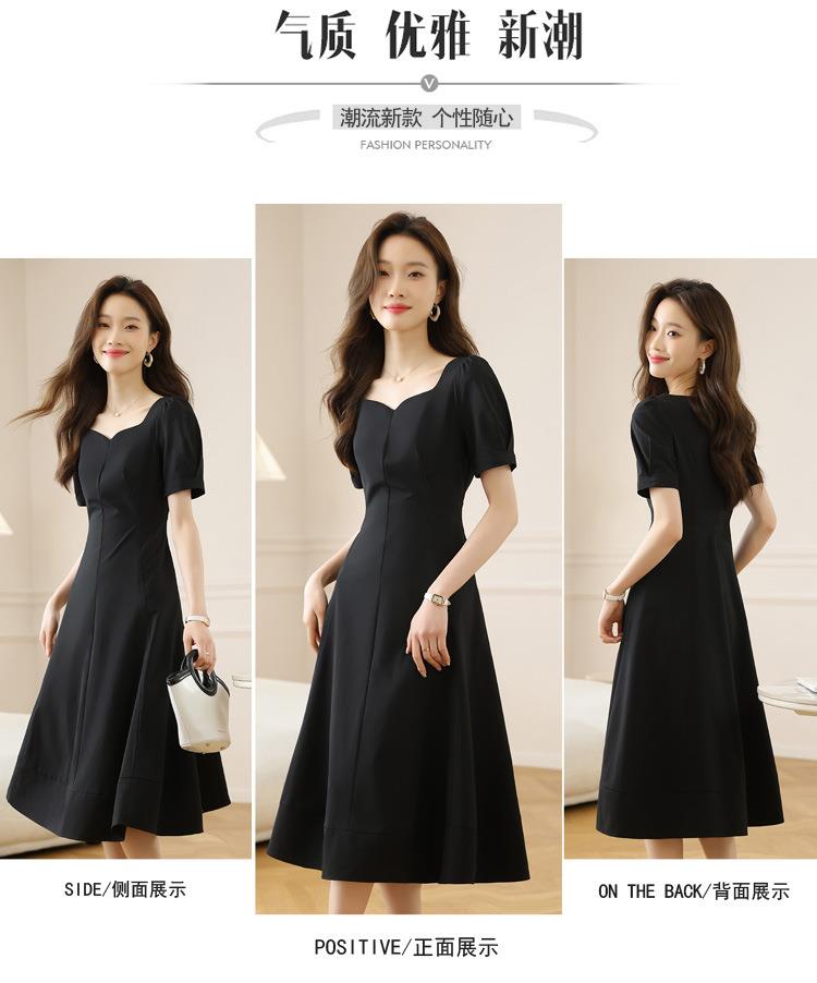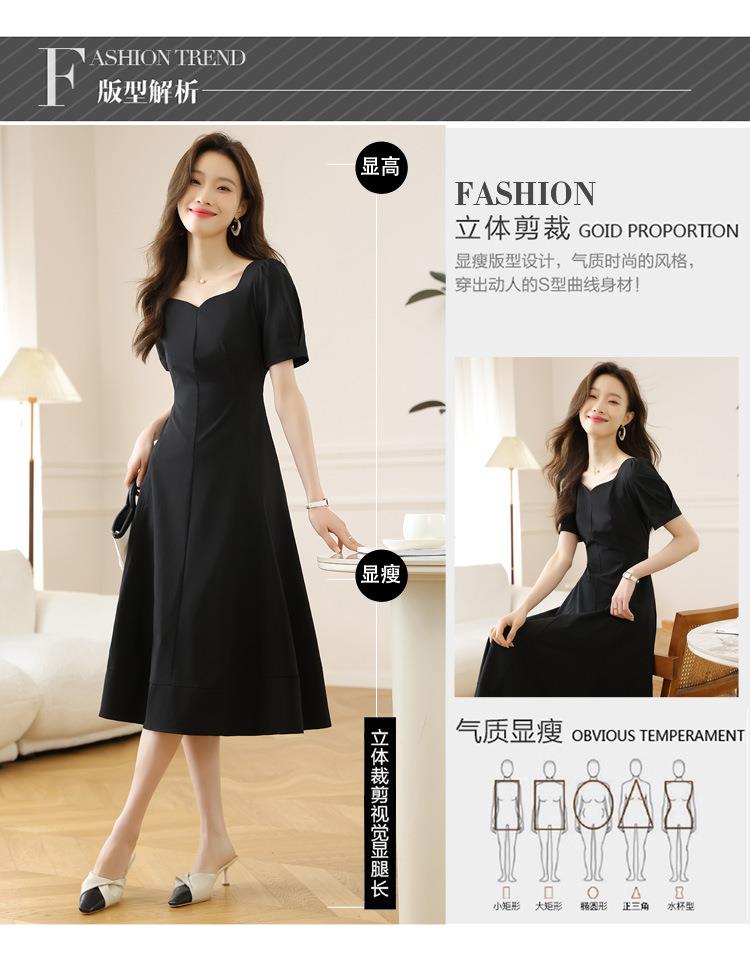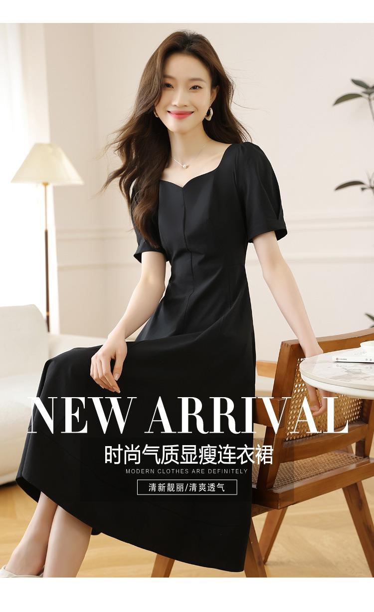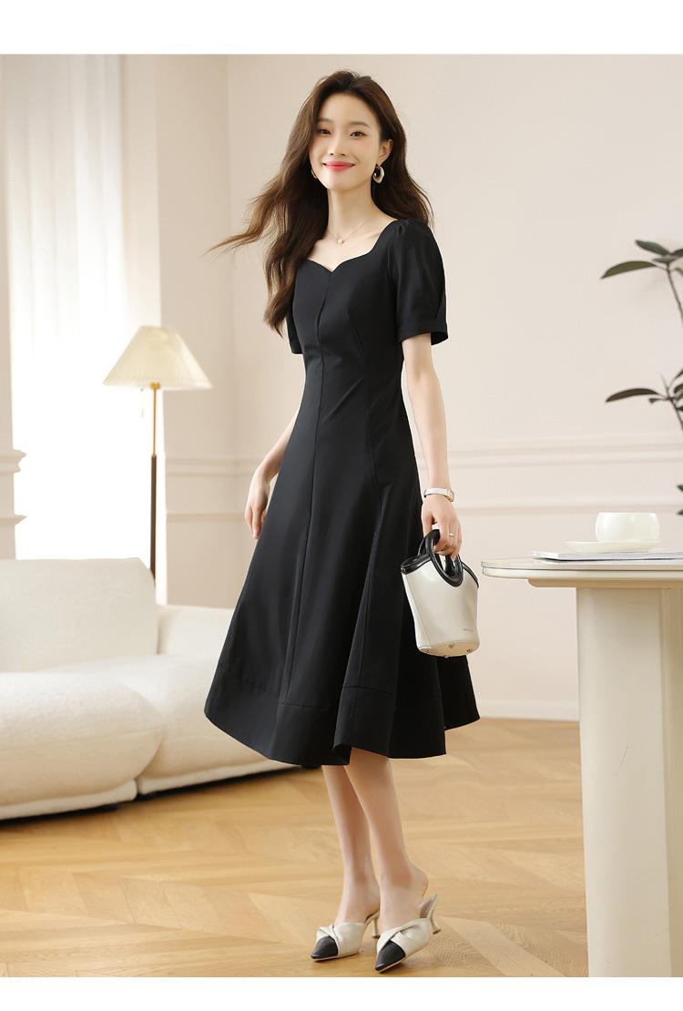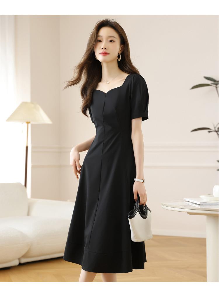 赫本风气质显瘦连衣裙女2024夏季高级感法式方领中长款短袖小黑裙