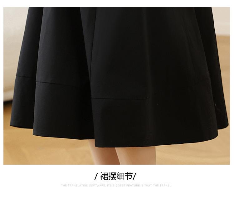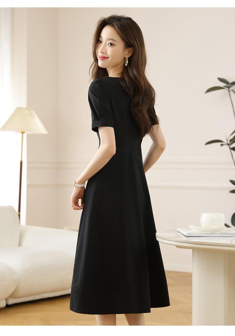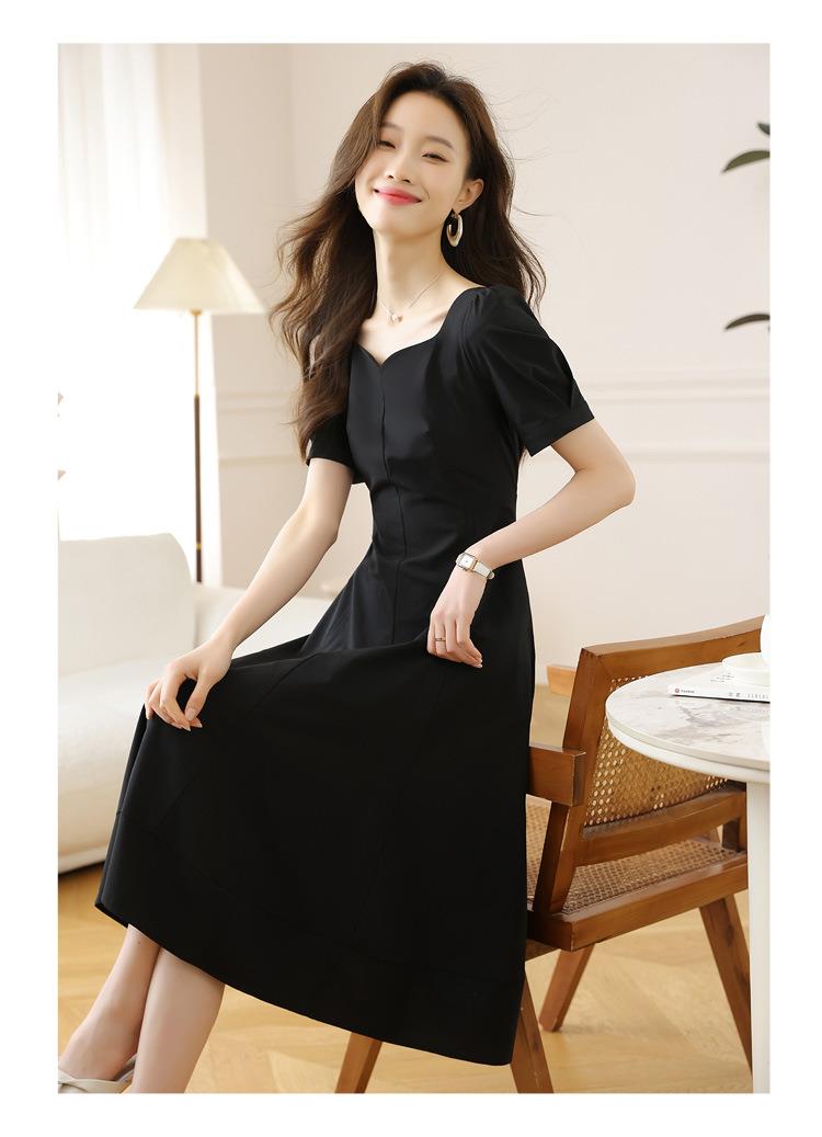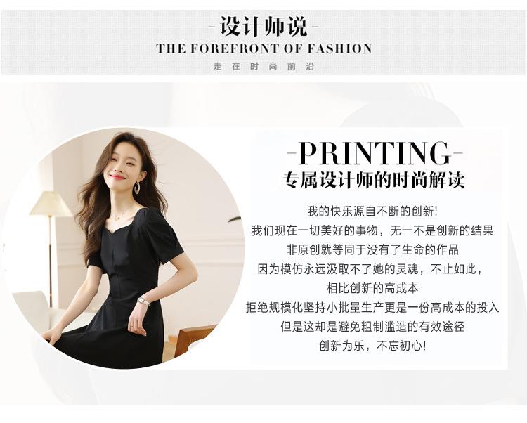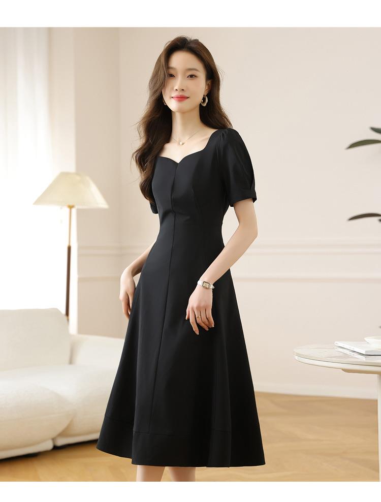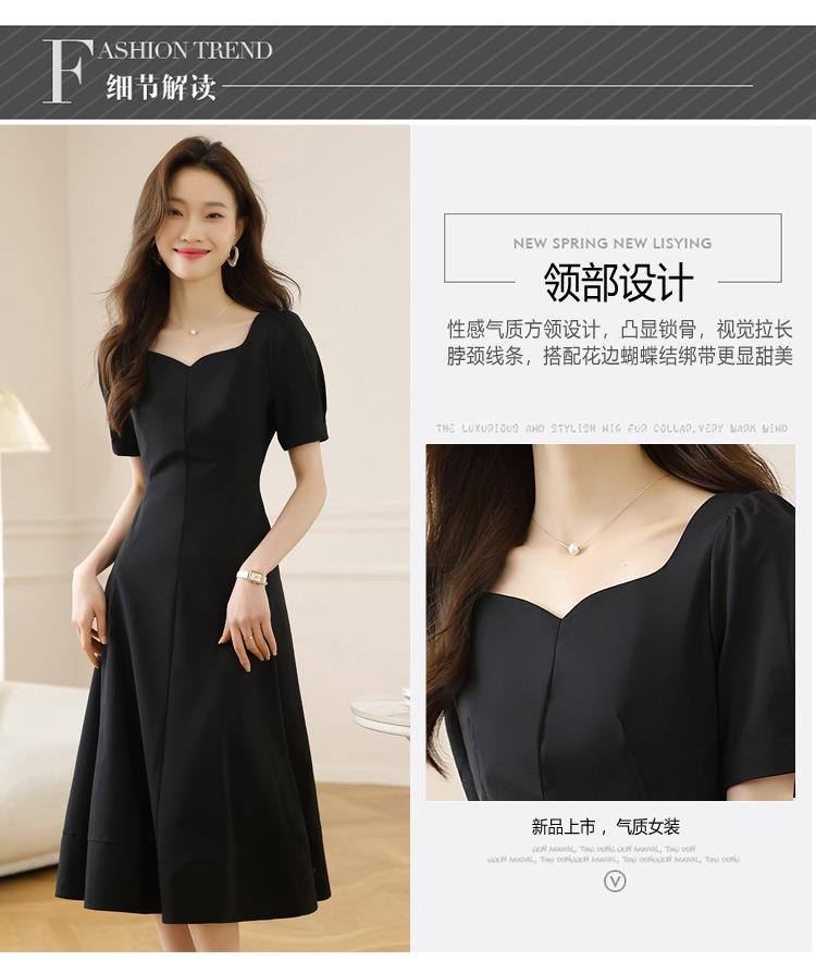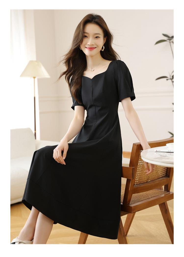 赫本风气质显瘦连衣裙女2024夏季高级感法式方领中长款短袖小黑裙