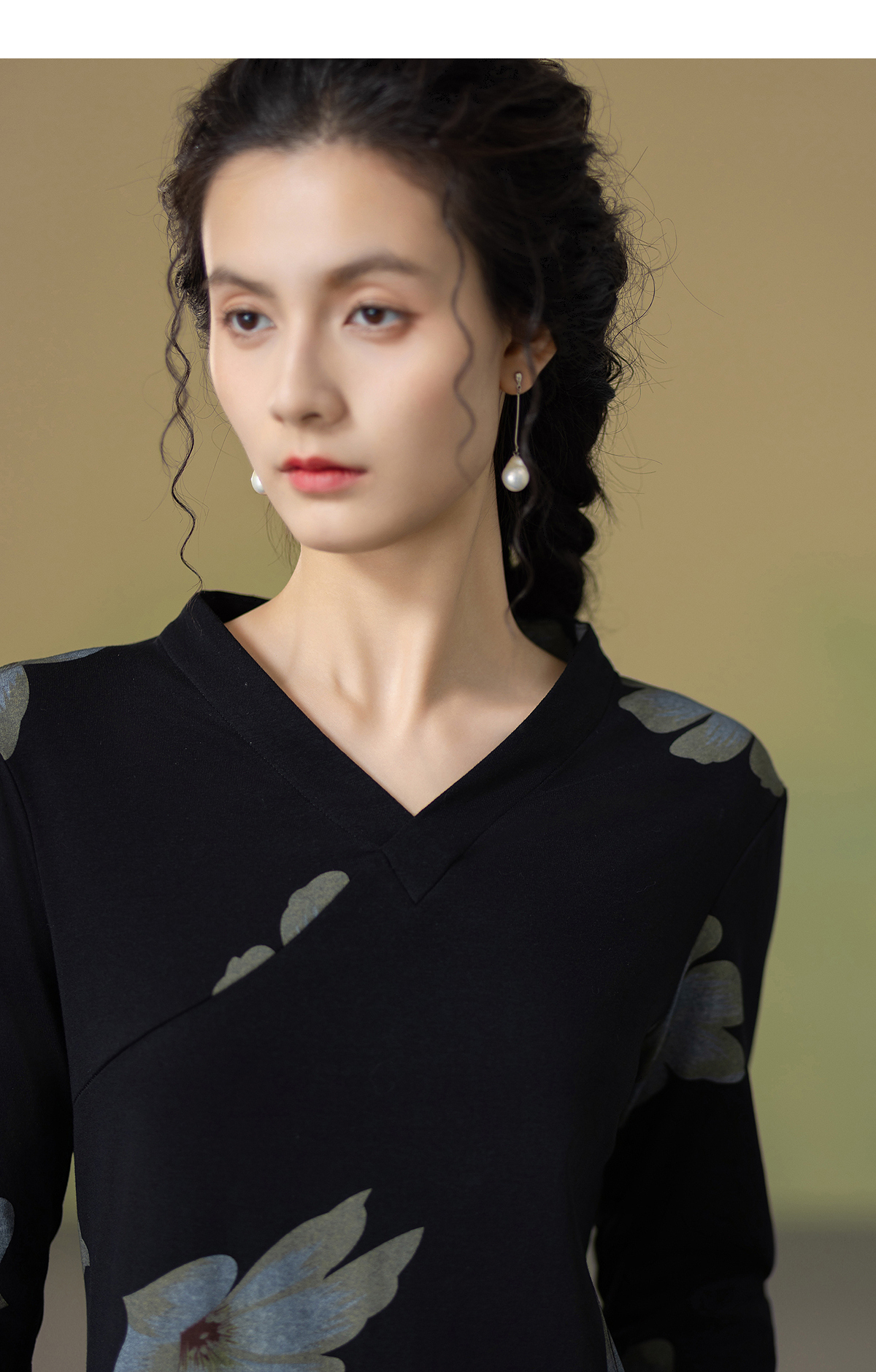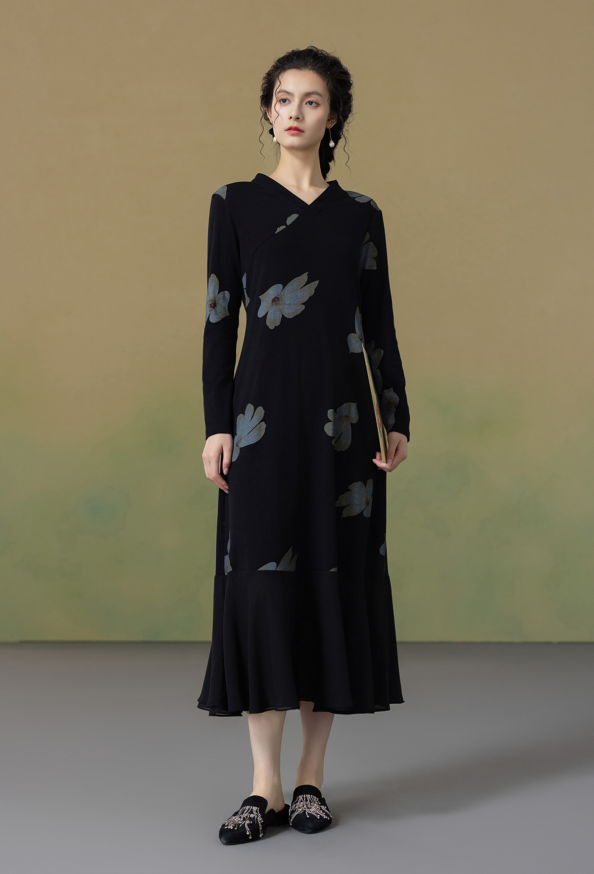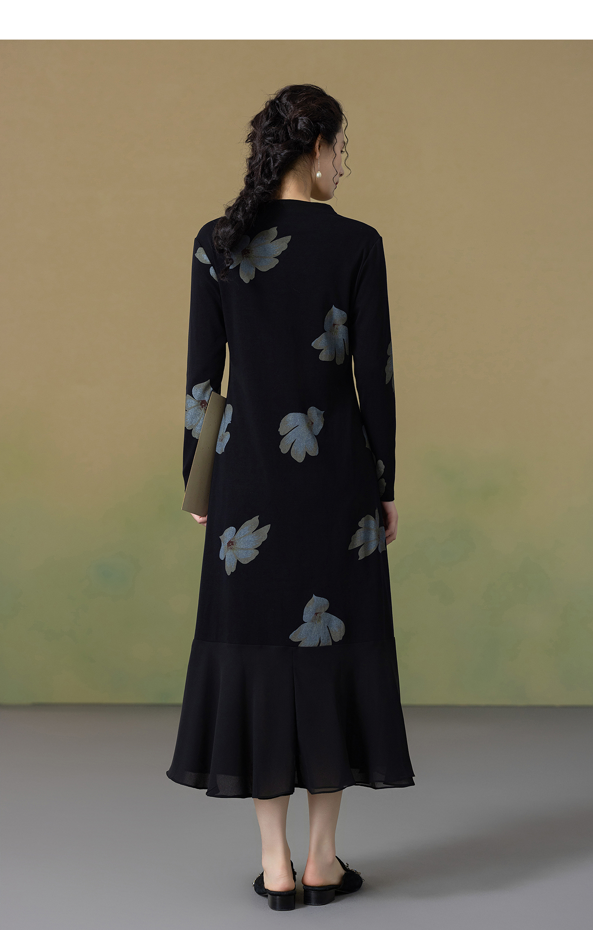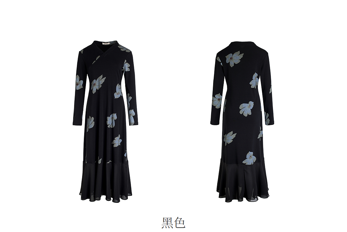 【林栖设计小店】2025秋季新品棉混纺印花国风拼花边连衣裙1953306