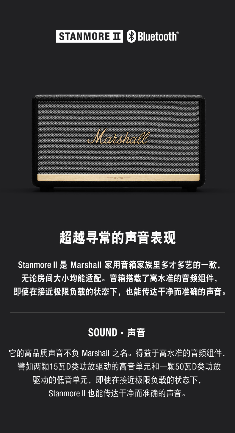 Marshall/马歇尔 STANMORE 2代 重低音HIFI无线蓝牙音箱