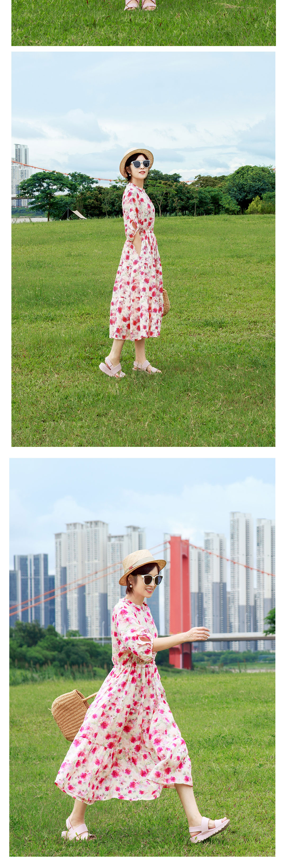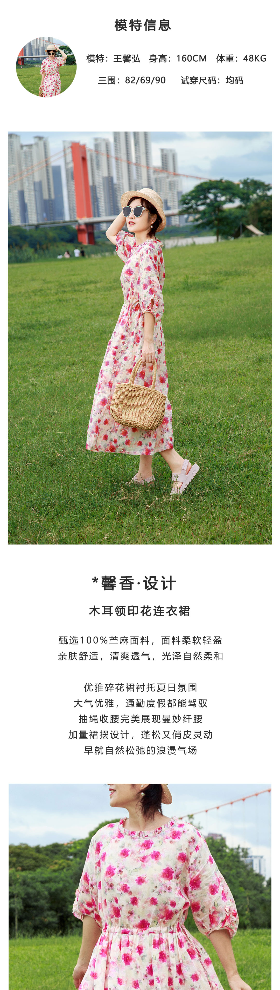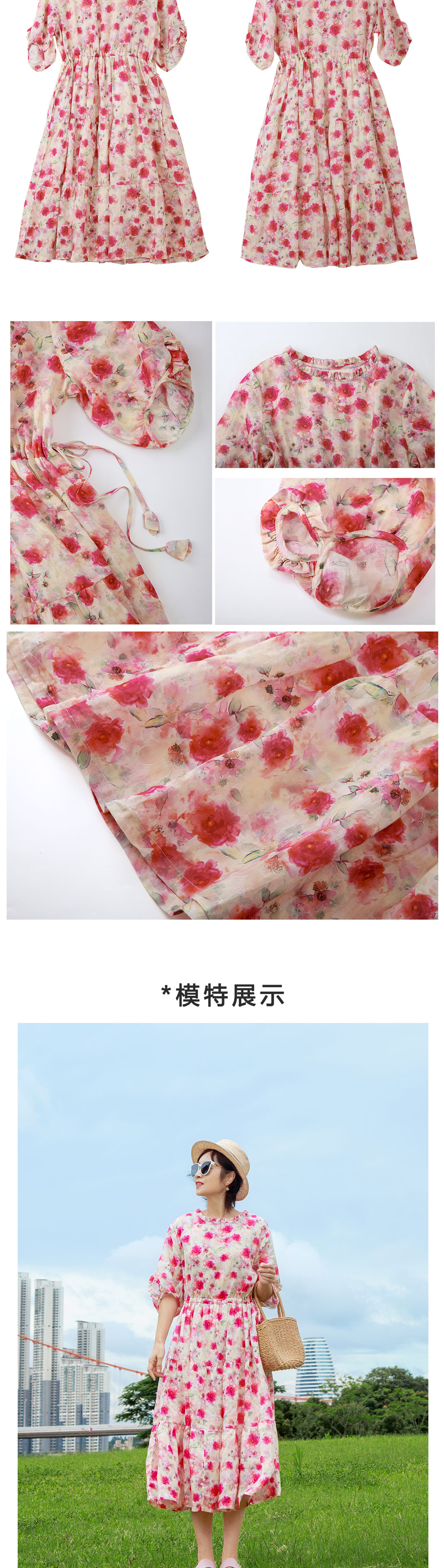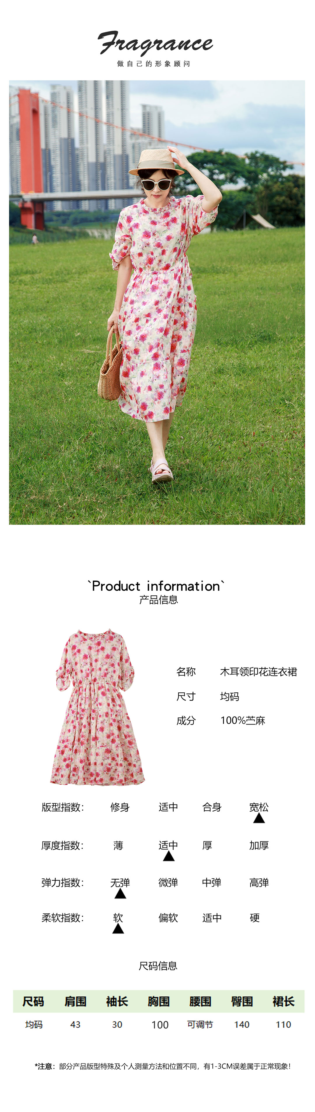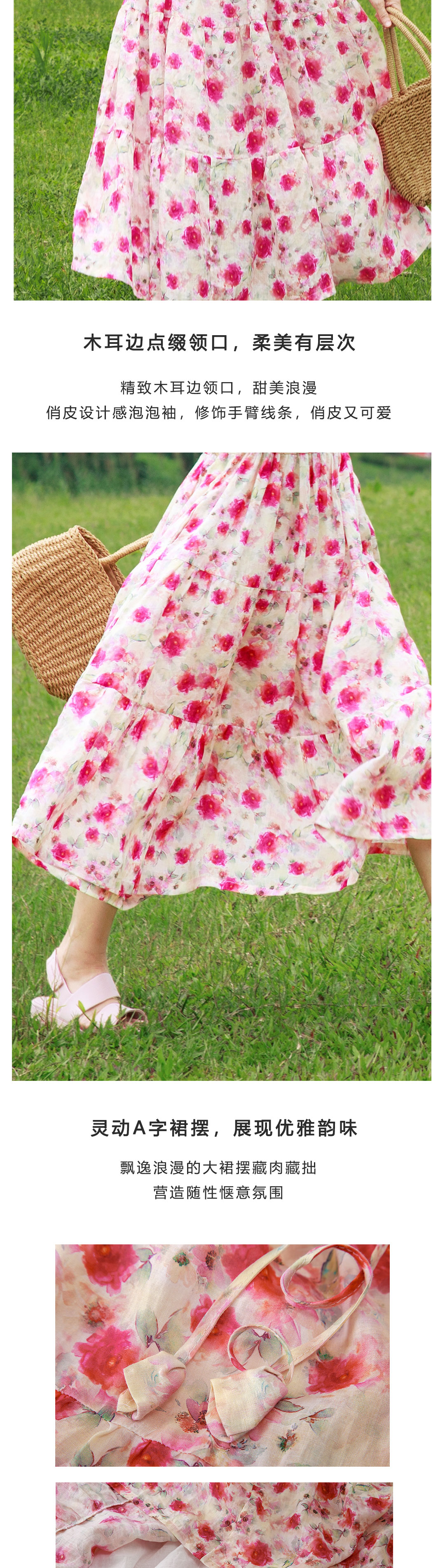 木耳领印花连衣裙