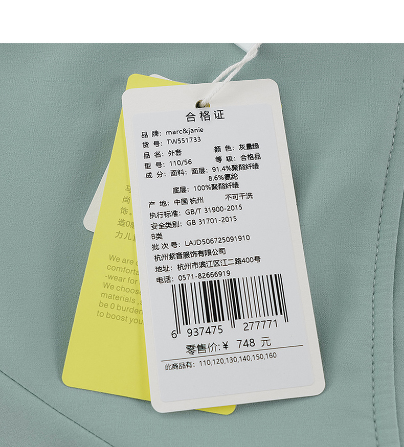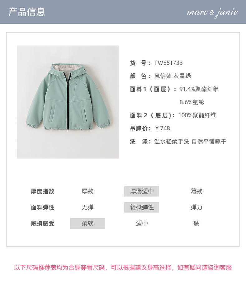 【无氟防泼水】马克珍妮女童轻暖防风运动连帽夹克外套2025年冬装新款551733