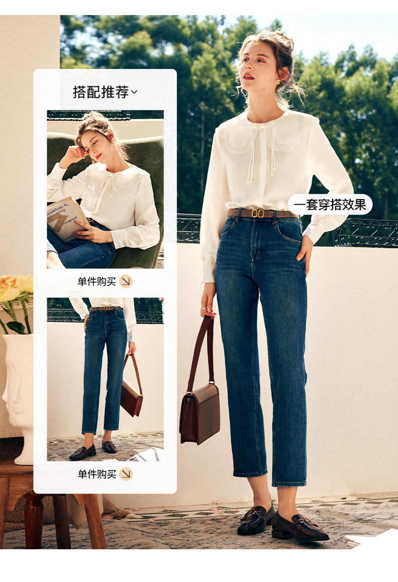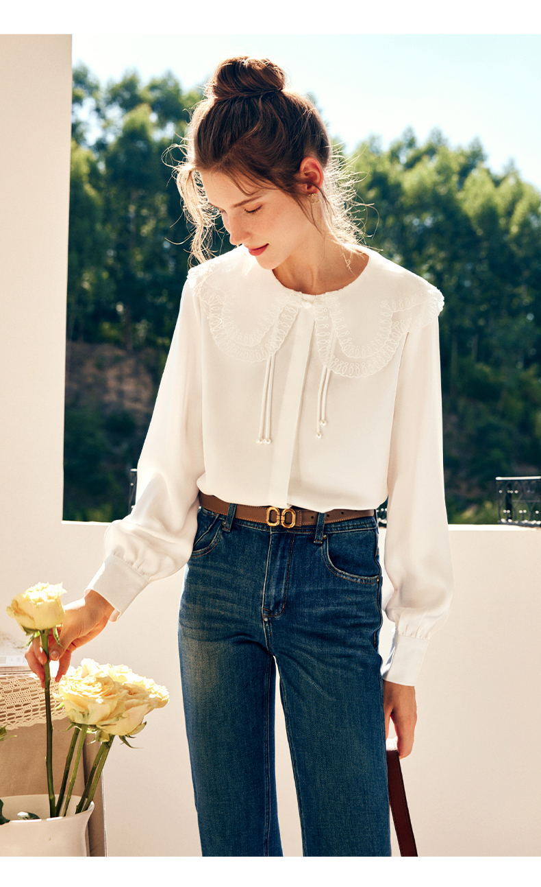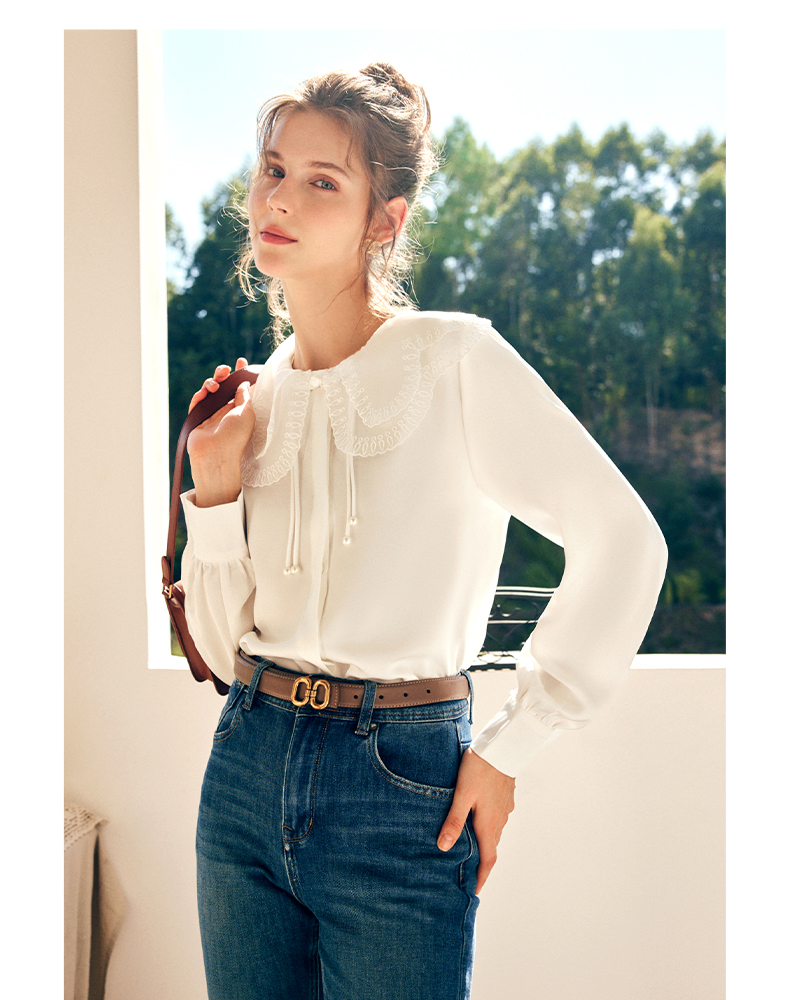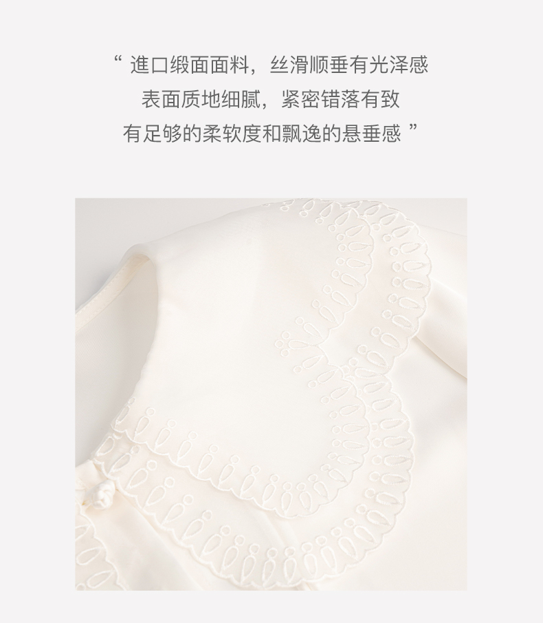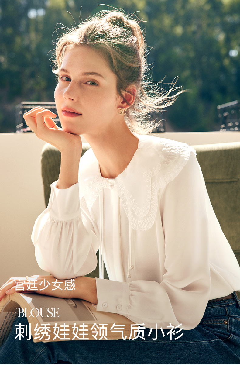 OLrain欧芮儿法式娃娃领雪纺蕾丝衫女秋季2022年新款宽松甜美小衫