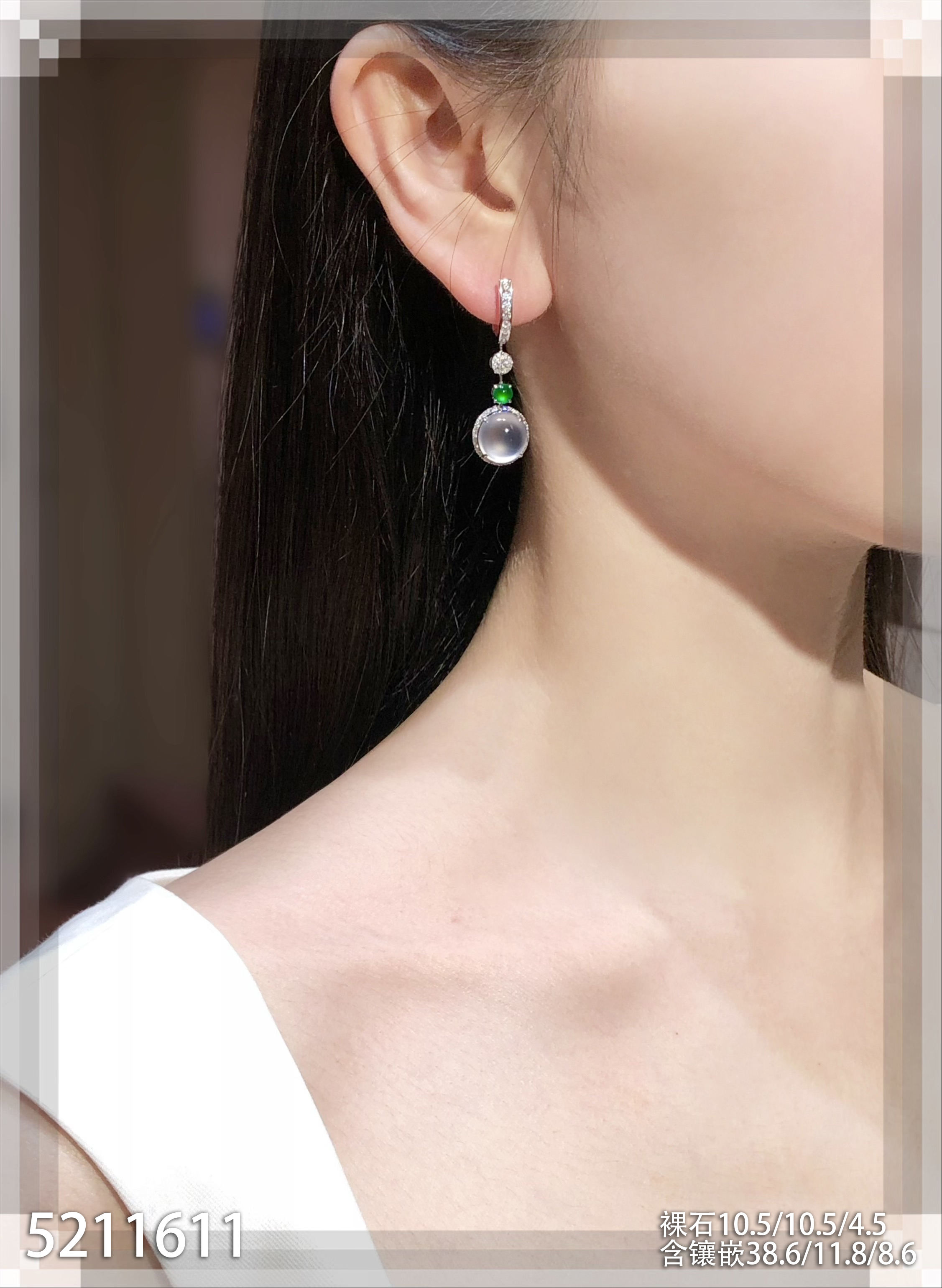 81-1072707,老坑玻璃种帝王绿蛋面耳坠,具体价格微信咨询
