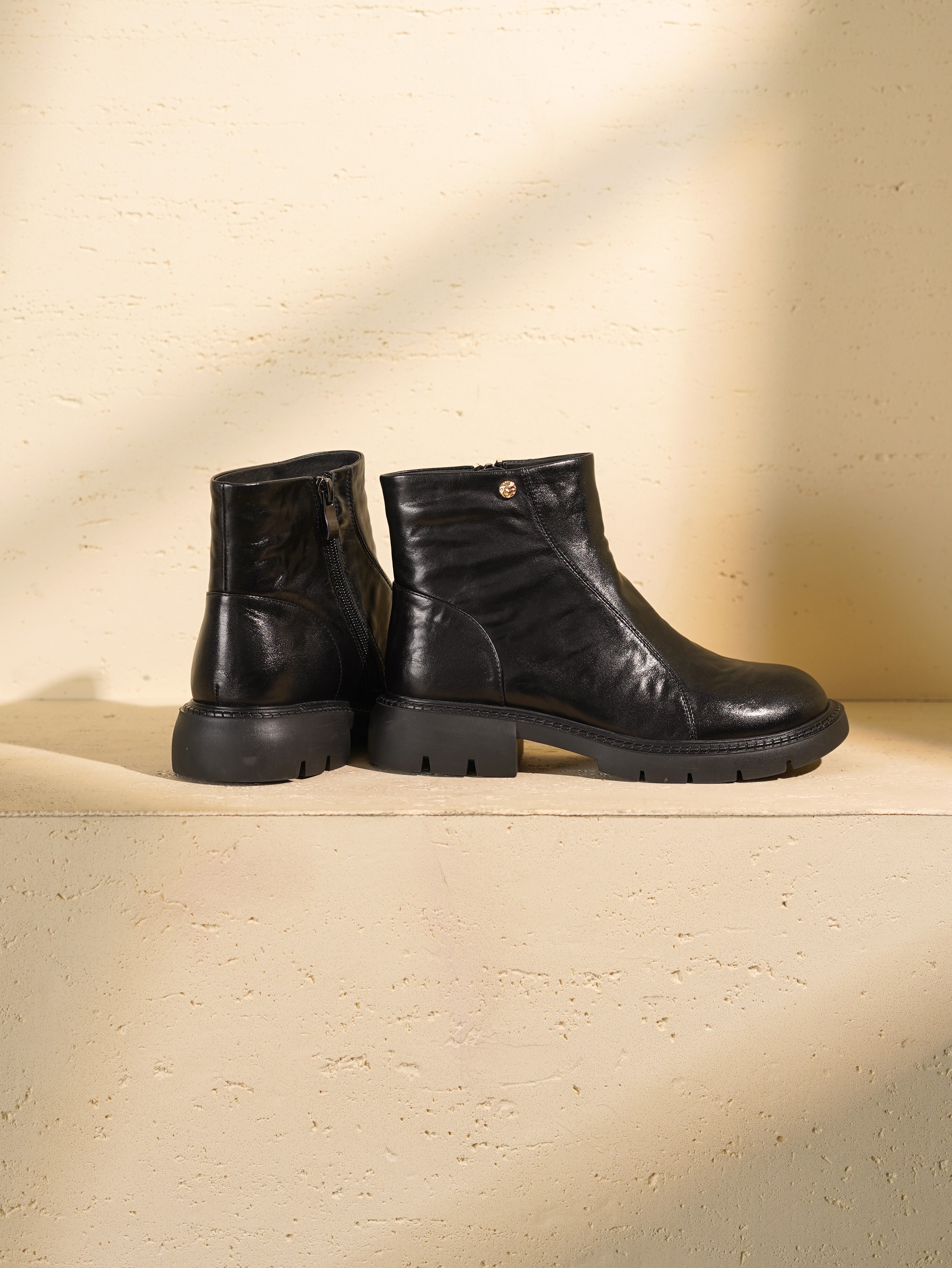 西村名物2025年冬季新款厚底粗跟防滑绒布内里抓感纹路时尚舒适切尔西靴X25DS48491
