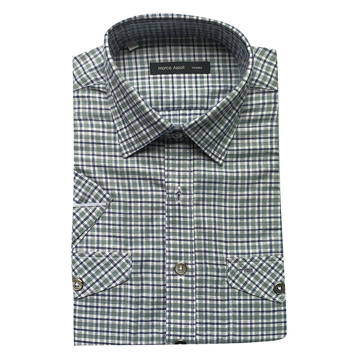 Marco Azzali 绿色格子短袖衬衫 FACEC55700