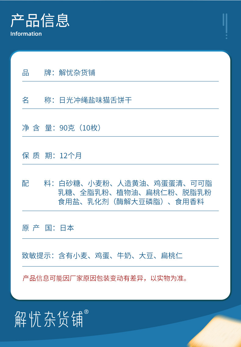 解忧杂货铺日光 冲绳盐味猫舌饼干90g