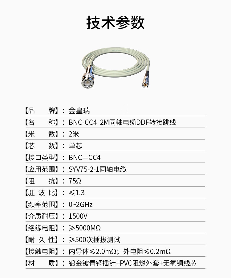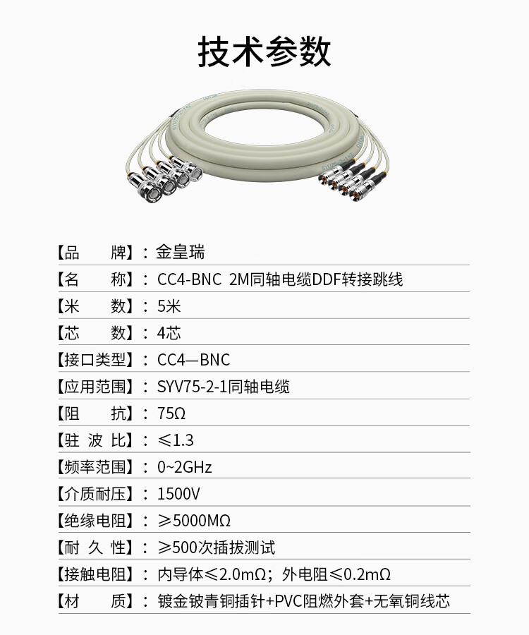 商品名称:爆 款【2M跳线BNC-CC4】2M兆E1接头成品跳线 syv75-2-1同轴电缆DDF转接跳线 1/2/4/8/16芯