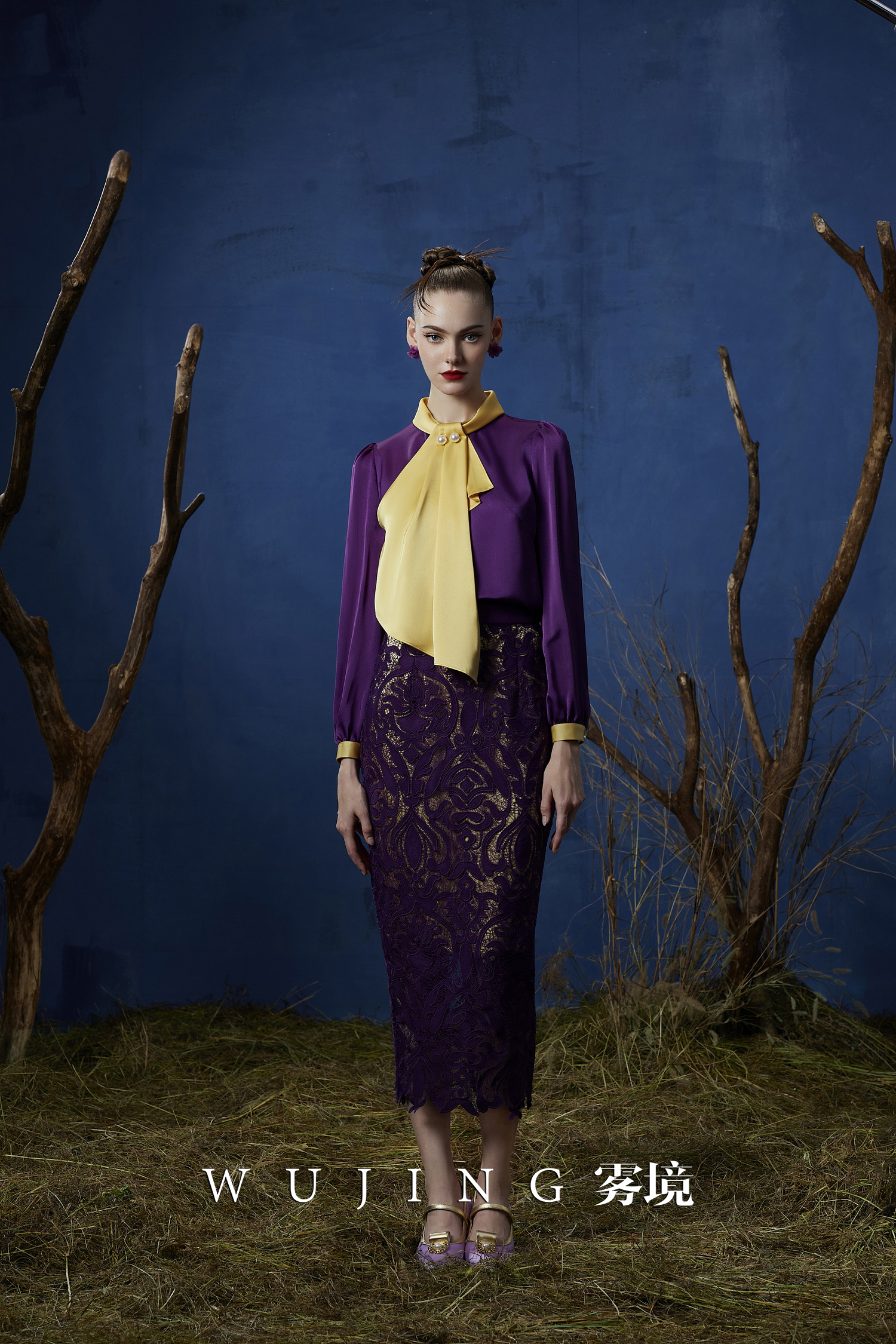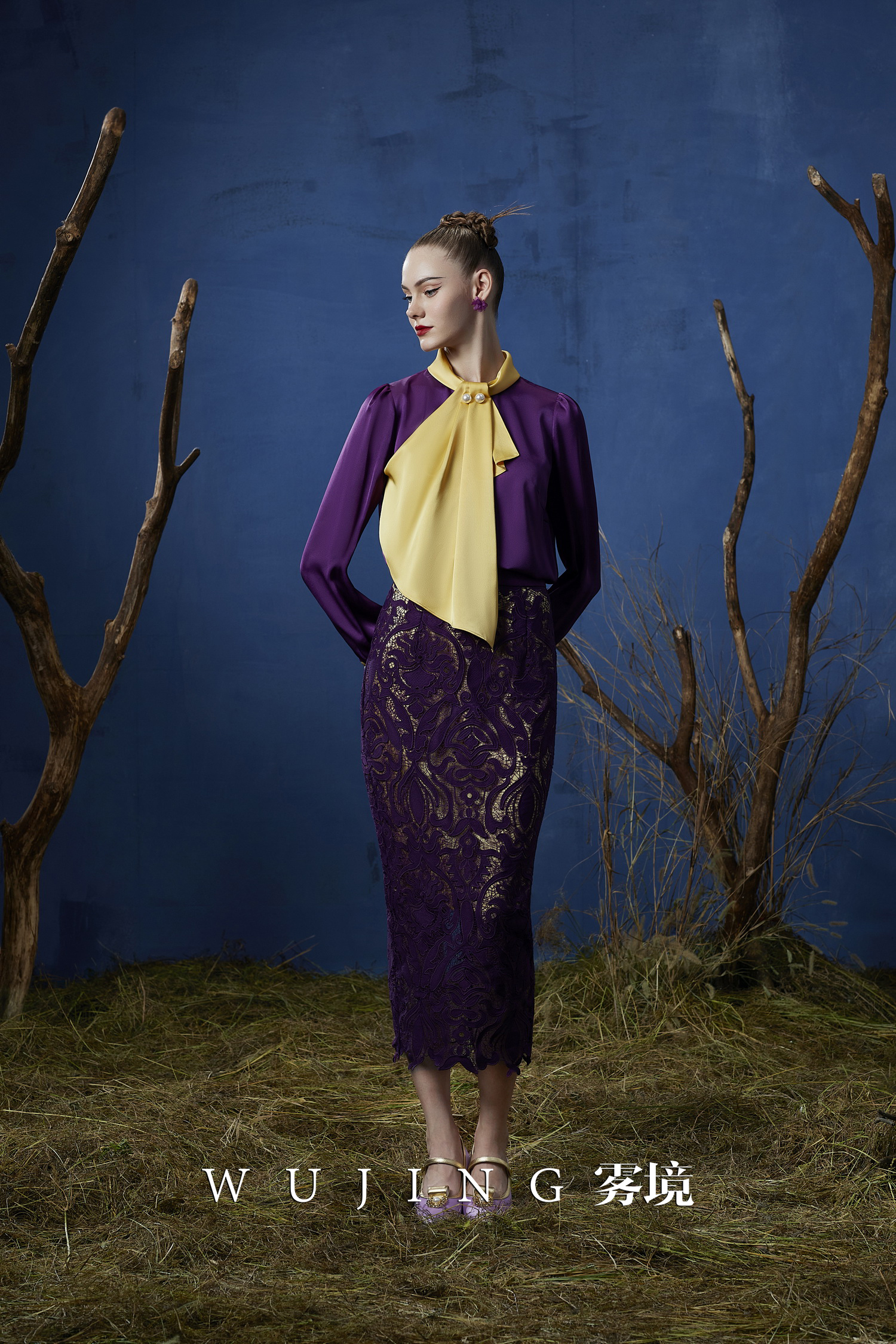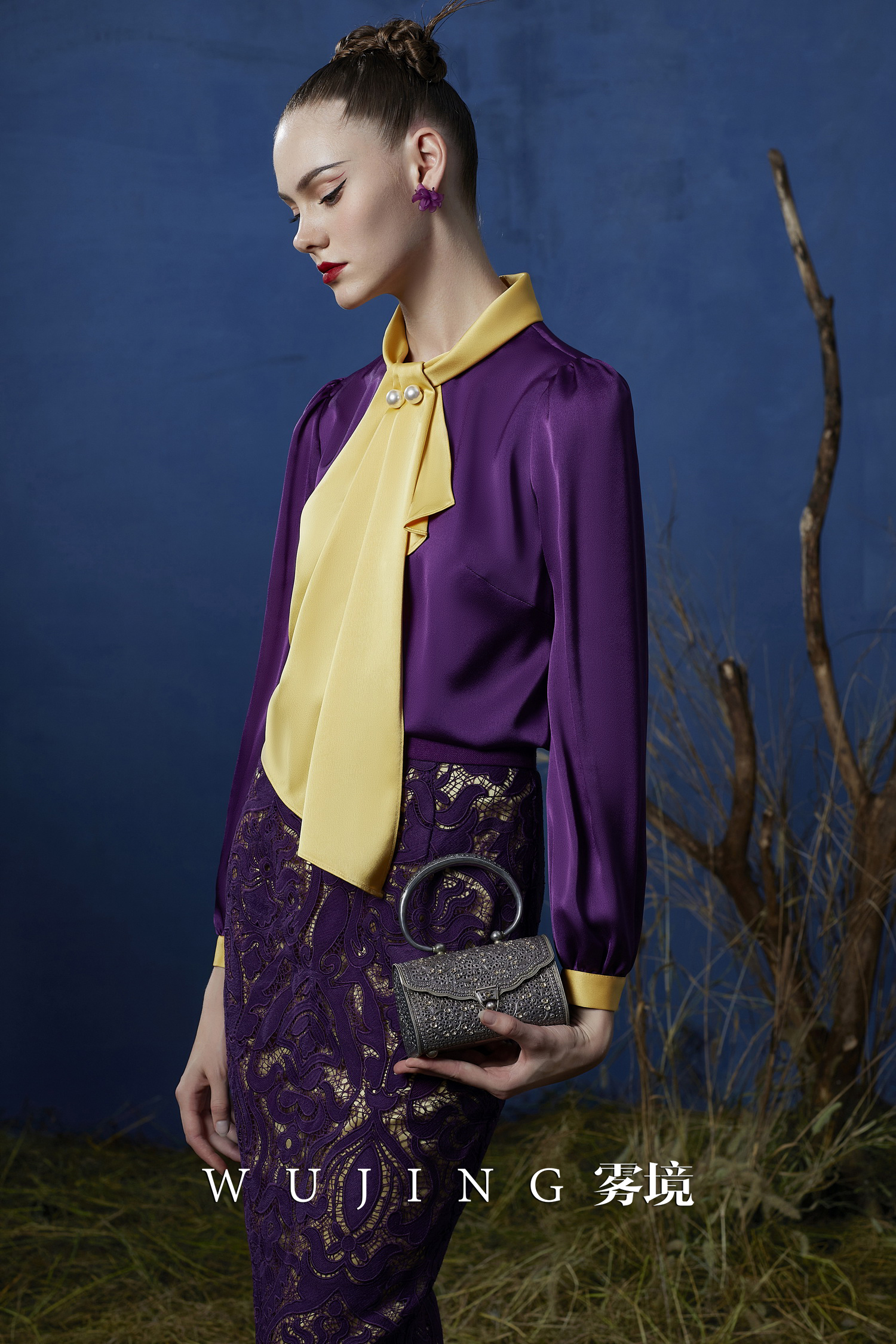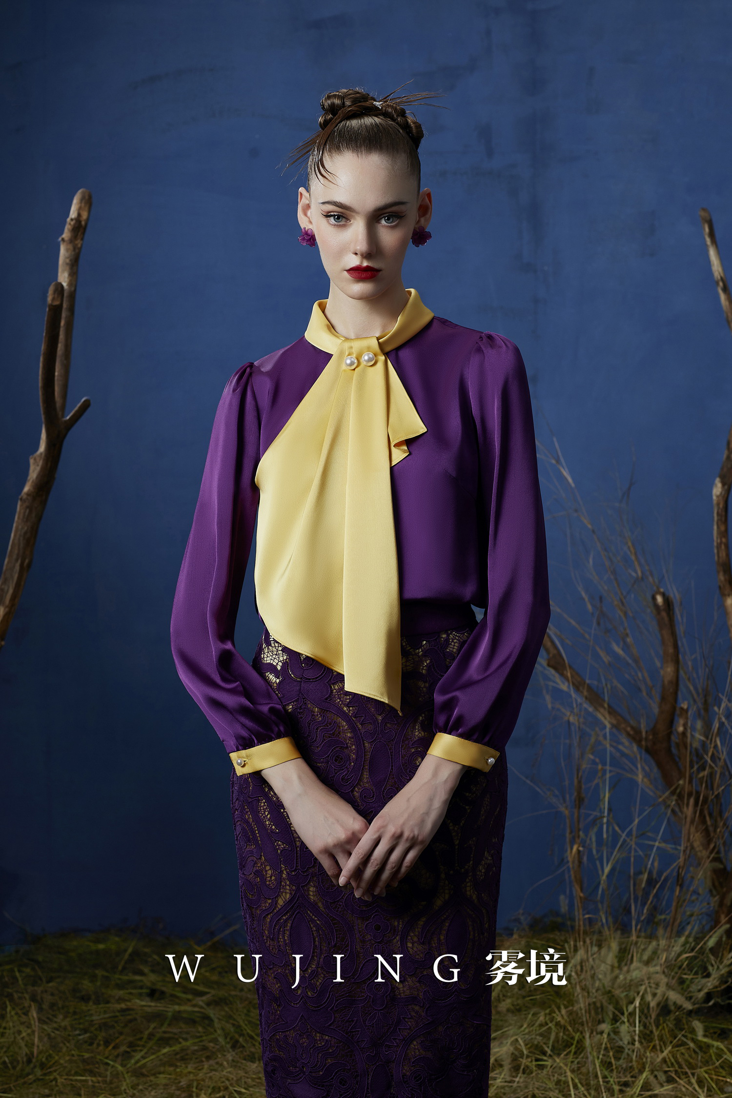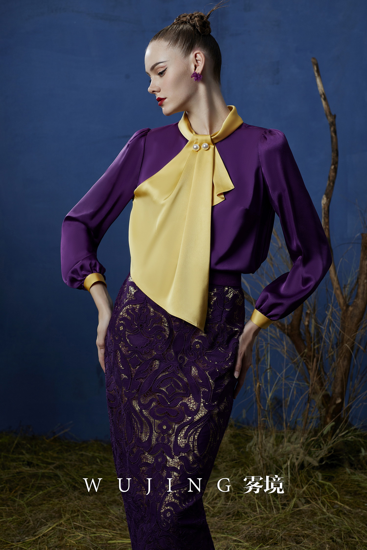 3205132 晚风听竹 进口蜂窝缎/韩国进口水晶乔其纱上衣 雾境