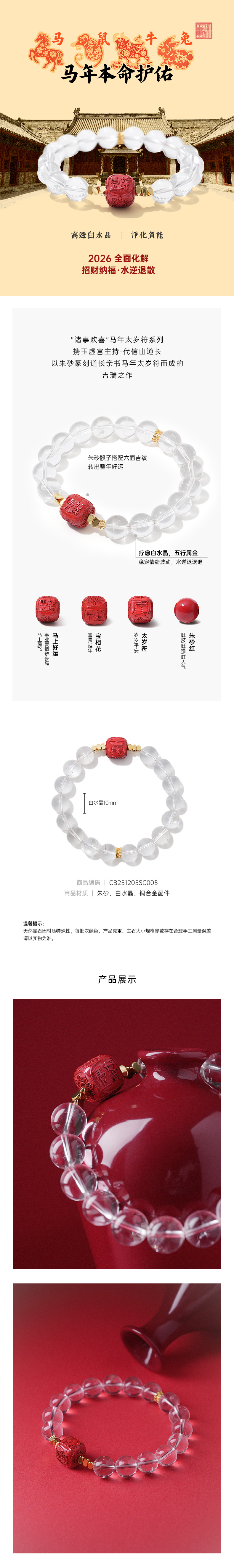 【诸事欢喜】【马年太岁符】 钻石世家X心喜 马上好运系列 马年太岁符白水晶手串 马年太岁符 六面吉文 朱砂骰子 疗愈白水晶【结缘定制、无质量问题不支持退换货】预计3-5天发货