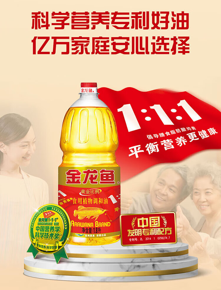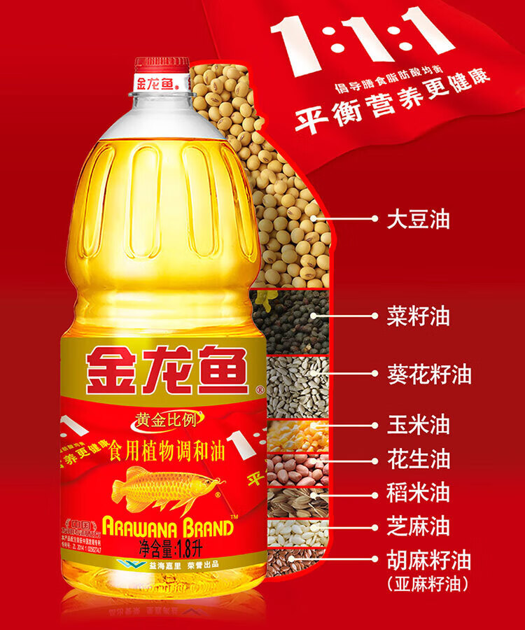 【百】金龙鱼 食用油 黄金比例食用调和油 1.8L