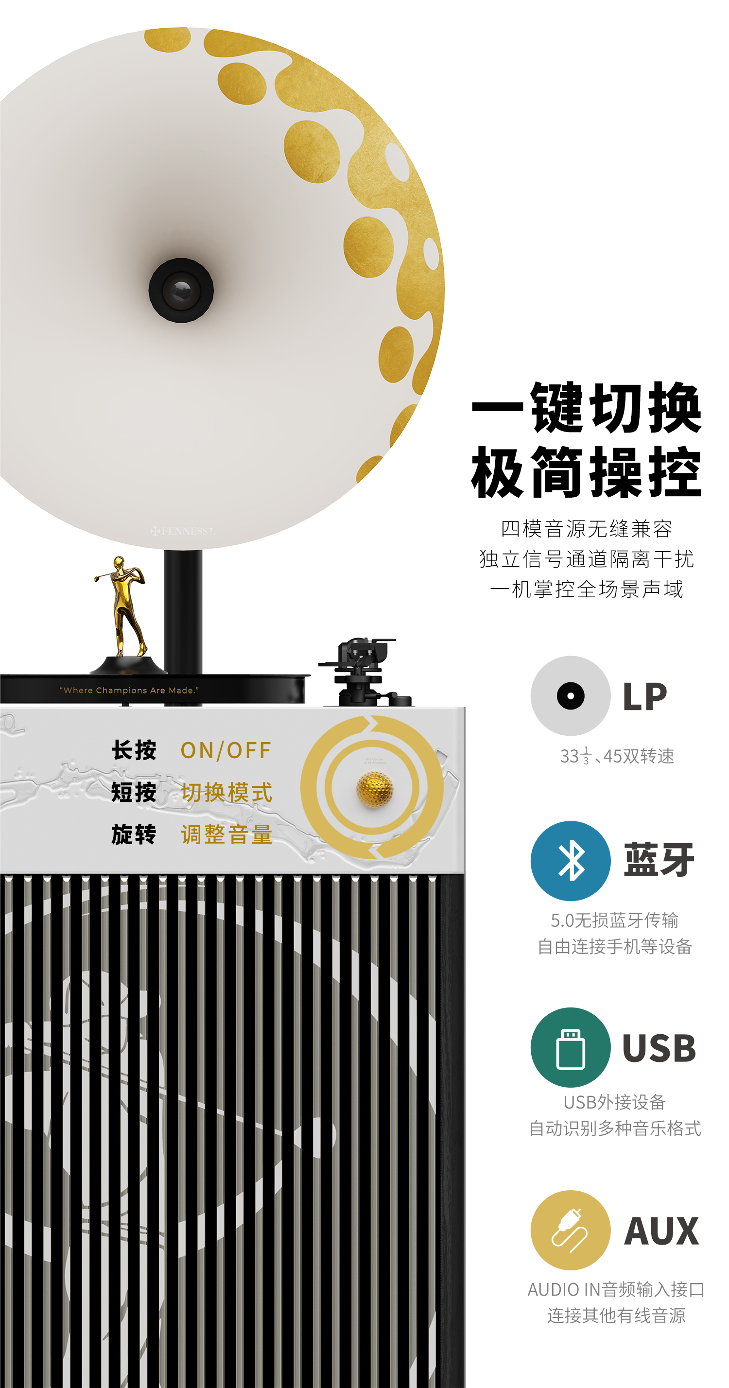 梵尼诗 Donut i5高尔夫主题专业级黑胶唱片机HiFi留声机蓝牙音响