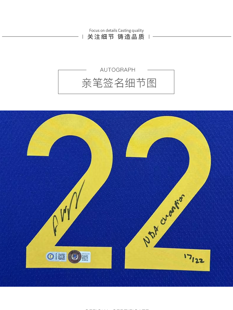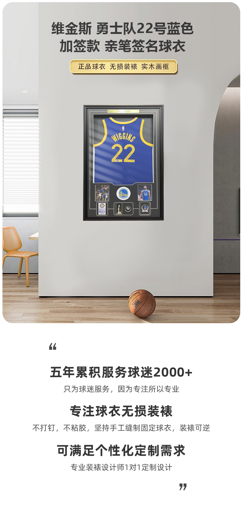 收藏系列 维金斯 勇士队22号蓝色加签款 亲笔签名球衣