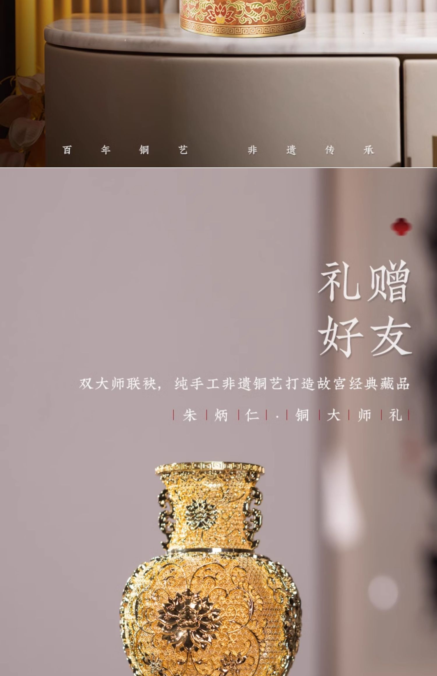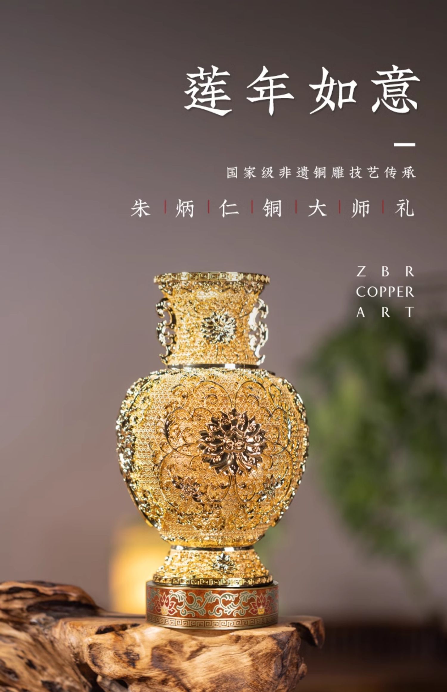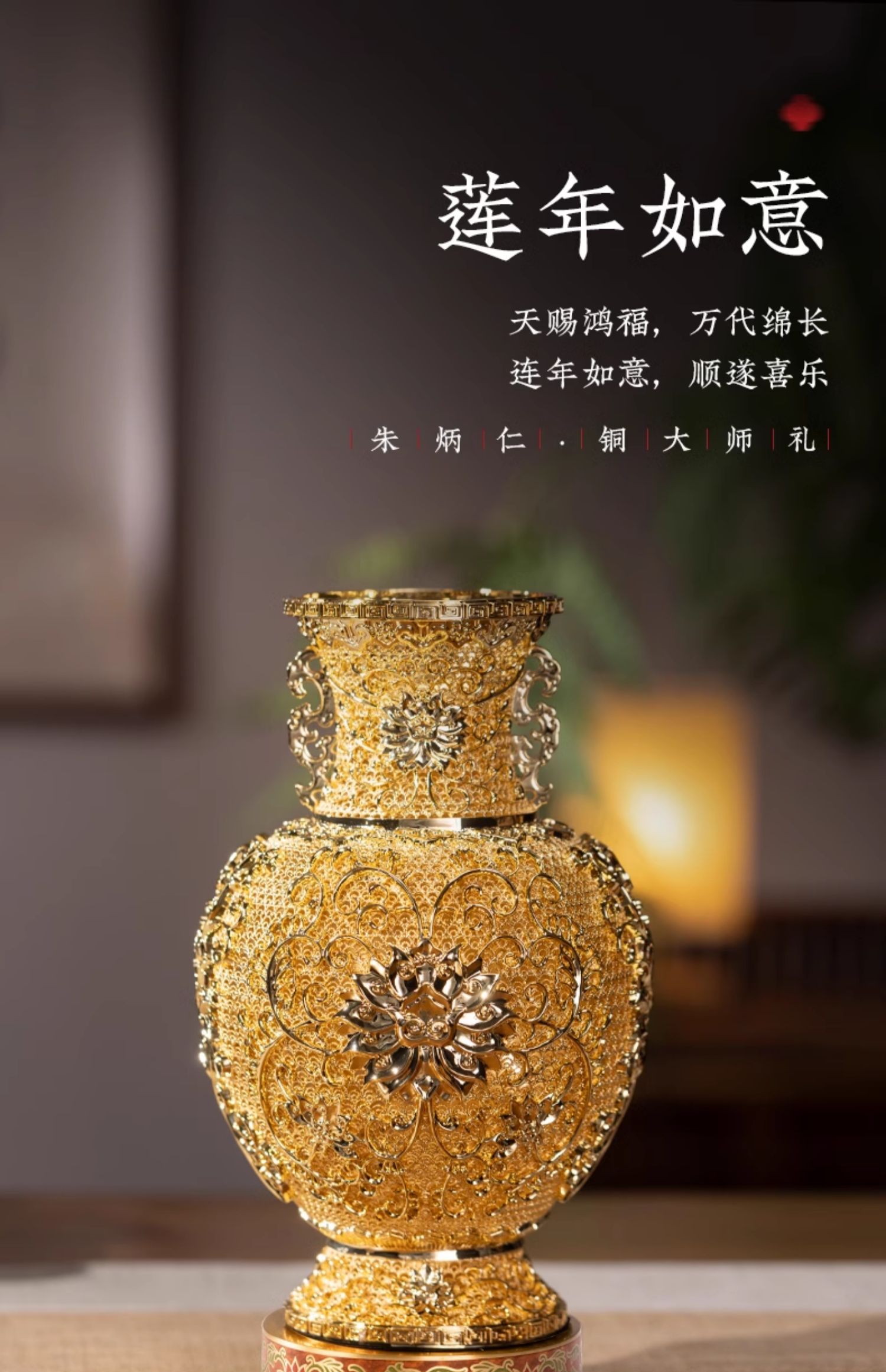 朱炳仁铜 莲年如意 花丝花瓶客厅玄关装饰摆件中式礼物乔迁开业